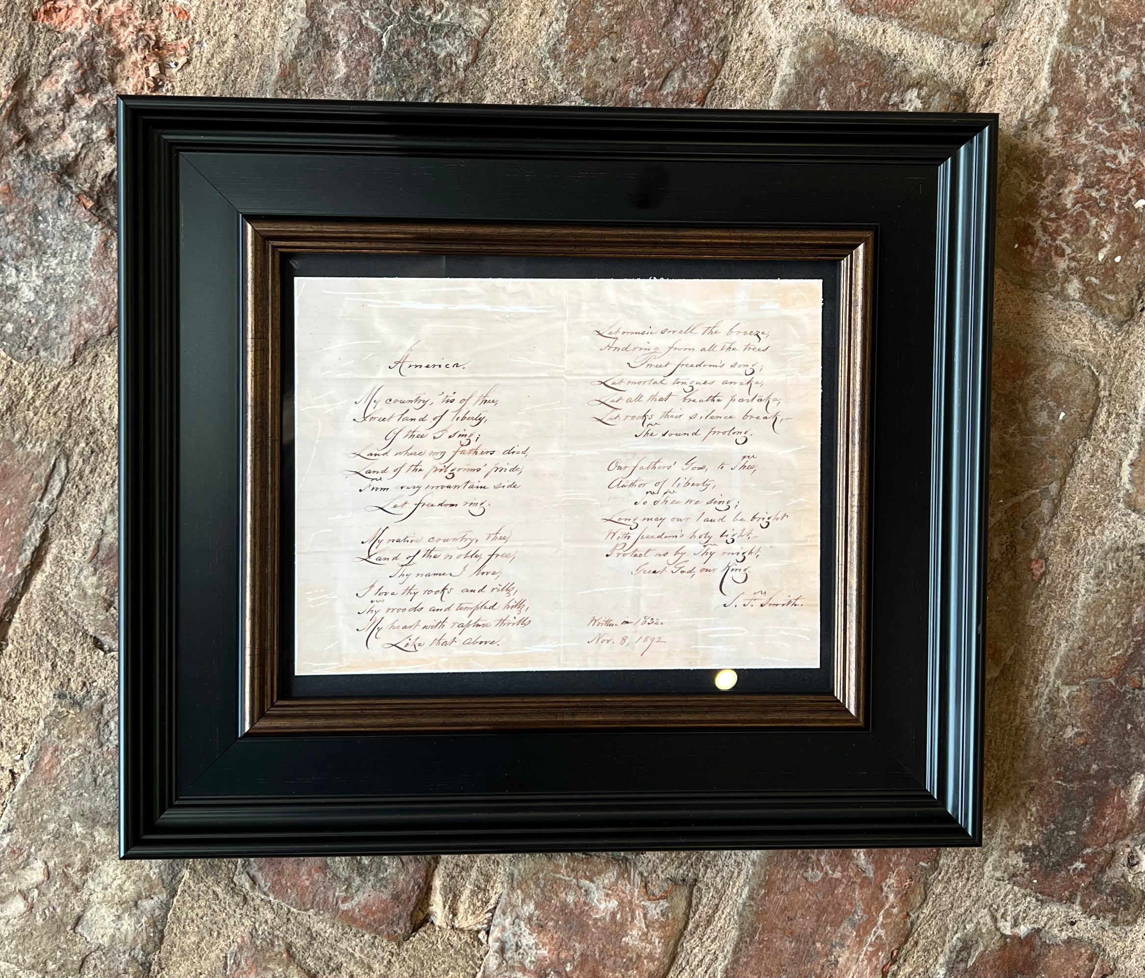 5 E -Framed, scanned from original hand- written document of My Country Tis of Thee by Samuel F Smith
