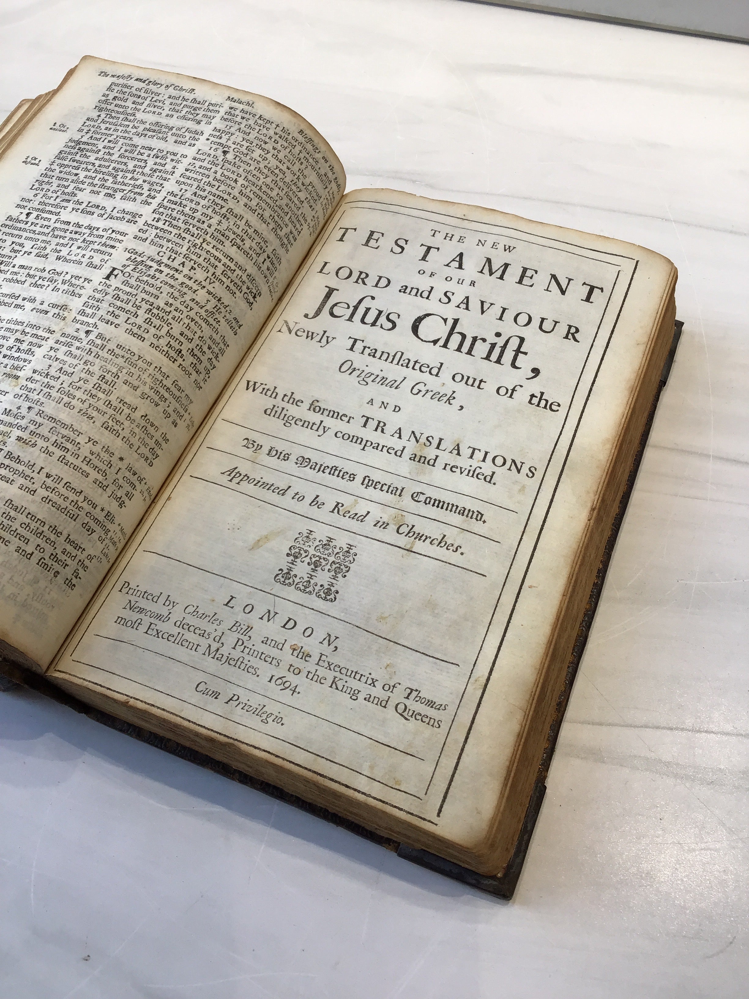 5B; 1682; "Holy Bible containing the Old Testament and New/ Newly translated out of the Original Tongues and with the former translations diligently compared and revised, by His Majesties speciall command Appointed to be Read in Churches" London: Printed by the assigns of John Bill deceas'd and by Henry Hills and Thomas Newcomb / 1682