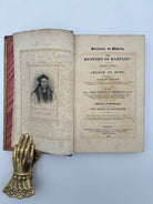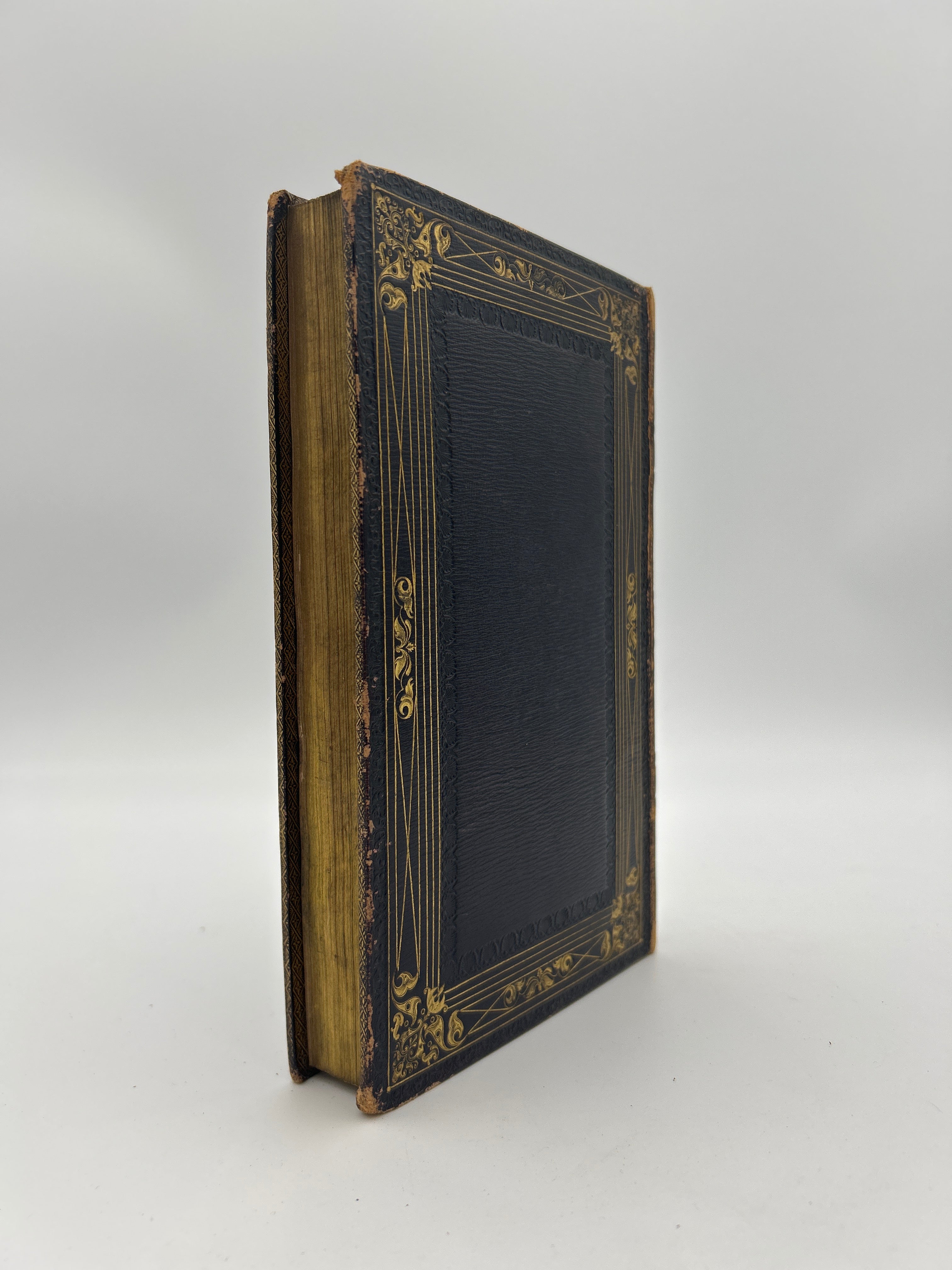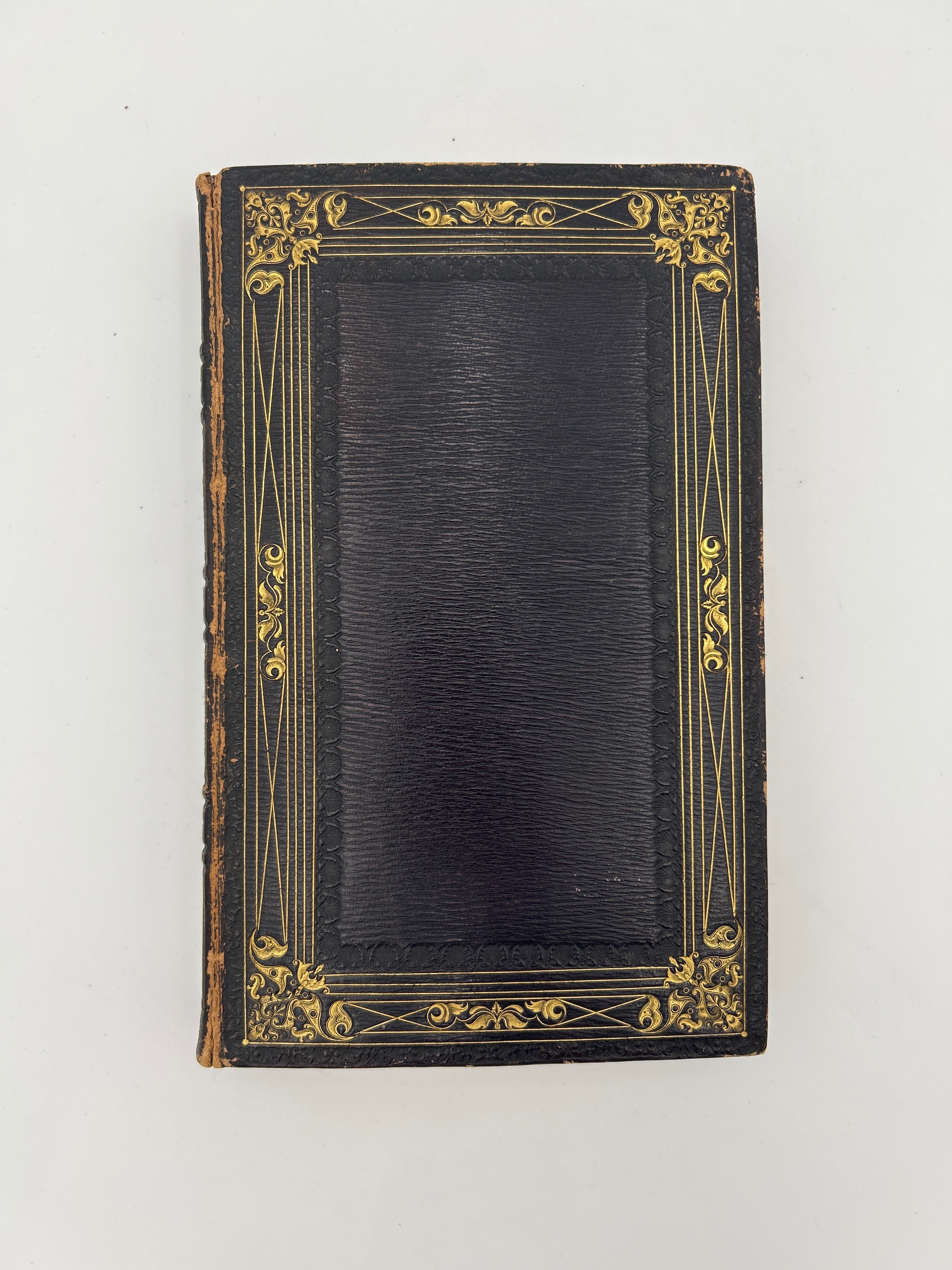 Deep purple textured leather with gold embossing on front, back and spine, The Mysteries of Babylon, beautiful Fore-edge painting, intact, very good condition.