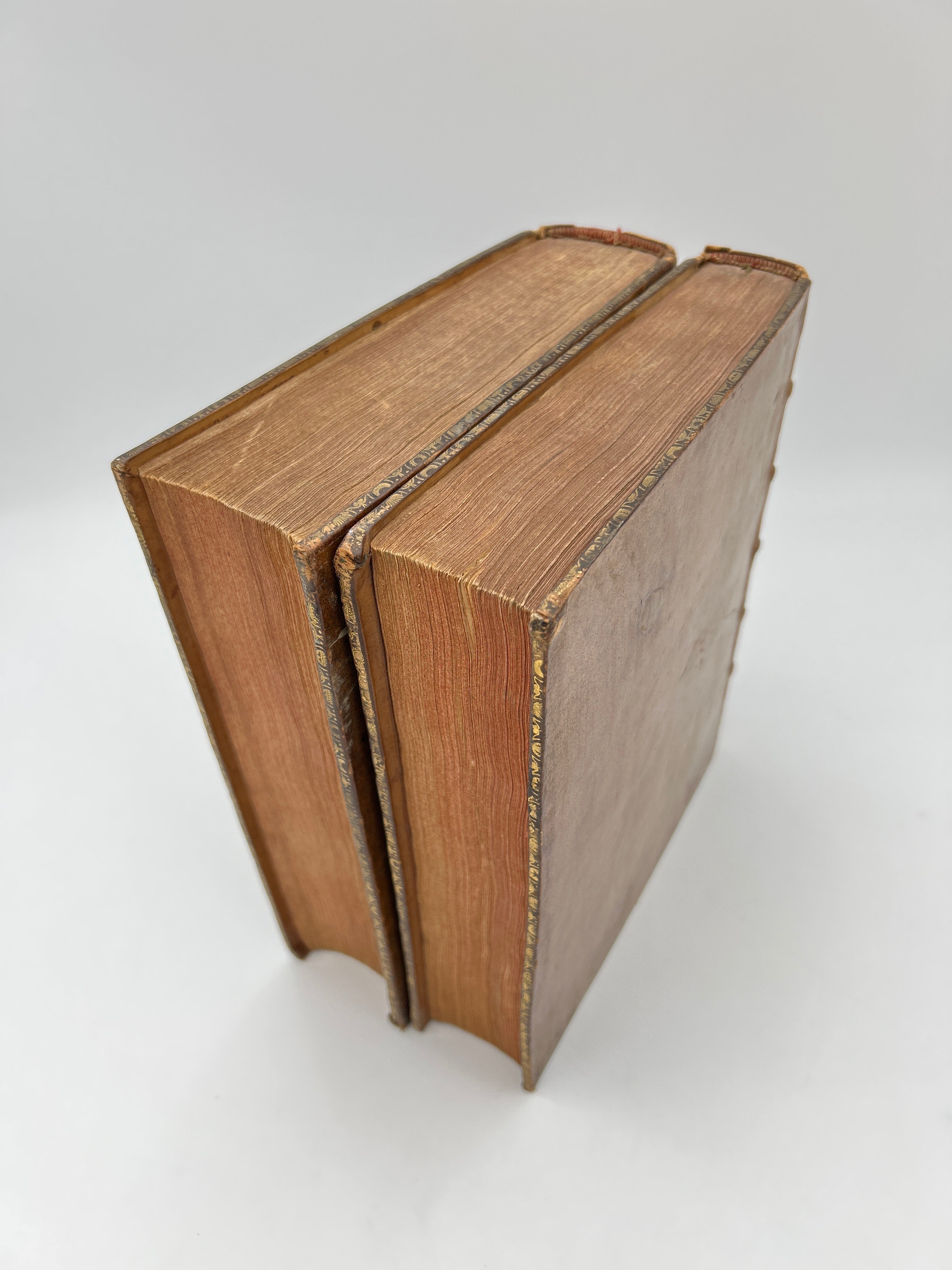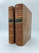 Calf leather binding with five raised bands, red leather label in the second compartment and black leather label in the third compartment with gilt lettering. Some chipping to the upper and lower spine of volume one. Rubbing to the extremities. Fine condition overall.