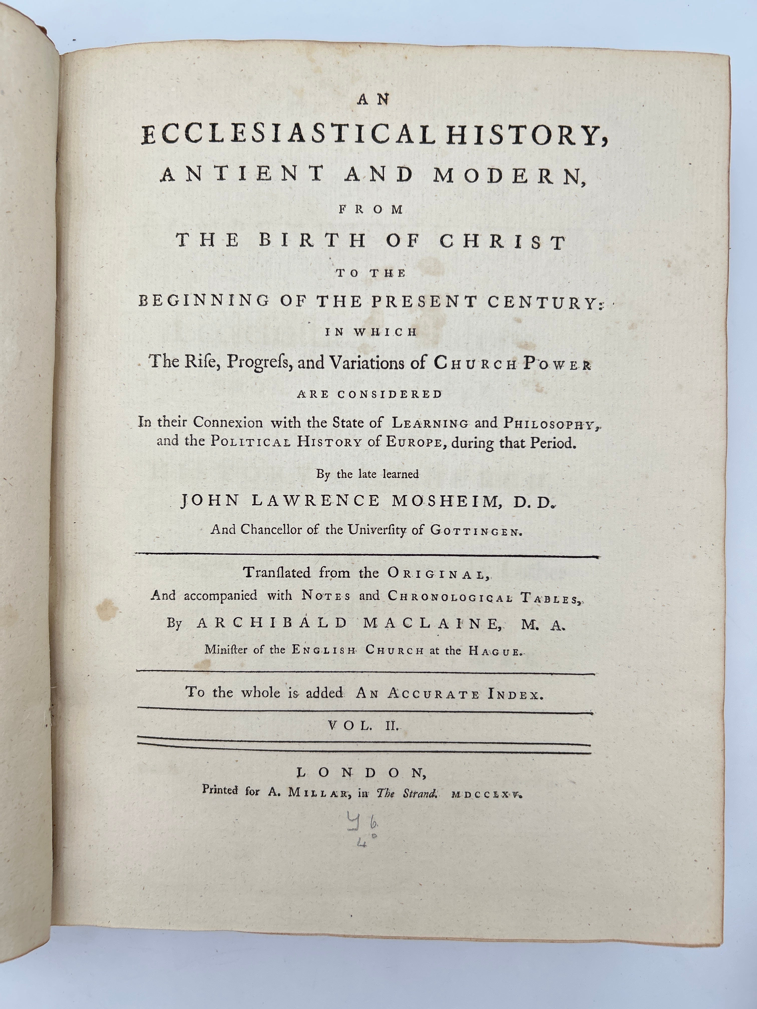5b Johann Lorenz von Mosheim. From the Birth of Christ to the Beginning of the Present Century. London, 1765.