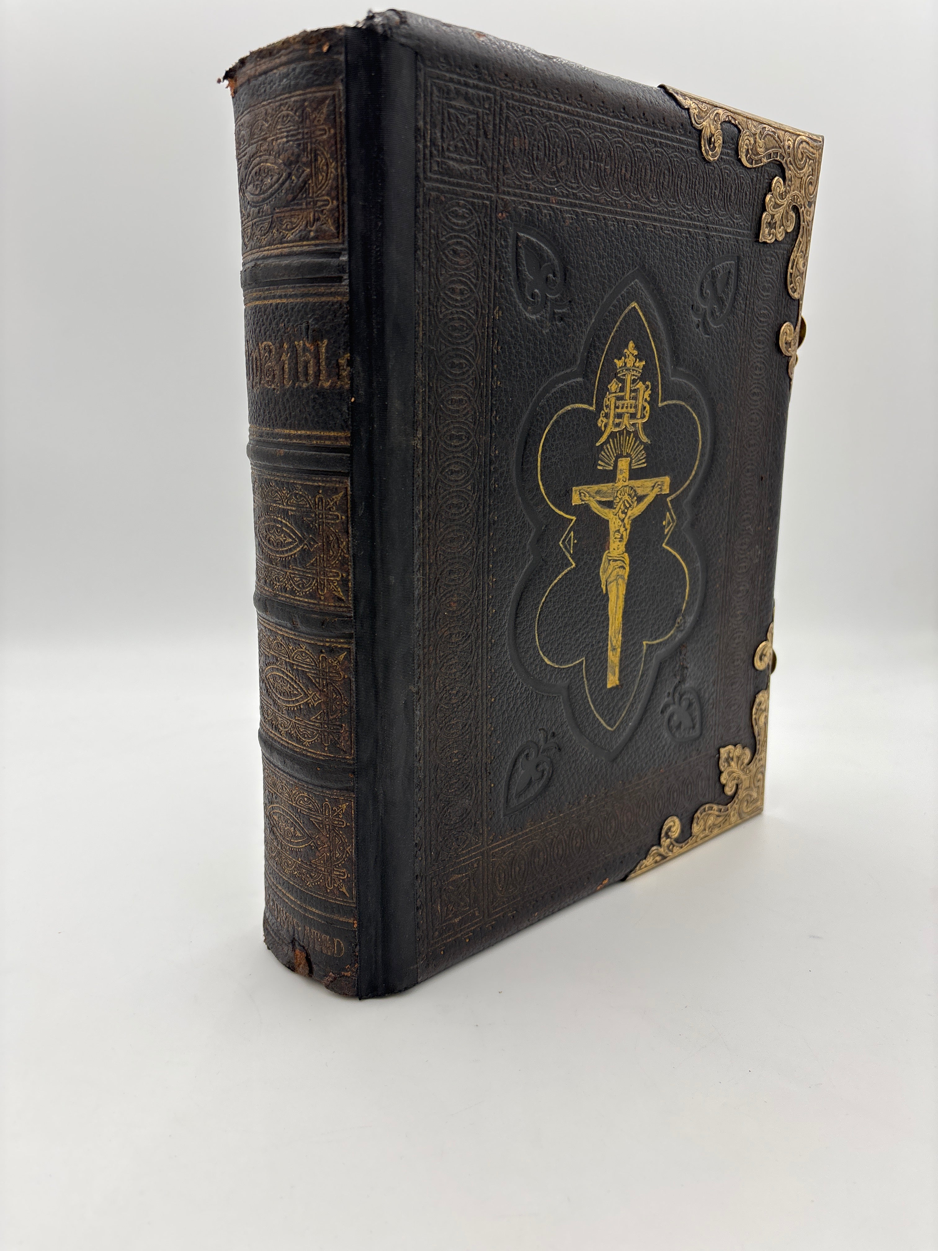 The Catholic Holy Bible of 1865 is a significant edition that reflects the traditional teachings and scriptural translations endorsed by the Catholic Church during the 19th century. Typically based on the Douay-Rheims translation—a version derived from the Latin Vulgate—it preserves the rich theological language and interpretations consistent with Catholic doctrine. This edition would have included the full canon of Scripture recognized by the Catholic Church, including the Deuterocanonical books, and was used for both personal devotion and liturgical purposes. Its publication came during a period of renewed emphasis on religious authority and tradition amidst growing biblical scholarship and Protestant influence.