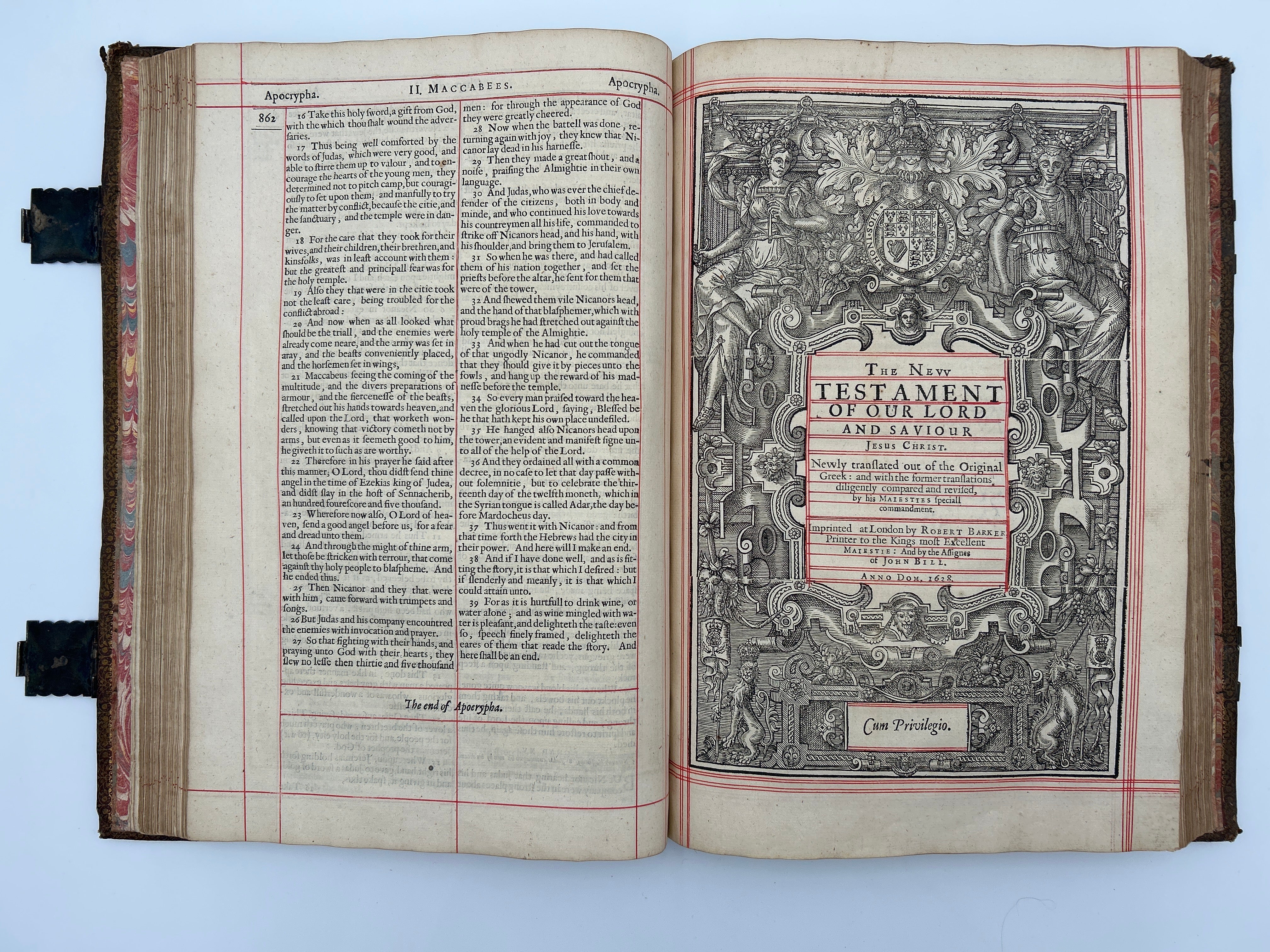Only the second volume of the Bible here contains part of the Old Testament, the Apocrypha, and the New Testament.