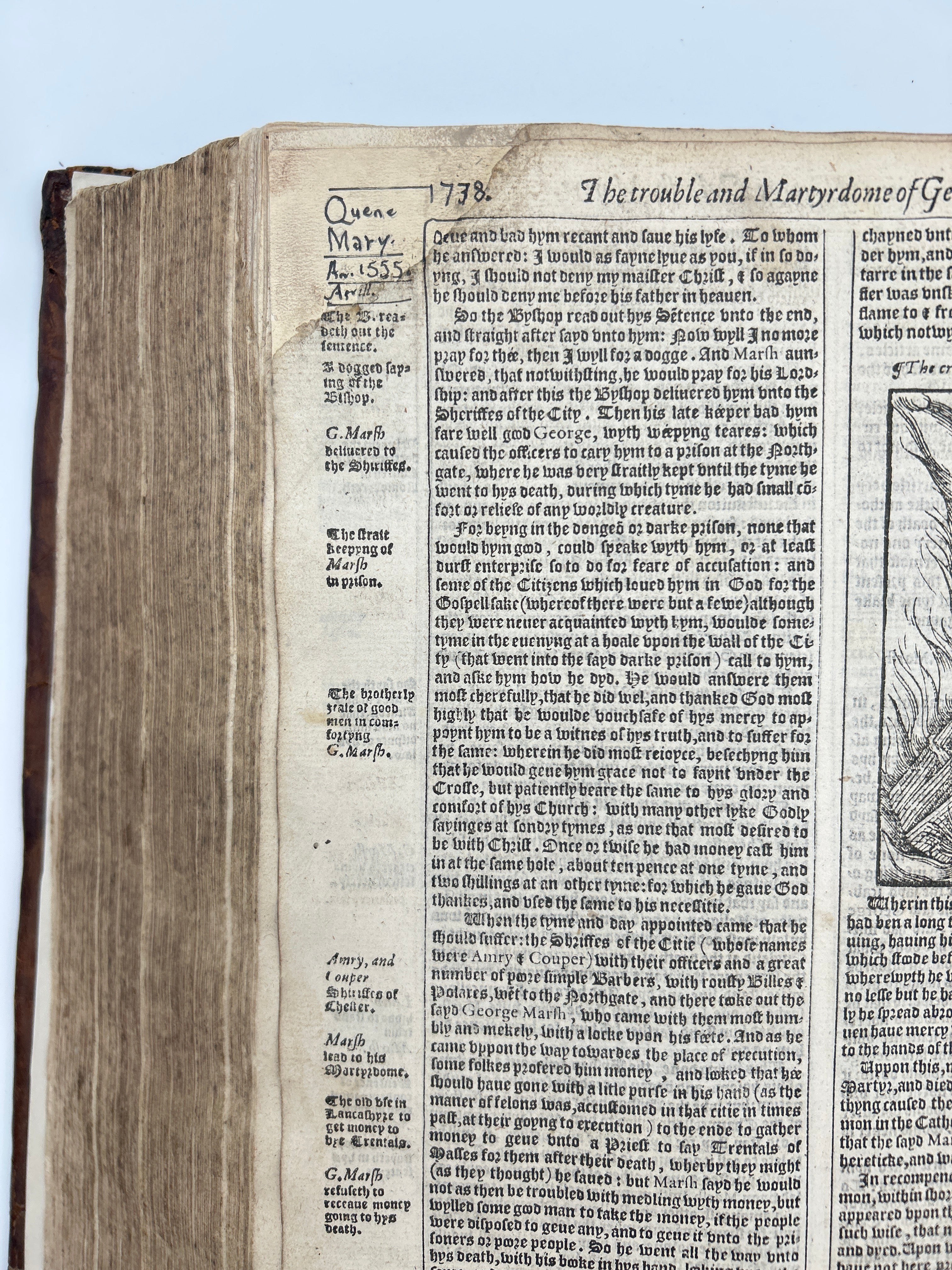 5B John Foxe. Ecclesiastical history containing the acres and monuments of things passed in every kings time in this realm. London: John Daye, 1570. Two Volumes. Second Edition