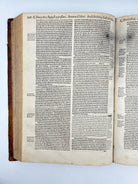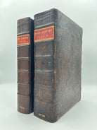 Multiple pages have been repaired with part of the leaf and facsimile. Top right corners of pages 1675 through 1750 have been repaired with the text written in by hand. Volume one is complete. Volume one is bound in panel calf and volume two and modeled calf. Corners repaired both volumes have been back. Volume two has original spine laid down. Modern Morocco labels to spine. Joints of volume two are slightly cracked with some surface marking and where. Some internal foxing illustrated throughout with celebrated wood cuts. Title page of volume one is inscribed with the name Mary Scamman.