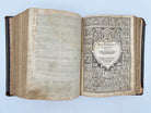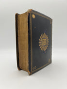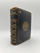Dark brown leather covered boards. Gilt embossed designs on the upper and lower boards with Masonic symbols in the four corners and center on both boards as well as in each compartment of the spine. Five raised bands. All edges gilt, with marbled endpapers, and gilt turn ins. Gilt lettering in the second spine compartment. Scuffing on both boards and spine. Fading of the dark brown leather on the spine hinges, upper spine and along the raised bands. Chipping on the lower spine, the corners, and the fourth compartment. Minimal foxing within. Straight edge cut which does not obstruct the text on the bottom of page 484 and 485 all the way to the binding. Very good condition overall.