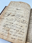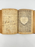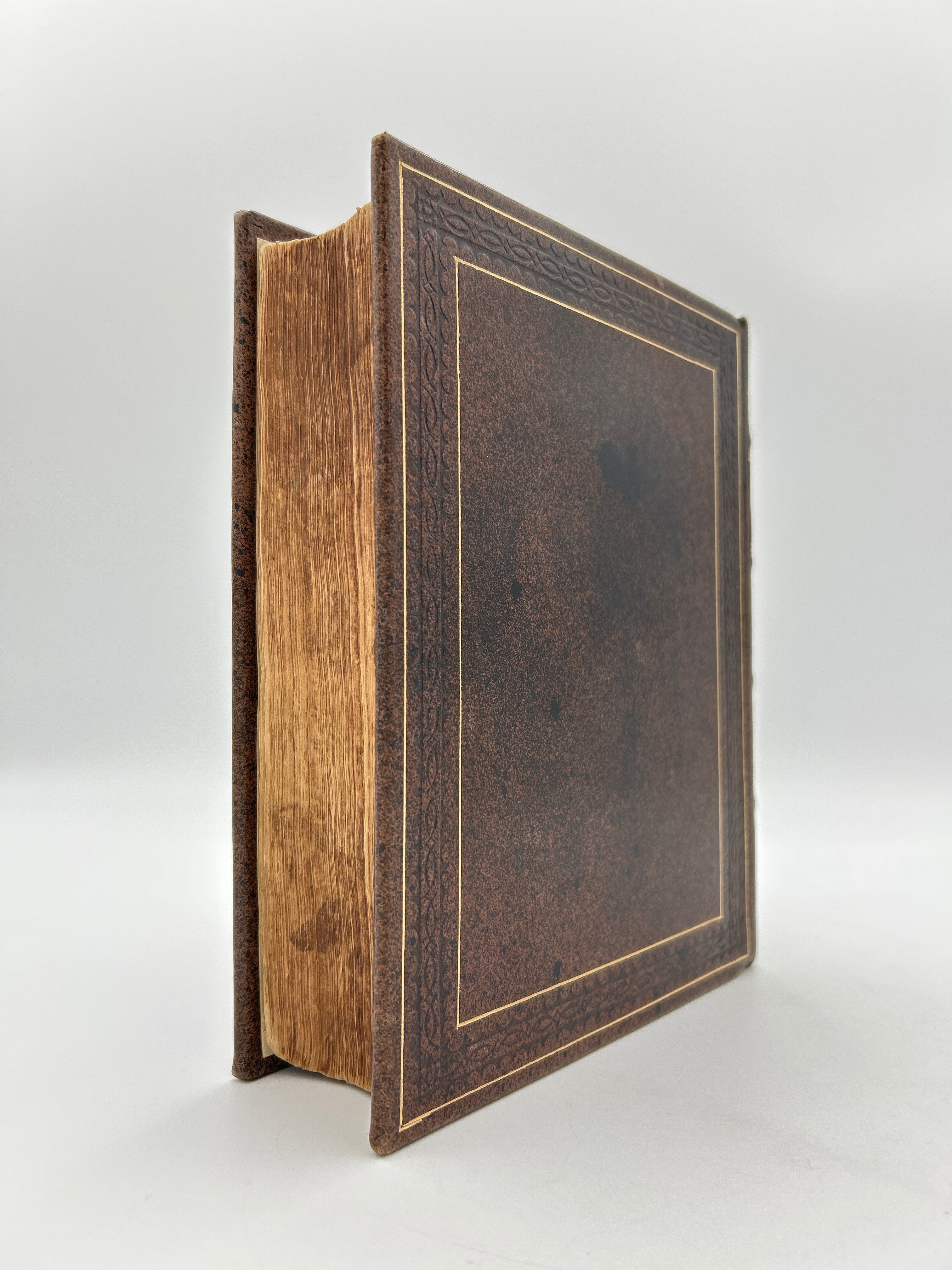 Beautiful brown leather with gold tooling front, back, and spine, four raised bands with burgundy title plate, gold dates on bottom of spine, intact with beautiful handwritten notes on blank pages, fine condition.