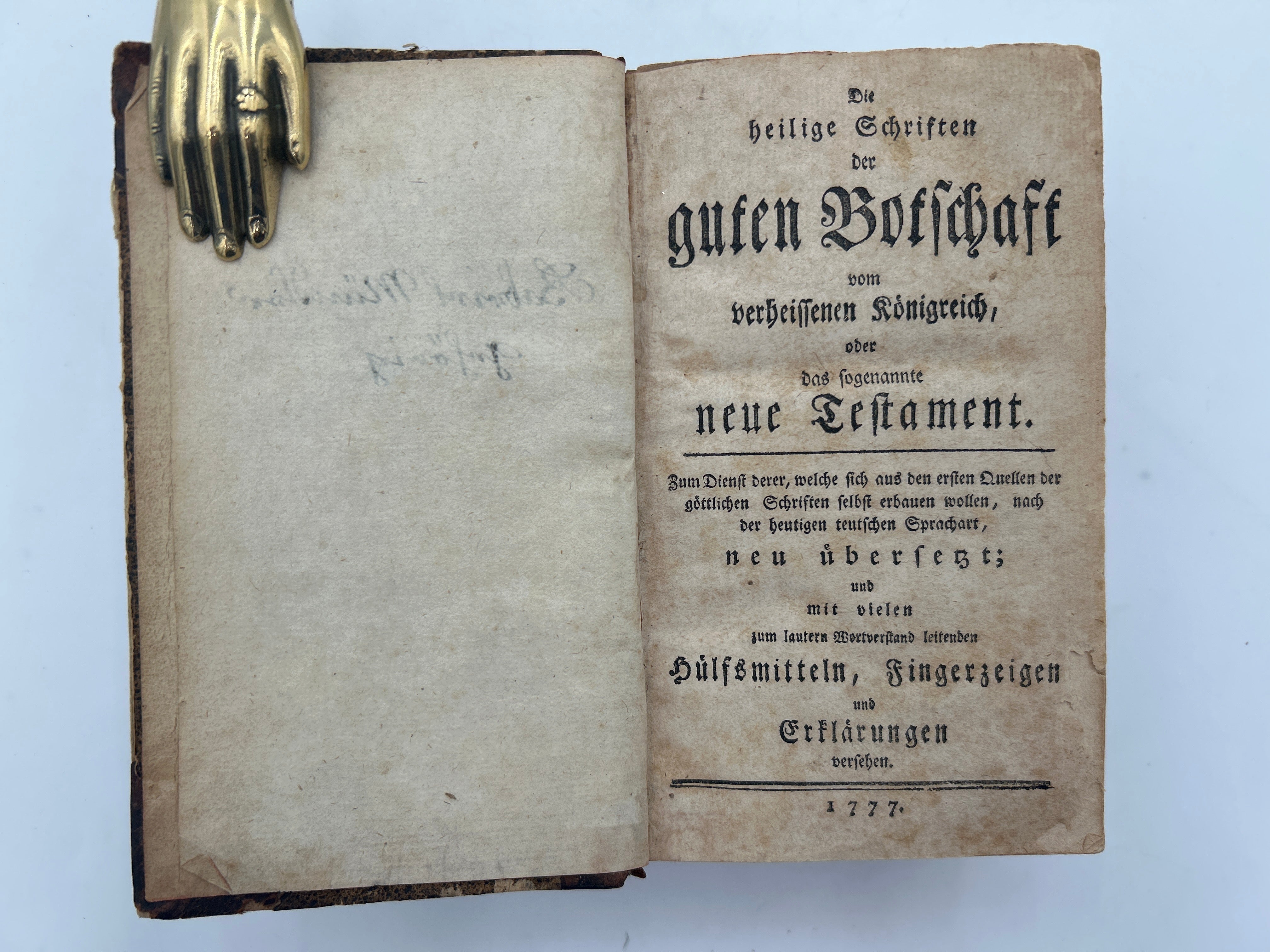 6B Old and New Testament Bible. Bulfsmitteln, Fingerzeigen. 1777. German.