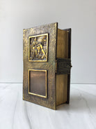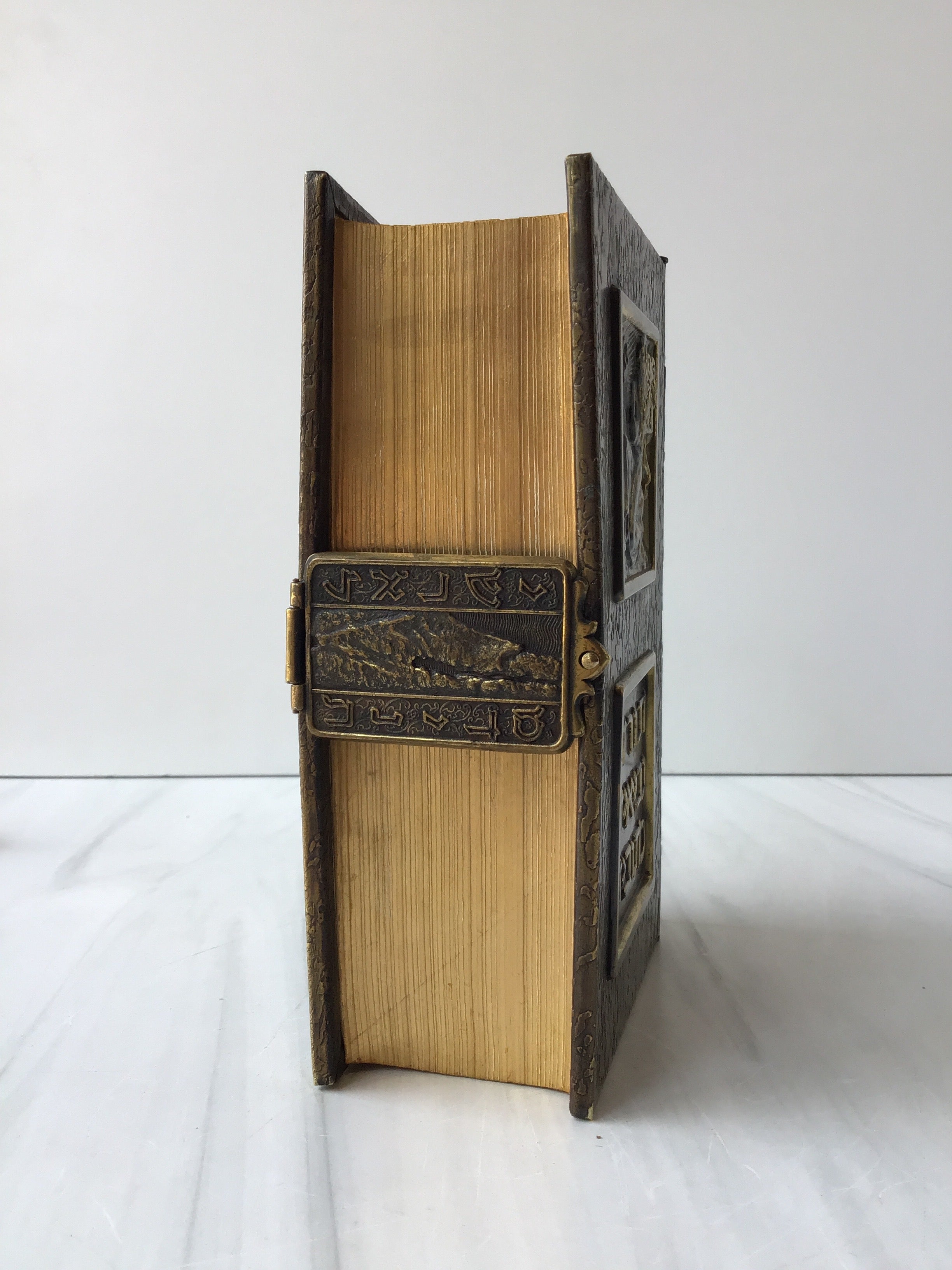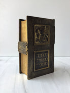 Fully engraved brass binding, stunning book, gilded edges, enclosure clasp, black and white illustrations throughout, pristine condition.