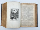Beautiful large bible, marble end papers, gold tooling front, back and spine, six raised bands, black and white illustations, intact, fine condition.