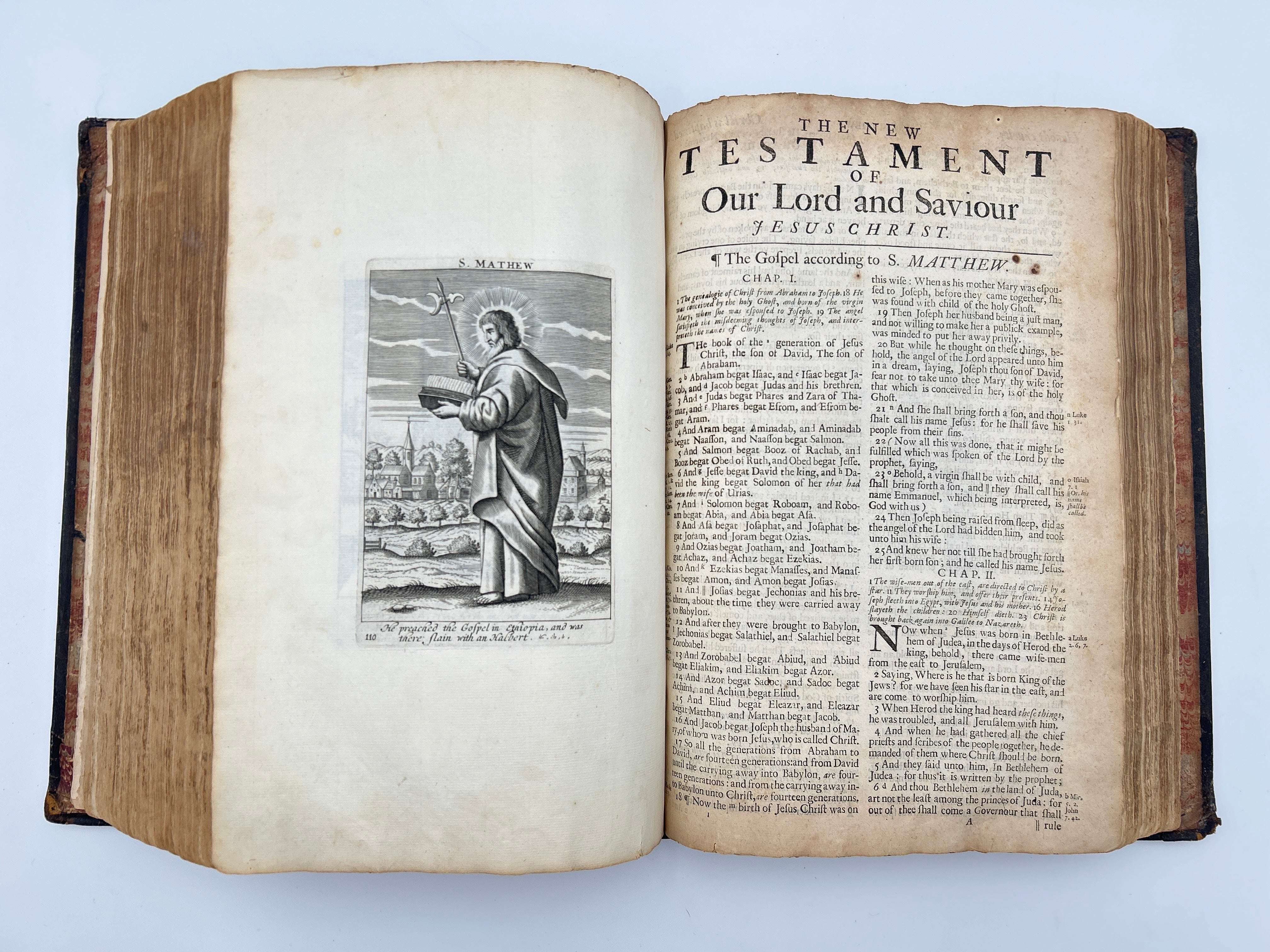 The Holy Bible from the 1680s is a significant historical artifact, reflecting the religious, cultural, and linguistic context of the late 17th century. During this period, the Bible was often printed using early English translations, such as the King James Version, which was widely used following its first publication in 1611. These Bibles were typically large, ornate, and sometimes included illustrations and elaborate bindings. They served as central religious texts for both personal devotion and public worship, playing a critical role in shaping the spiritual life of communities. The 1680s editions often reflected the typographic style and theological emphasis of the time, making them valuable both as religious texts and historical documents.