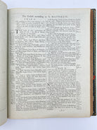 The Holy Bible is the sacred scripture of Christianity, containing the Old and New Testaments, and has been central to Christian worship, doctrine, and daily life for centuries. In the English-speaking world, the King James Version (first published in 1611) became the most widely read and enduring translation, admired for its literary beauty and theological clarity. By the 17th and 18th centuries, the Bible was often produced in finely printed editions for both public and private use, sometimes accompanied by commentary or concordances. These Bibles were not only devotional texts but also heirlooms, often passed down through generations and used to record family events like births, marriages, and deaths.