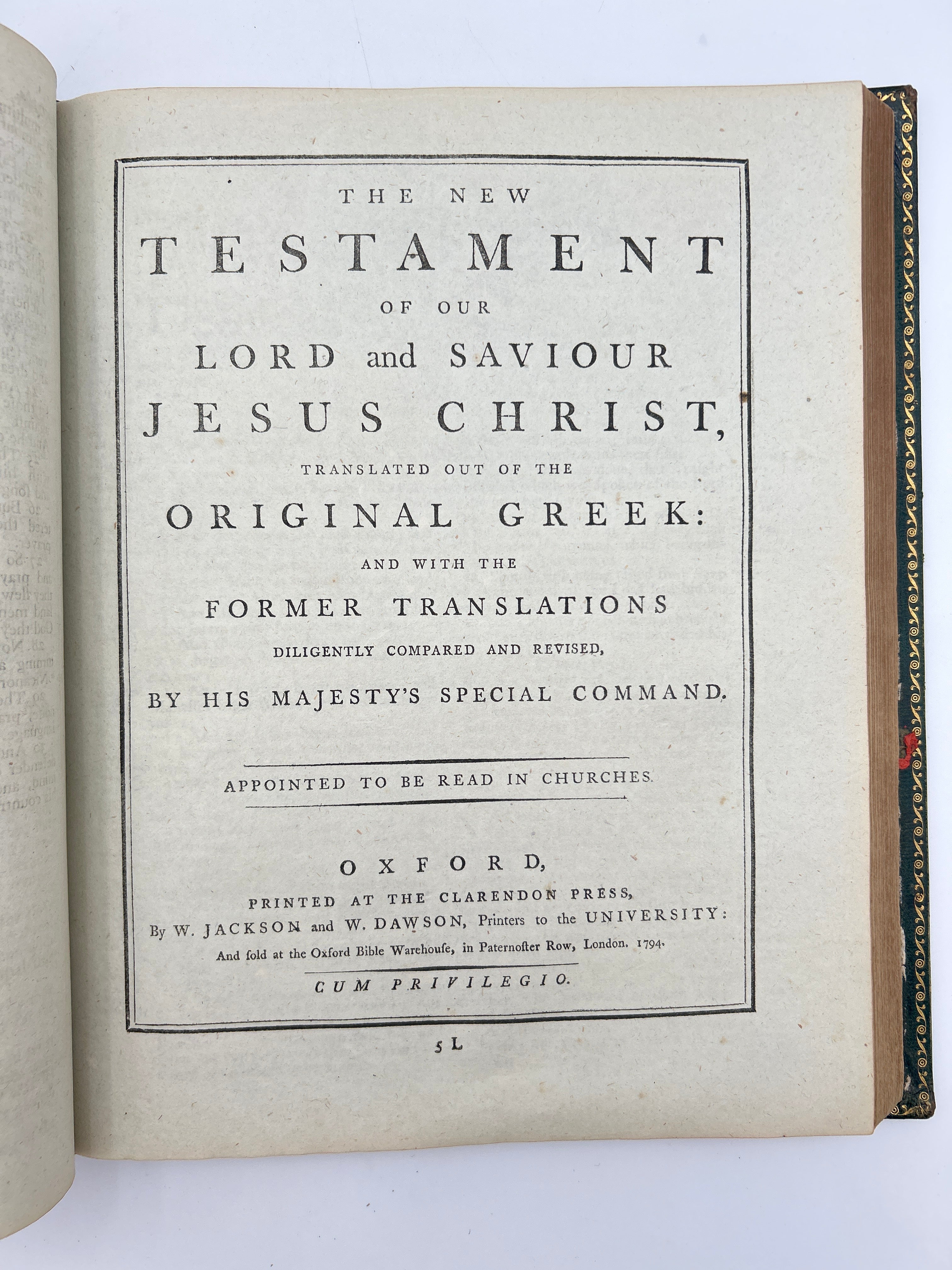 5B Holy Bible with Old and New Testaments. Oxford: Clarendon Press, W. Jackson and W. Dawson, 1794.