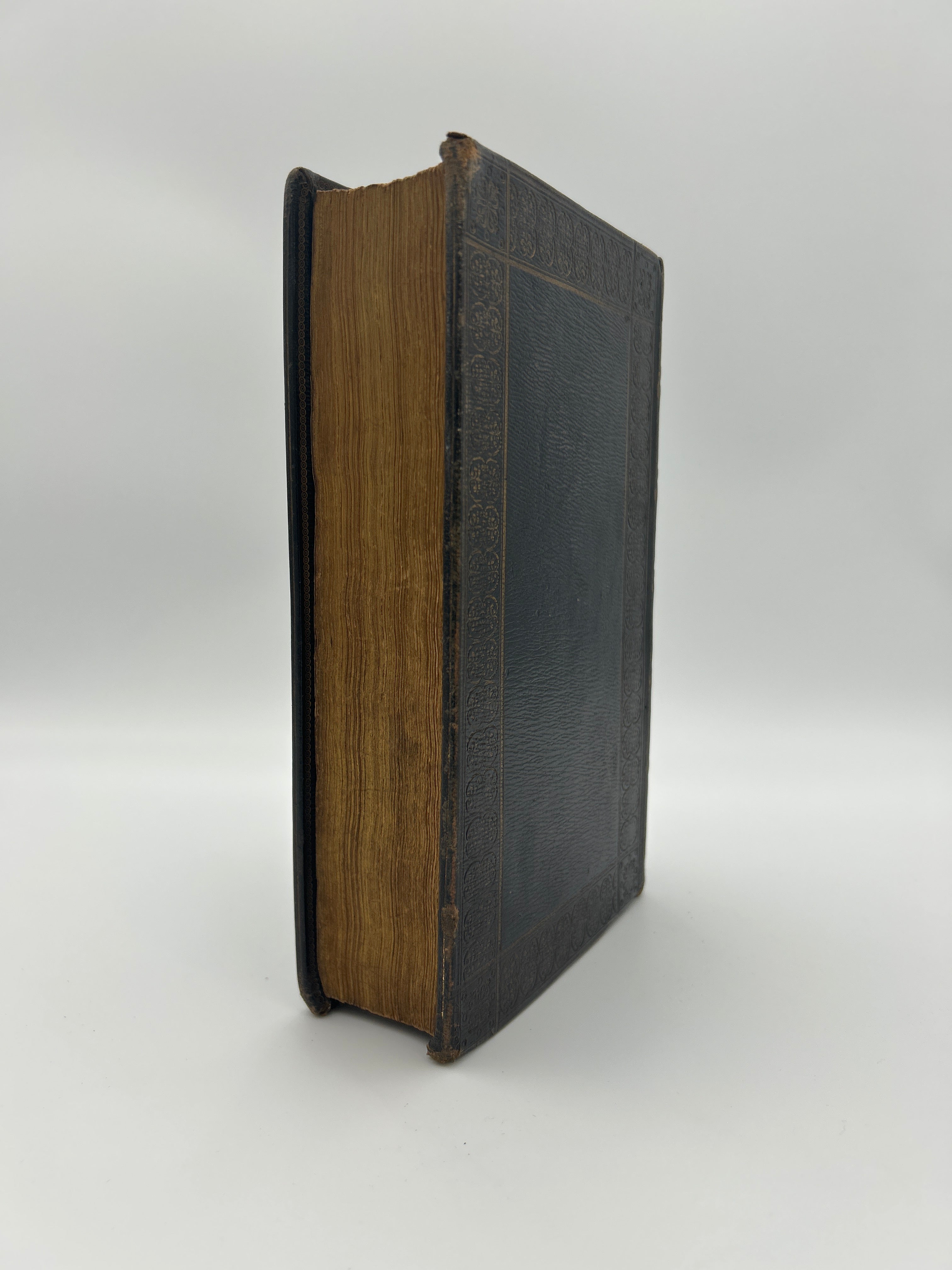 Two volumes beautifully bound in textured black leather with gold tooling, three edge gild, some rubbing on edges but otherwise very good condition.