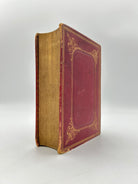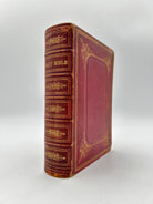 Red pebbled leather with gold tooling on front, back and spine, three edge gold, five raised bands, intact, some rubbing around outside edges and corners, overall good condition.