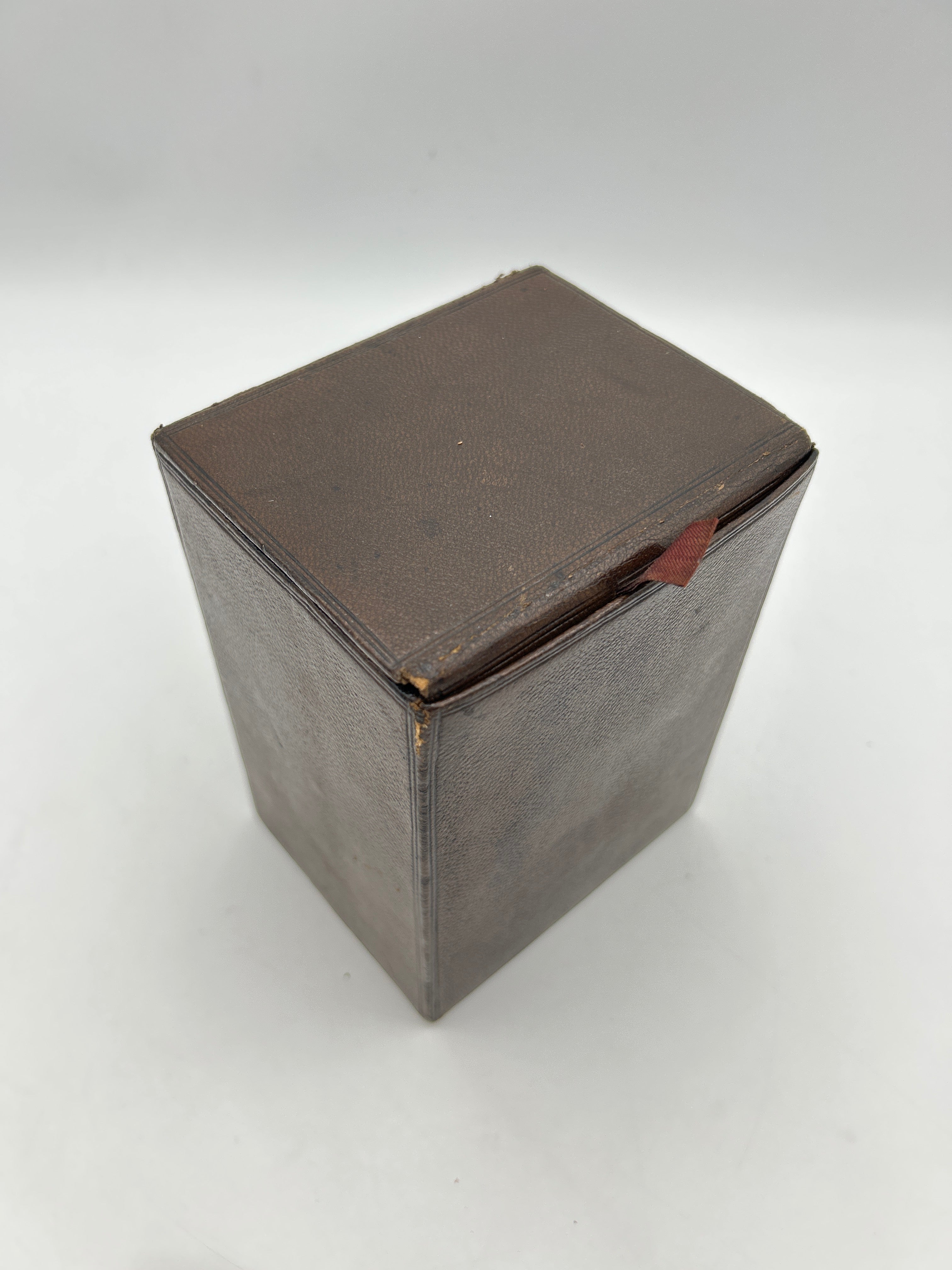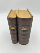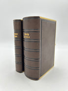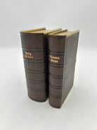 Brown leather bindings with five raised bands and gilt lettering in the second compartments. Brass edges and functioning clasps. All edges gilt. Original box in brown leather with two separate compartments within to safely house both books. Very fine condition overall.