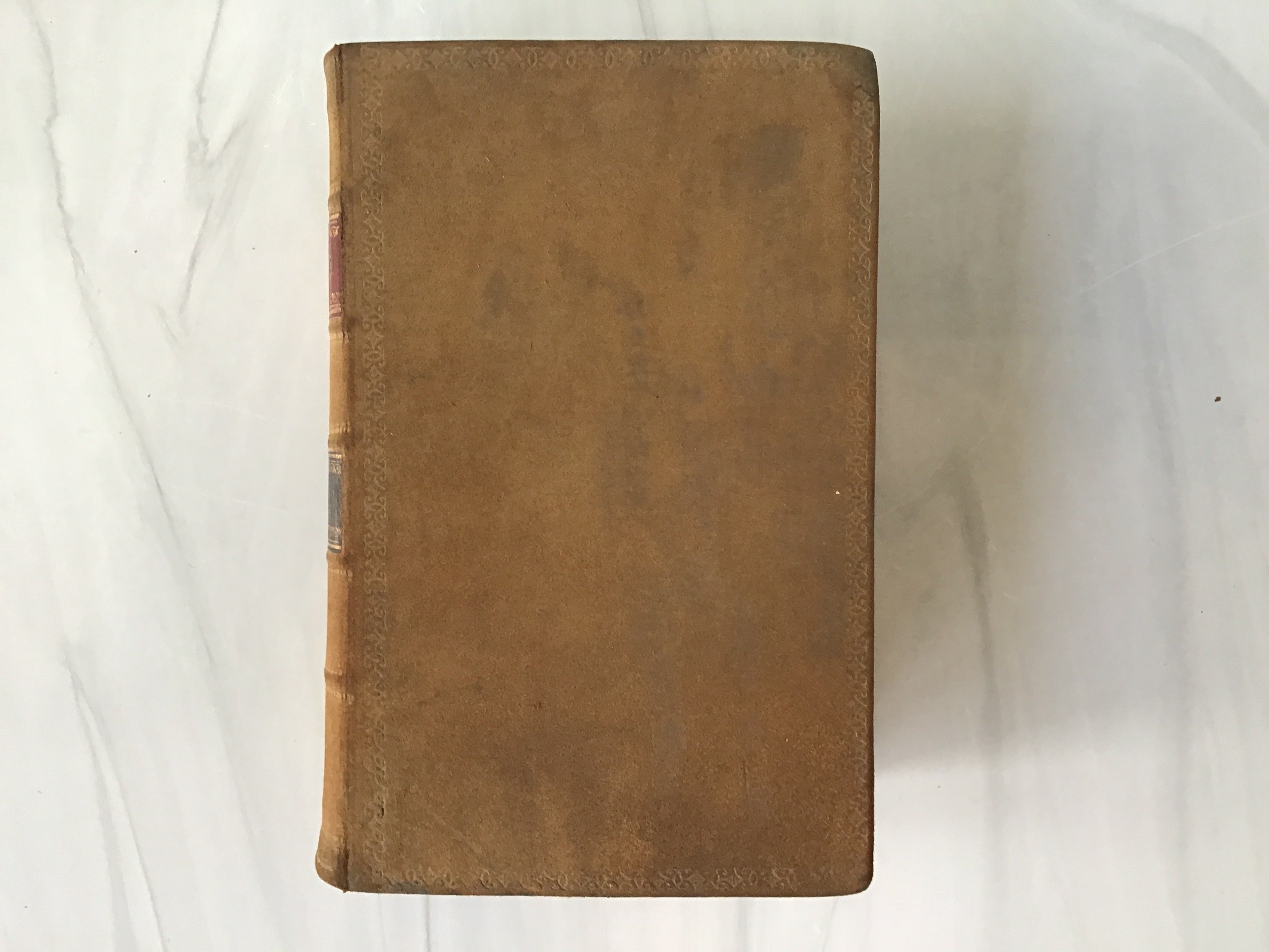 marbled three edge, suede binding with red and burgundy title plates on spine, five raised bands, fine condition.