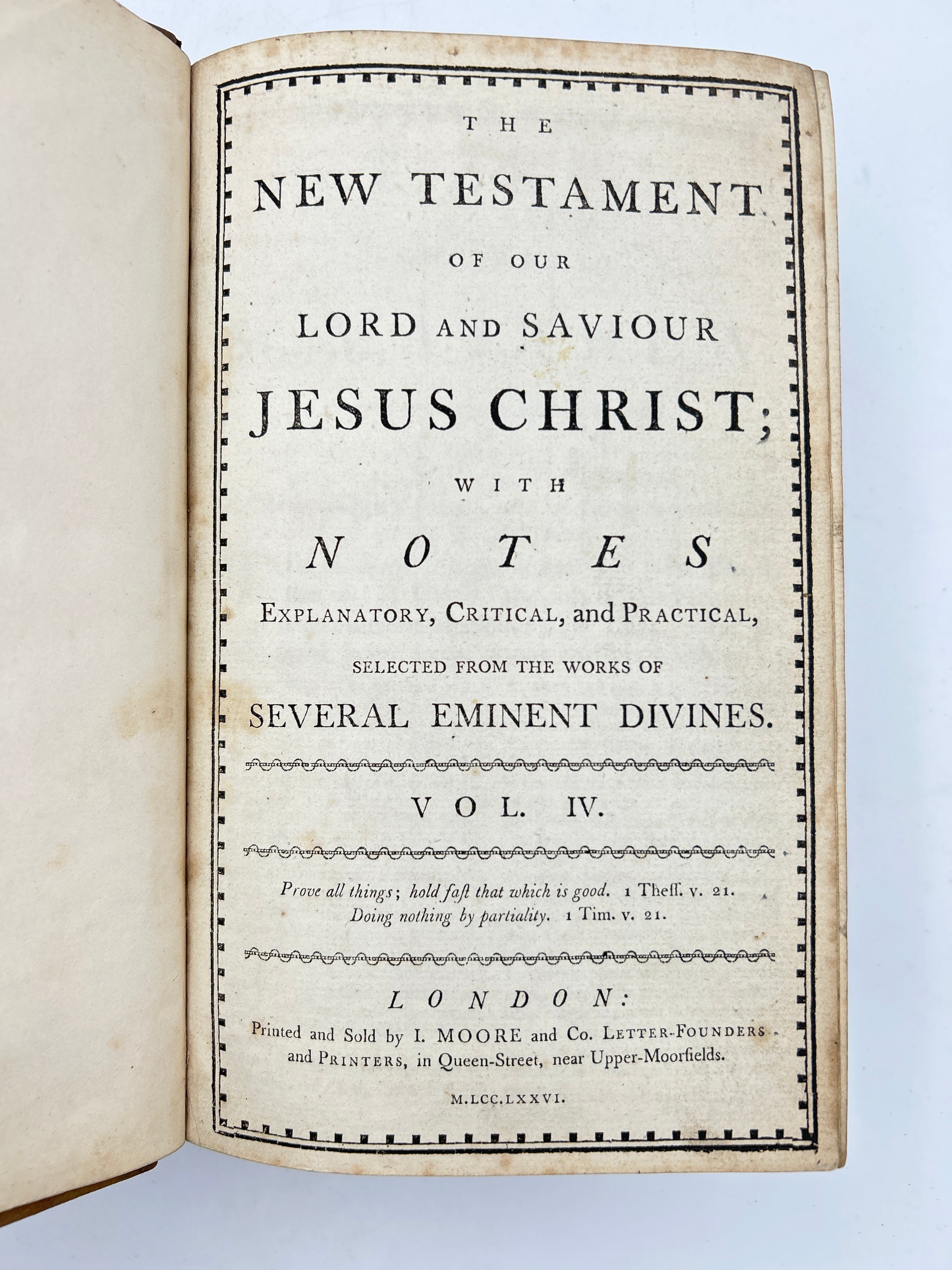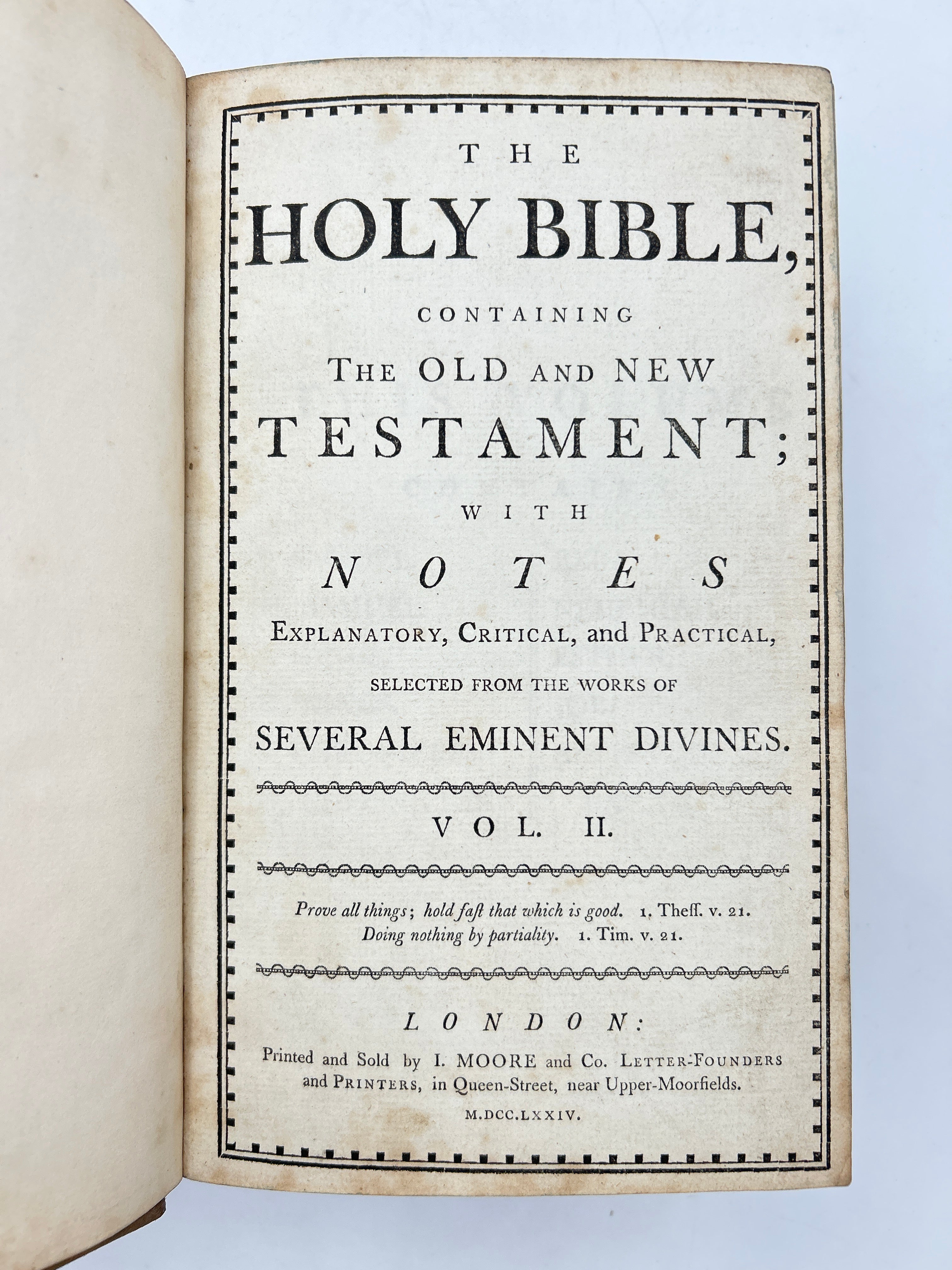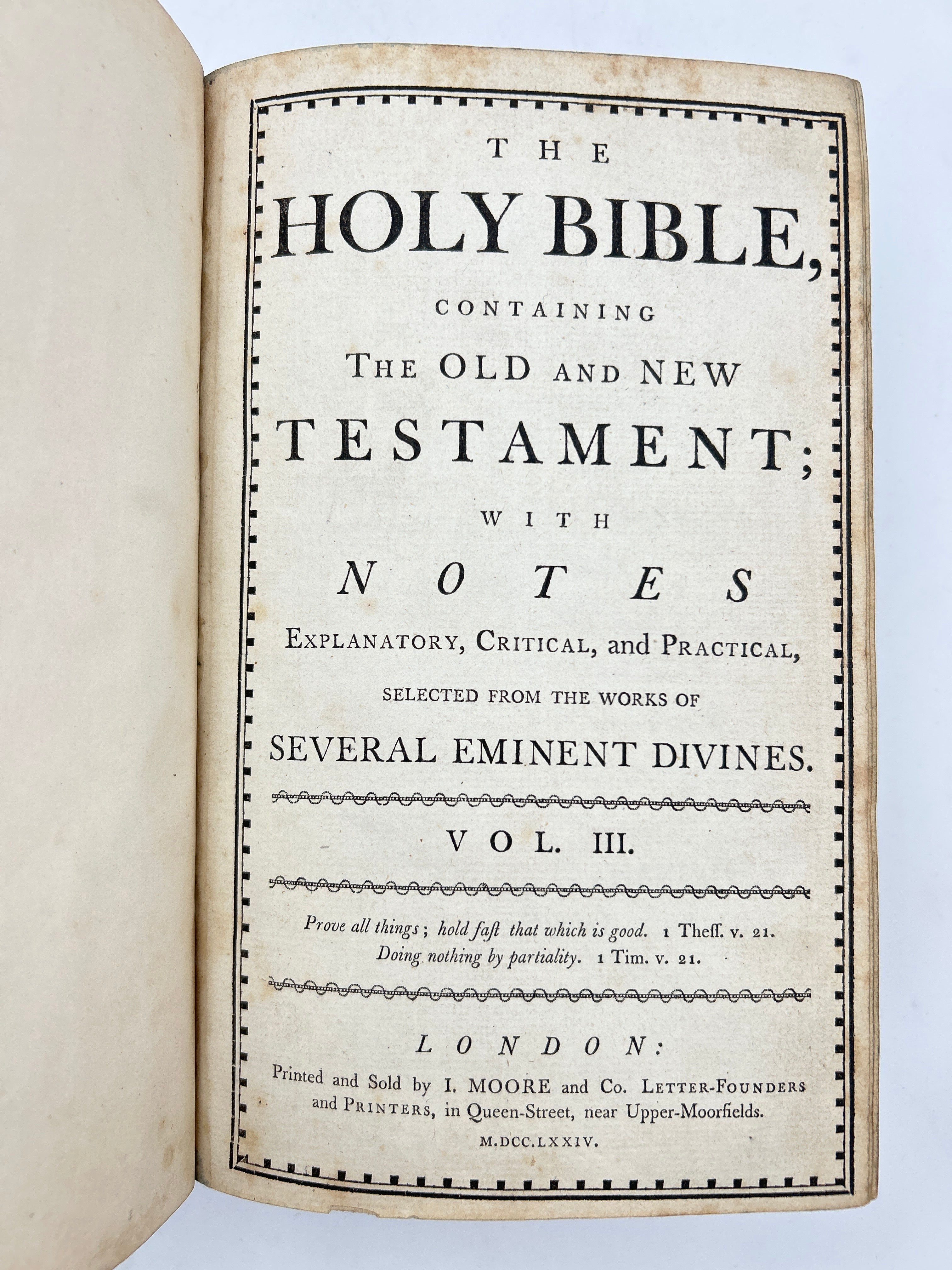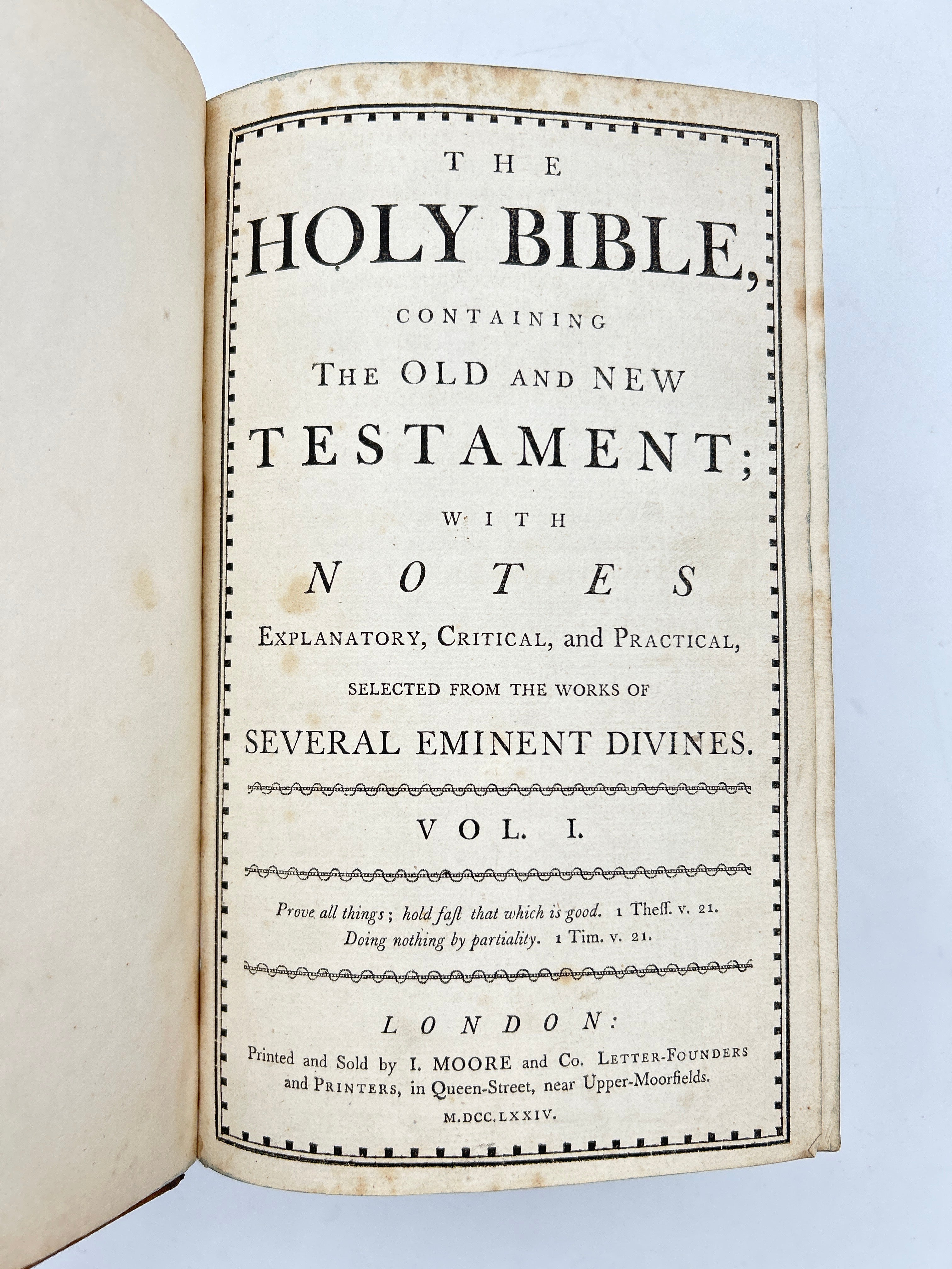 6B Holy Bible in Four Volumes. London: I. Moore, 1774.
