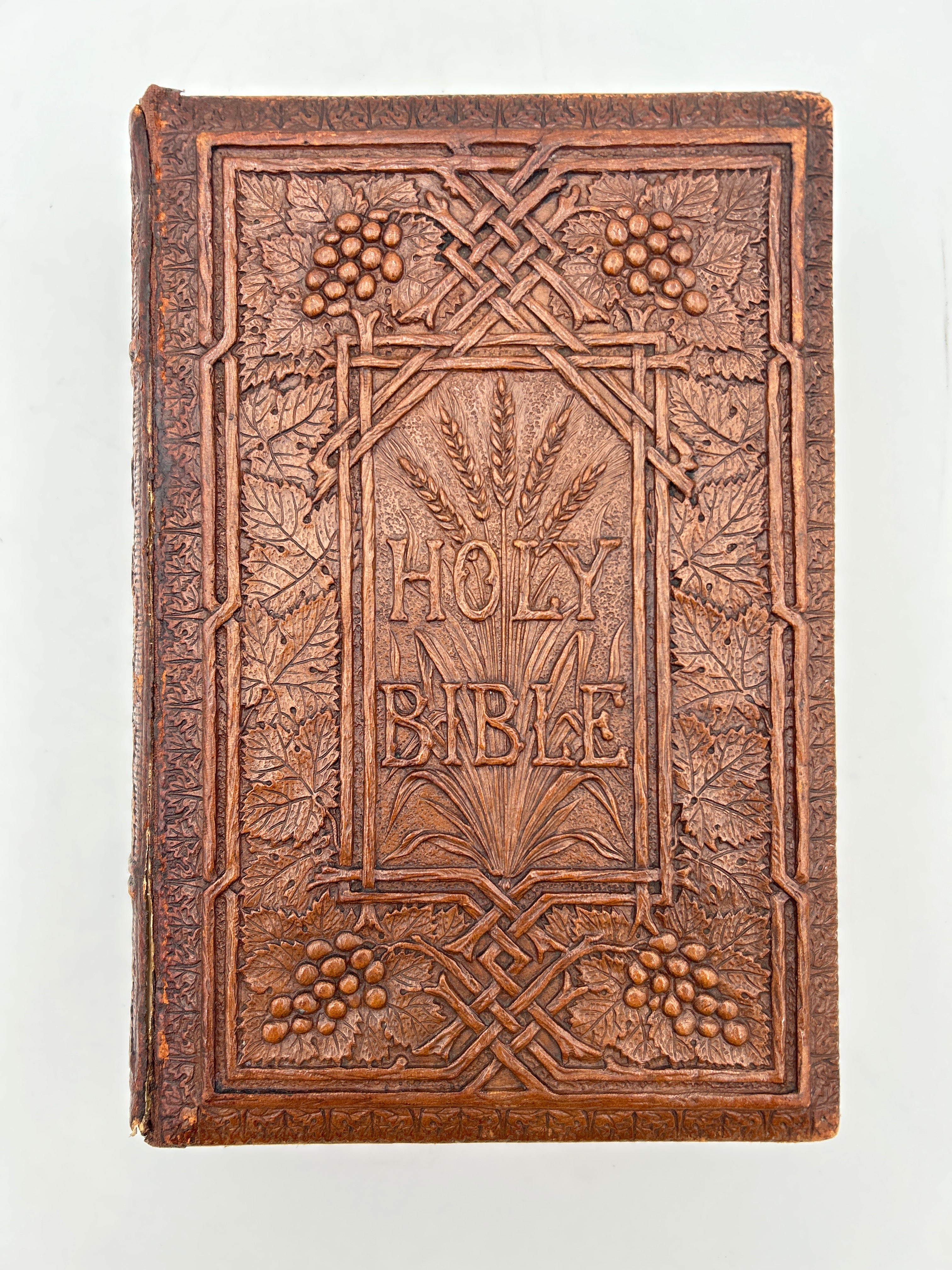 Full calf relievo binding designed by Owen Jones. Pressed and carved intricate wheatsheaf lattice work and grapes on the spine and boards with lettering on spine and upper cover. Rubbing to the head of the spine and minor signs of repair to both hinges. Very fine condition overall.