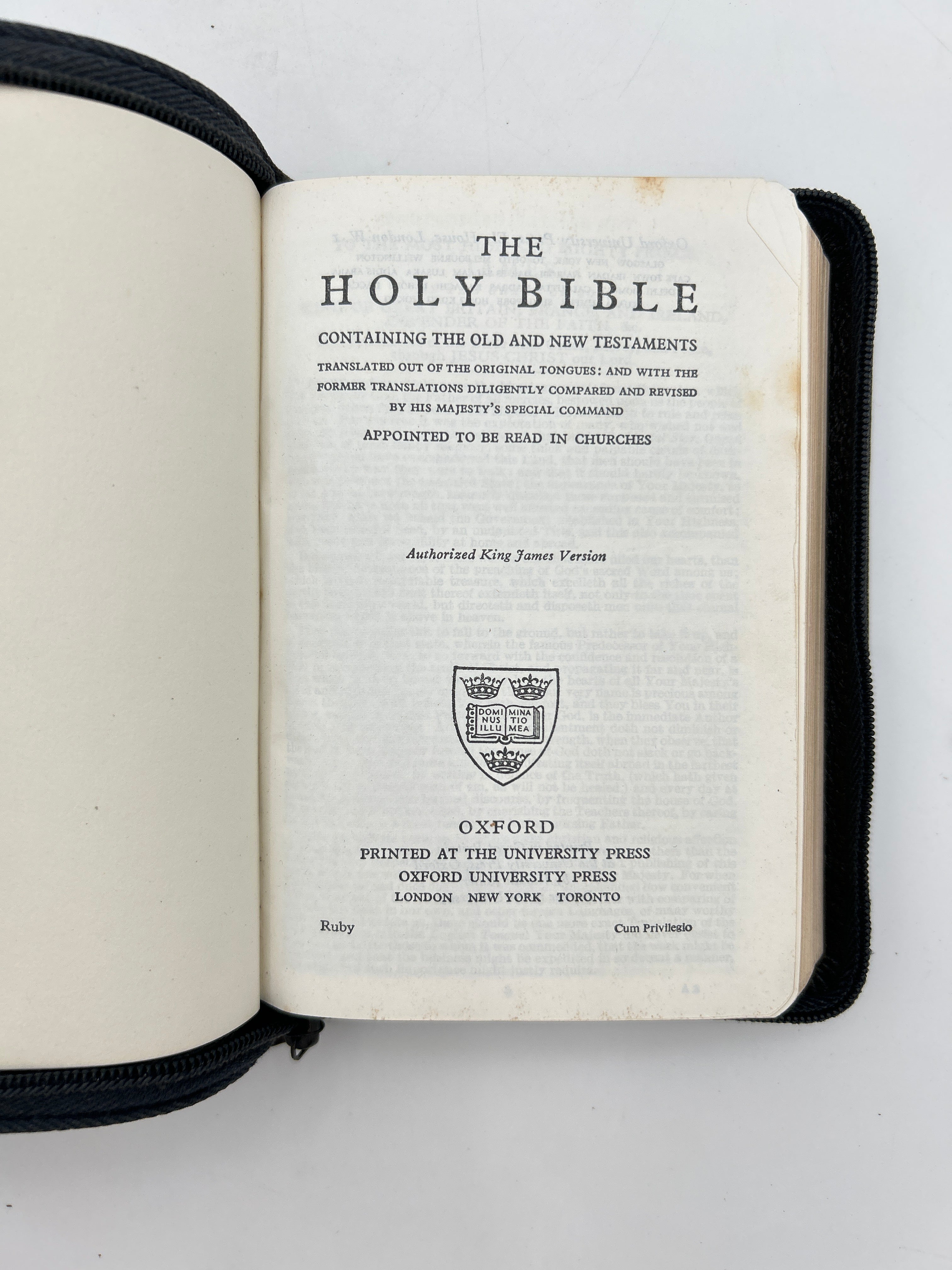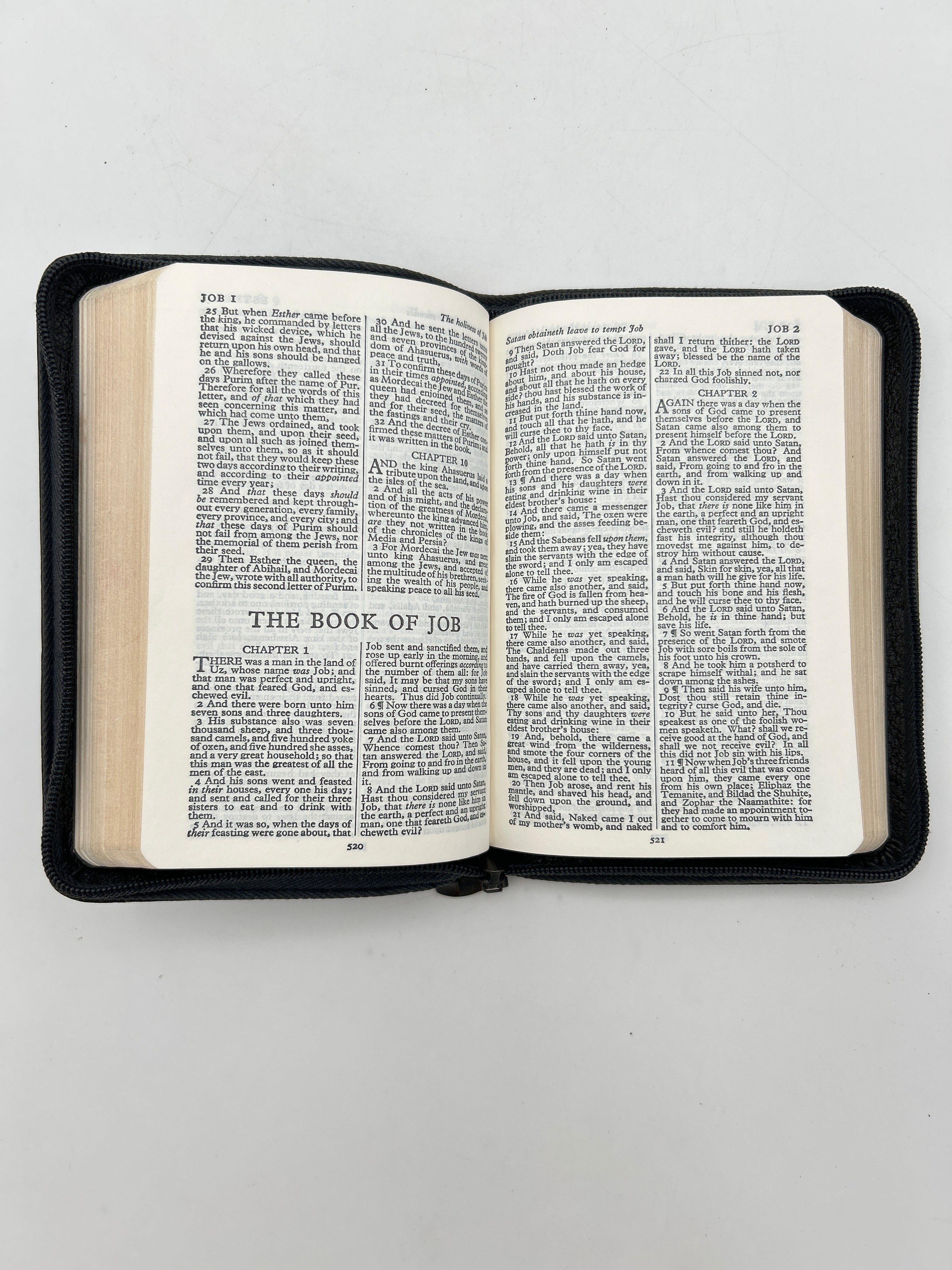 Zippered Bibles, featuring a zip closure around the cover to protect the pages, were first introduced in the early 1930s. Cambridge University Press patented the design in 1933, making them one of the earliest publishers to combine the practicality of a zipper with the portability of a Bible. The innovation came at a time when zippers themselves were still relatively new and not widely used outside of clothing and select accessories. During World War II, zipper use was largely restricted to military applications, limiting production. After the war, Cambridge sought to extend its patent protection, and by 1950, a legal agreement allowed them a few more years of exclusive rights before other publishers began producing similar editions. These early zippered Bibles reflect a thoughtful blend of function and design, aimed at preserving the text while accommodating a more mobile and modern way of life.