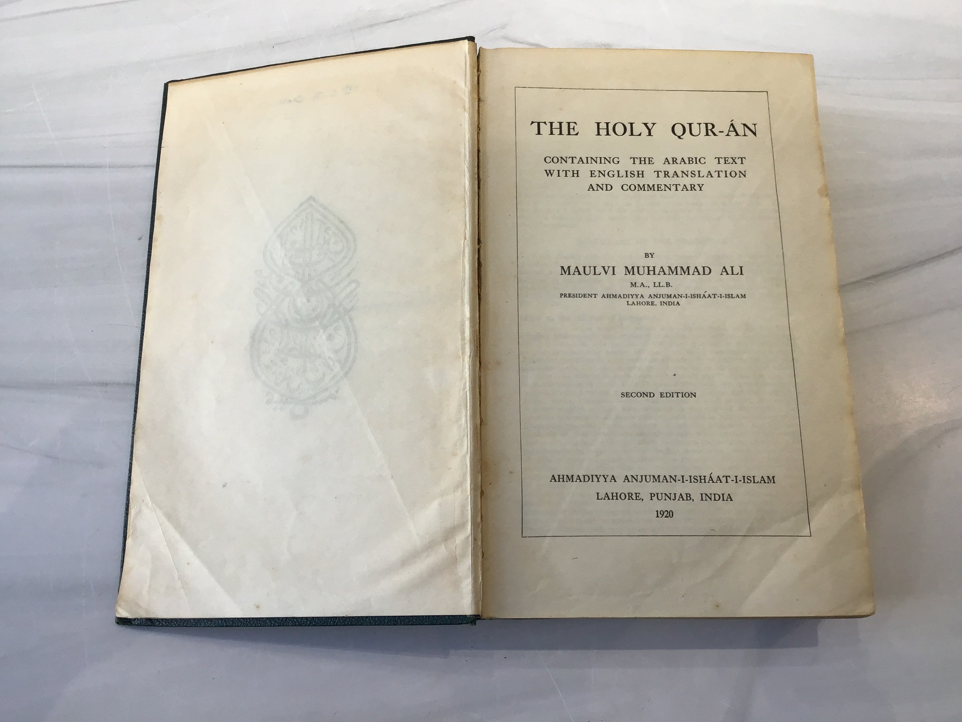 5B; 1920 containing the Arabic text with English translation and commentary by Maulvi Muhammad Ali