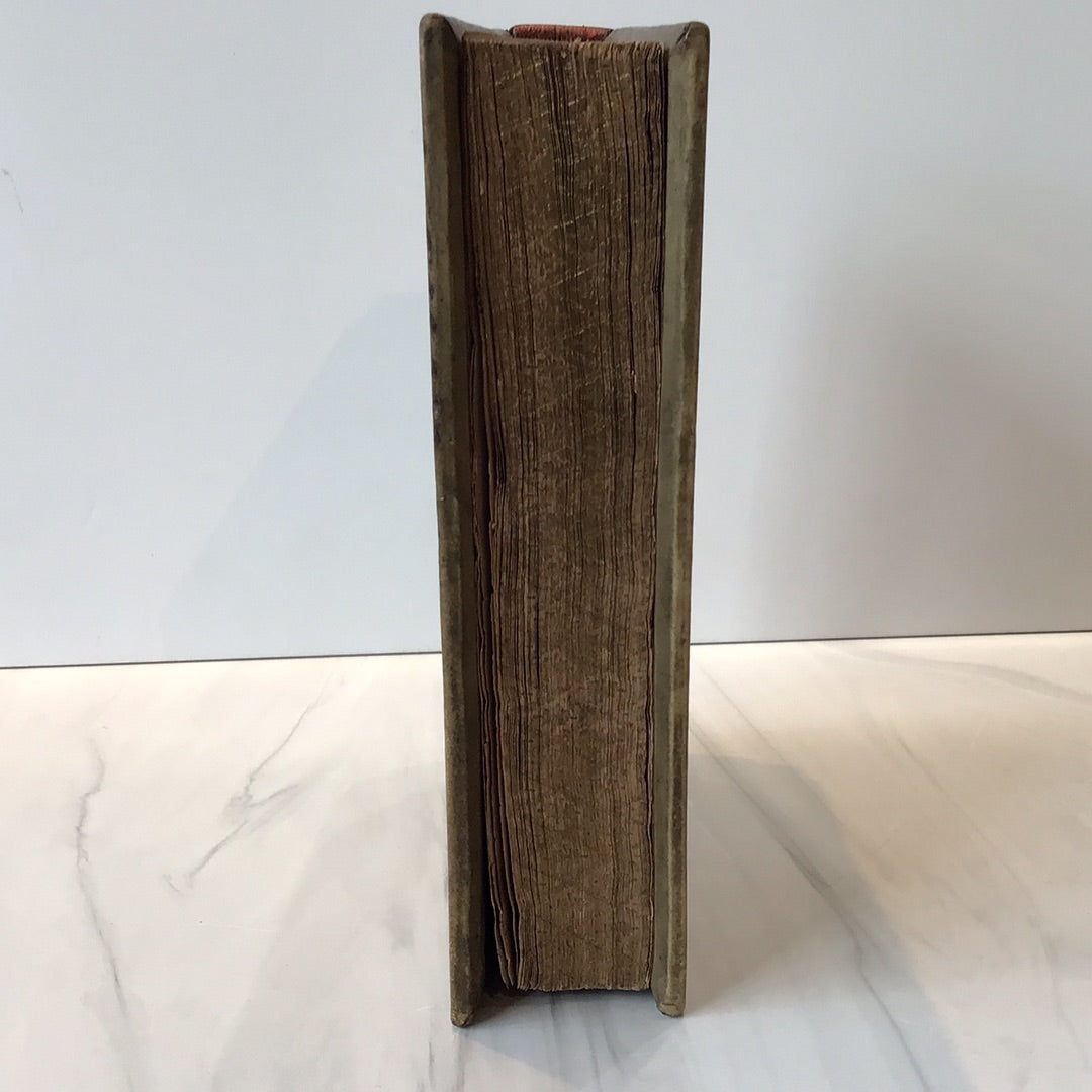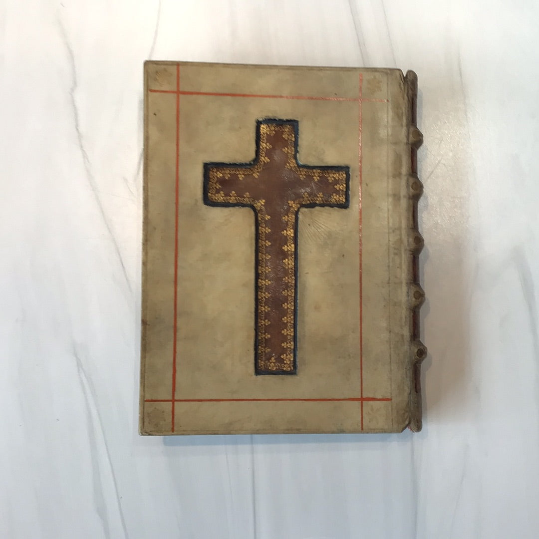 Attractively bound in nineteenth century vellum, red morocco inset cross tooled in gilt.Spine with five raised bands, marbled endpapers, gauffred edges.Some slight rubbing and marking and three tiny worm tracks to upper joints. Internally very good but with some browning.