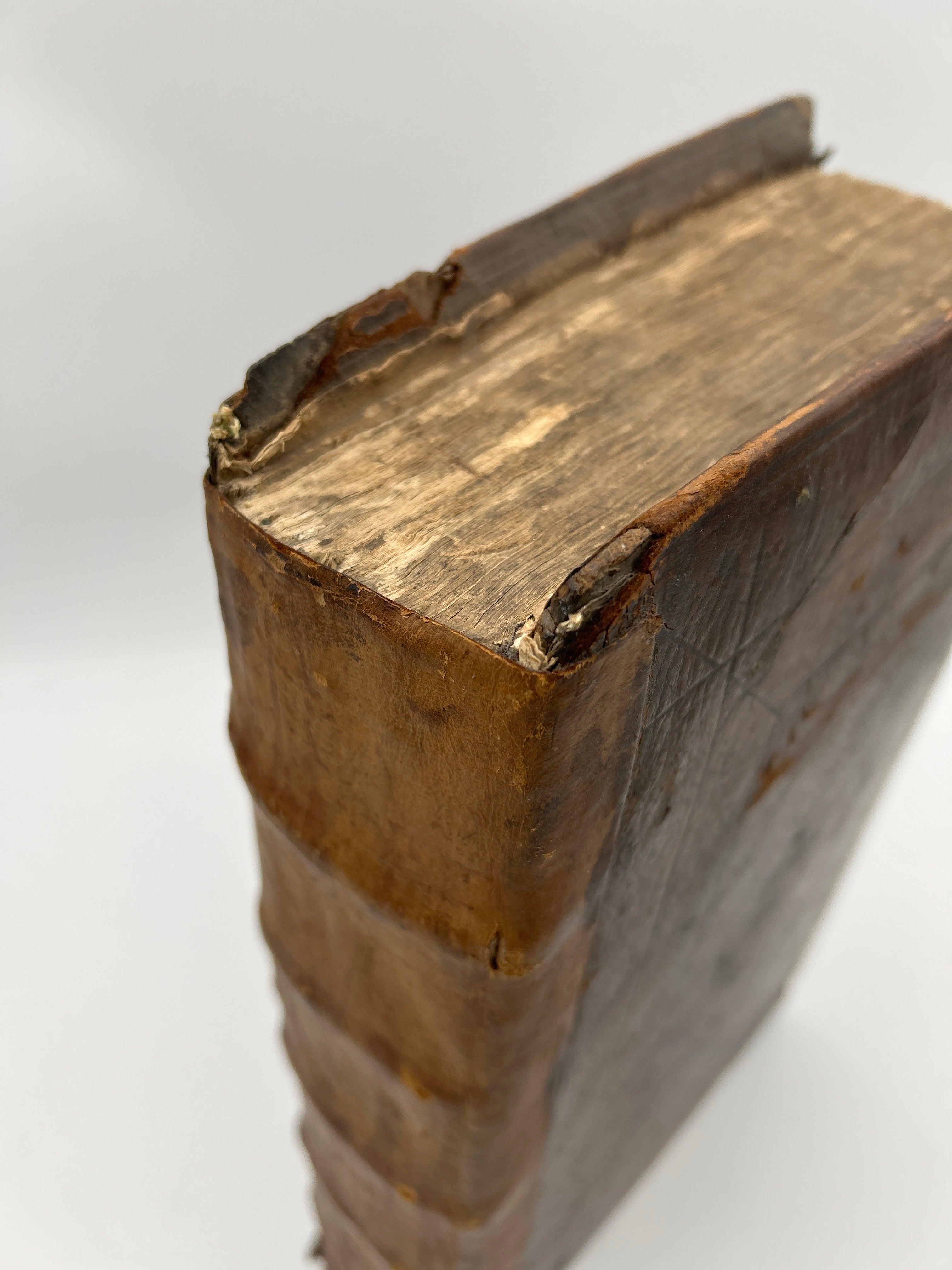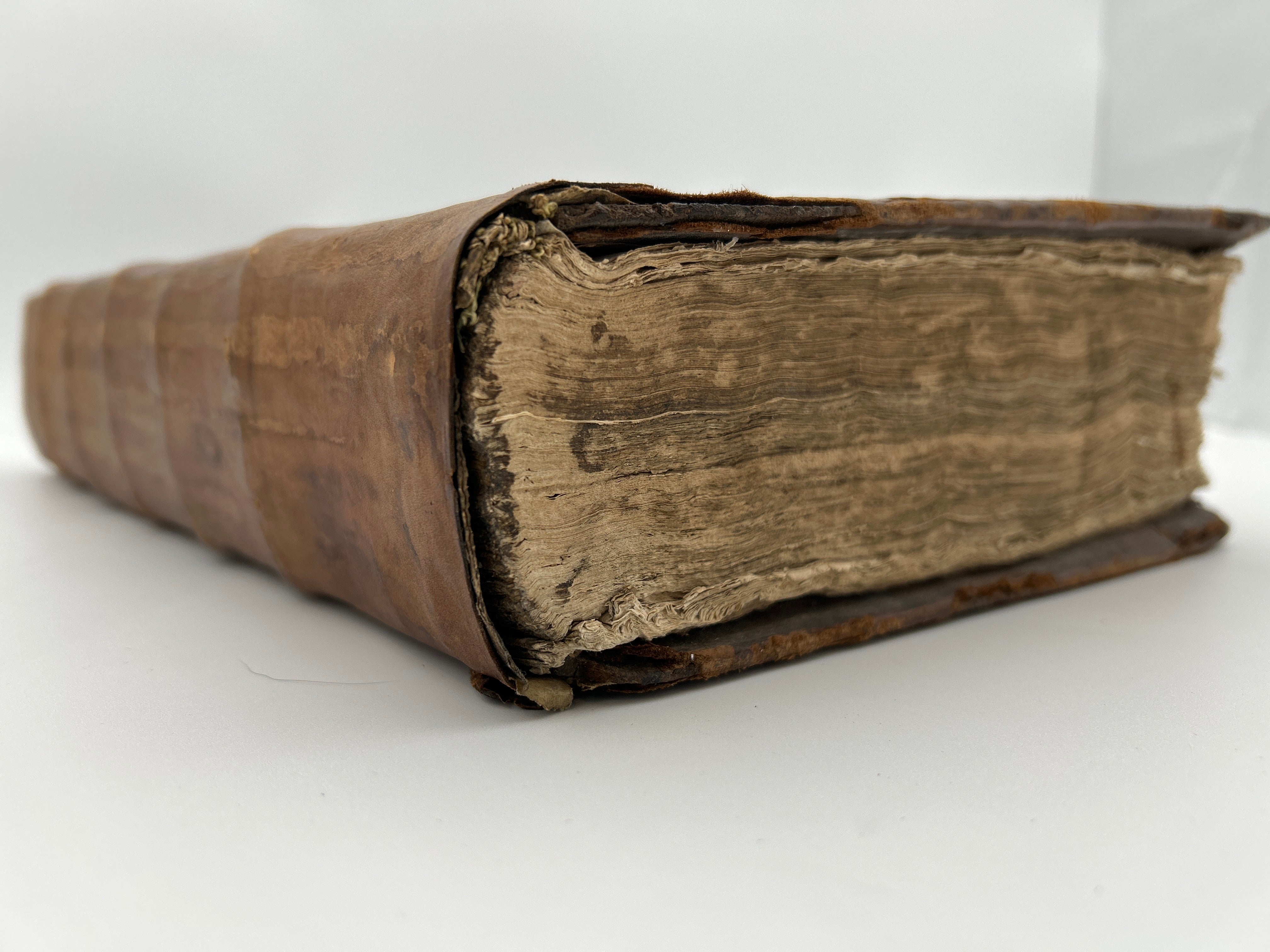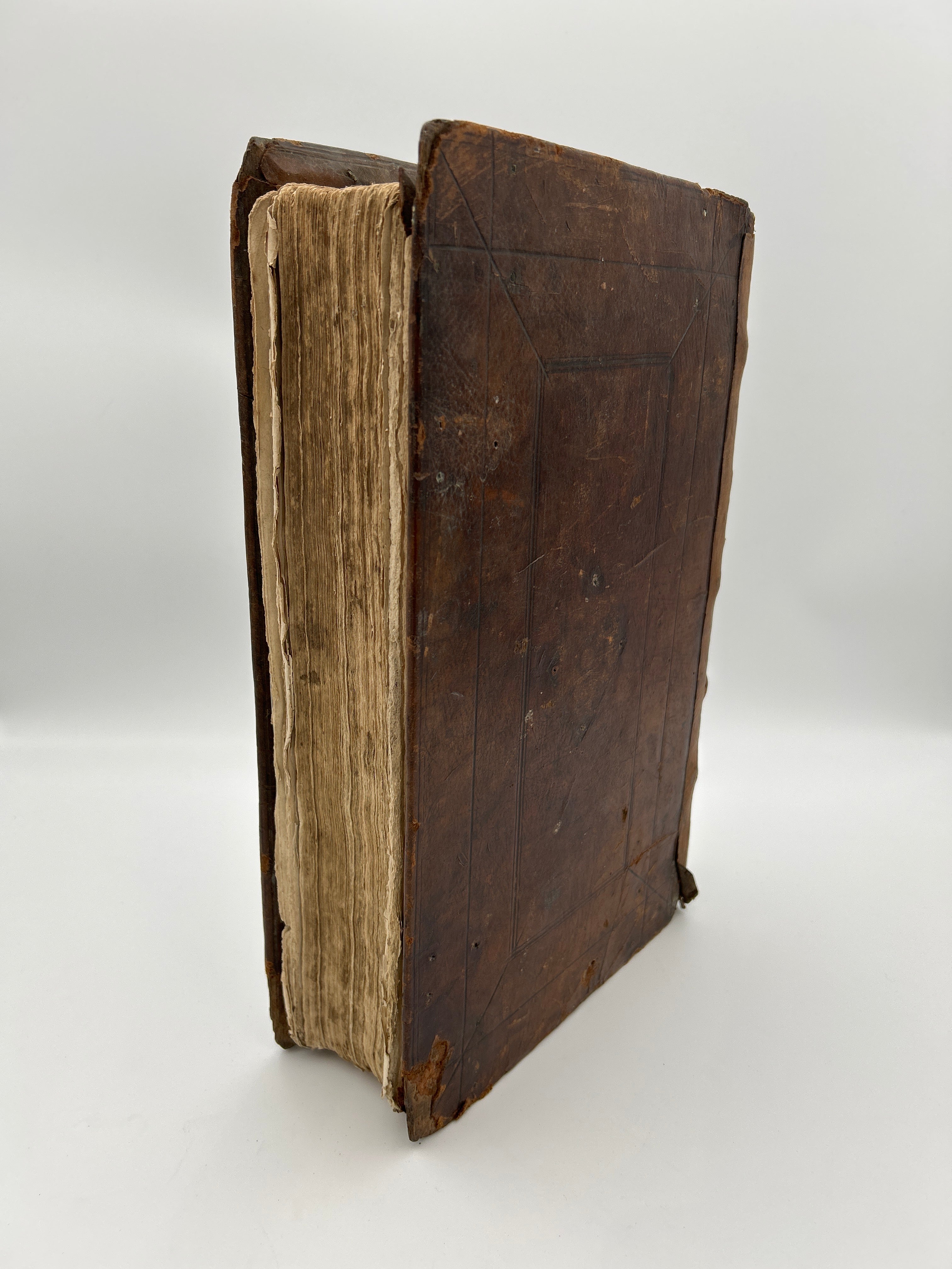 Large brown binding, five raised bands on spine, foxing on inside pages, good condition.