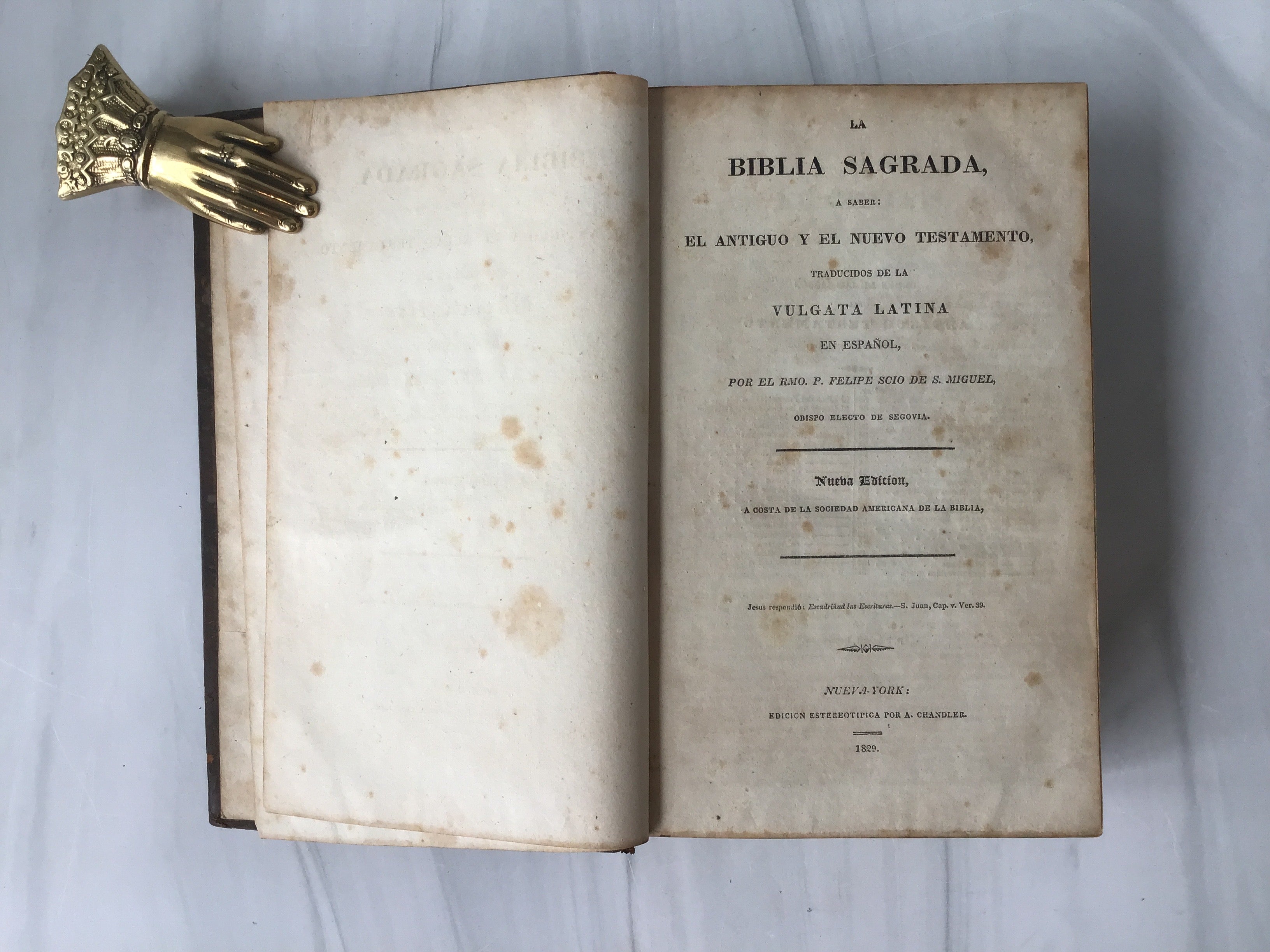 The 1829 edition of "La Biblia Sagrada" is a significant translation of the Bible into Spanish. This work was instrumental in making the scriptures accessible to Spanish-speaking populations. It was one of the early translations aimed at providing a more accurate and understandable text for laypeople, reflecting the broader 19th-century movement towards making religious texts available in vernacular languages. This edition played a crucial role in the religious and cultural life of Spanish-speaking communities, helping to spread biblical literacy and influence.