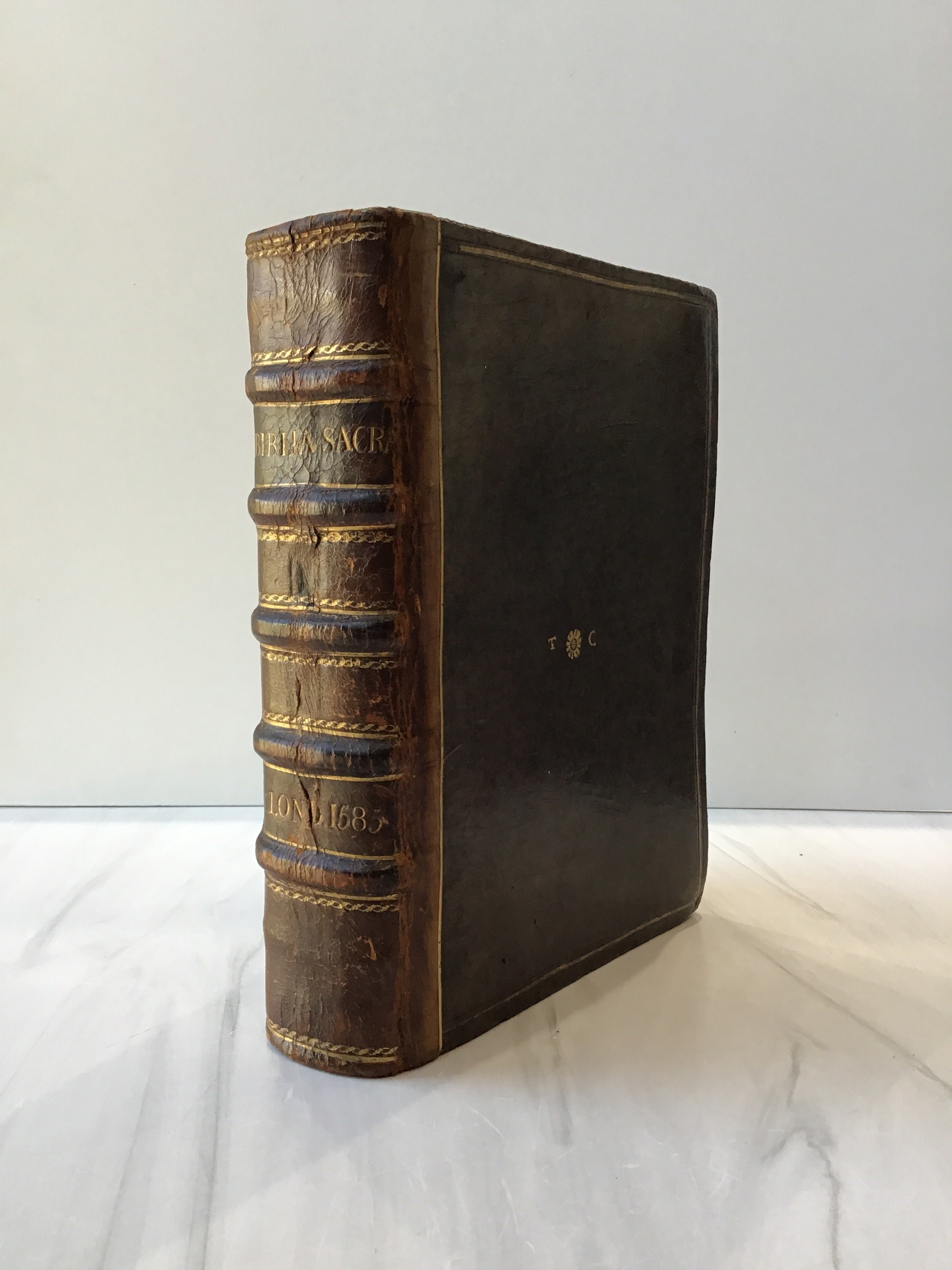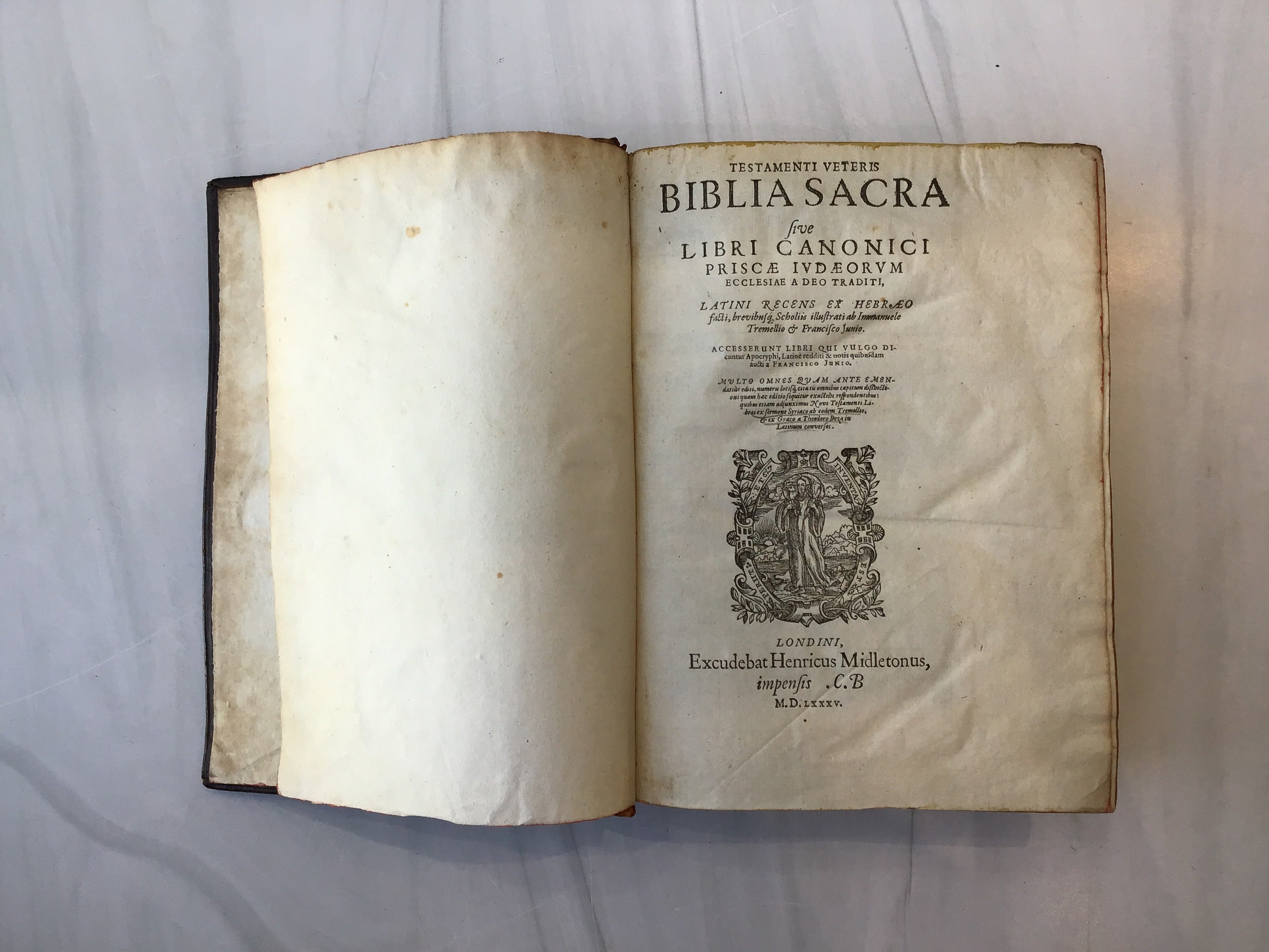 The Biblia Sacra of 1585 is a Latin edition of the Holy Scriptures (Protestant Bible with Geneva notes) representing the scholarly and devotional heart of Renaissance Christianity. Printed during a time when Latin remained the universal language of the Church and learned study, this Bible reflects both the humanist precision of the era and the enduring reverence for sacred text. Many editions from this period were influenced by the Latin Vulgate—St. Jerome’s authoritative translation—often enriched with detailed commentary, ornate typefaces, and intricate woodcut illustrations. The 1585 Biblia Sacra exemplifies the craftsmanship and faith of its time, standing as both a work of theology and of art, connecting early modern readers to centuries of biblical trradition.