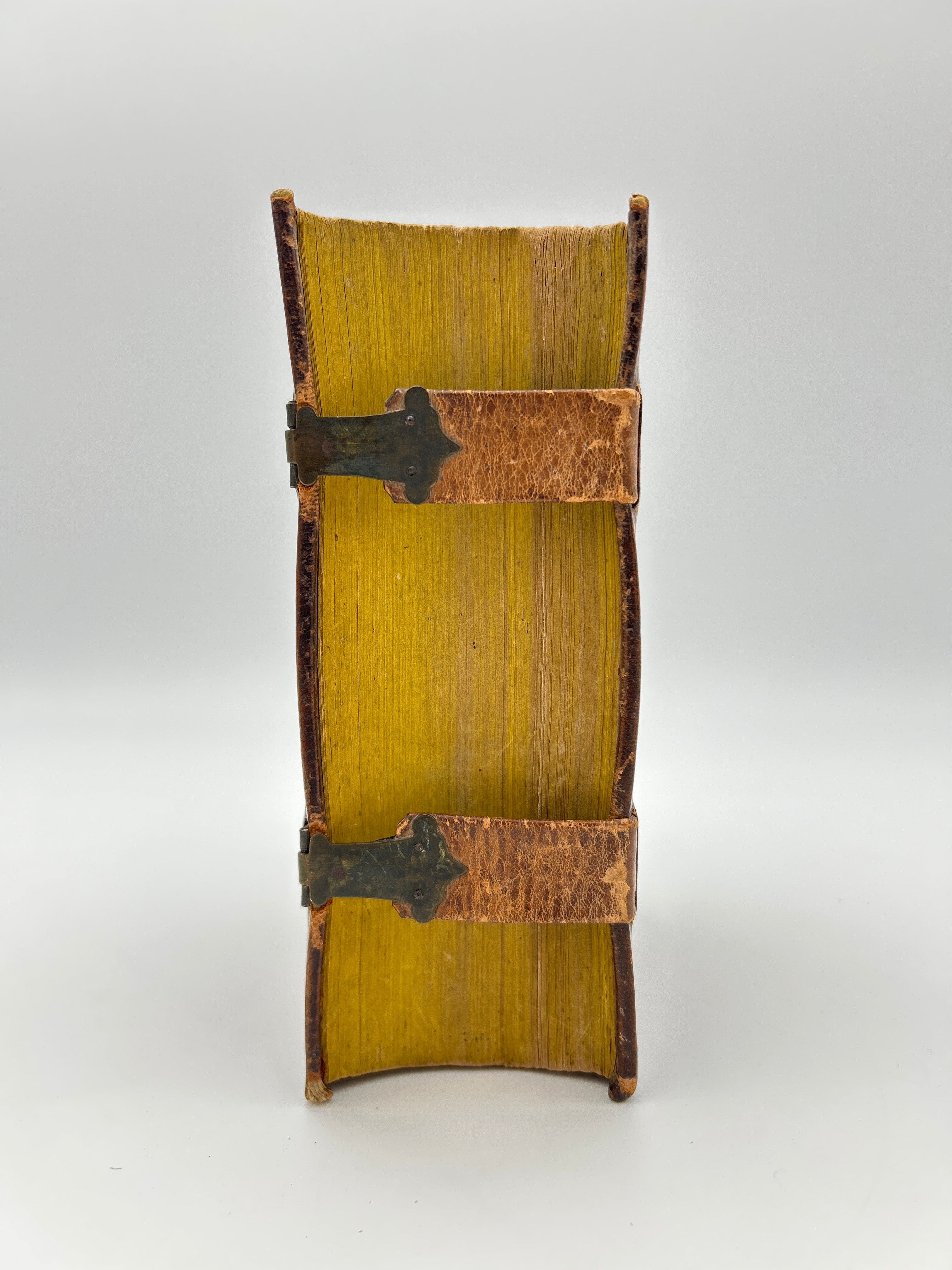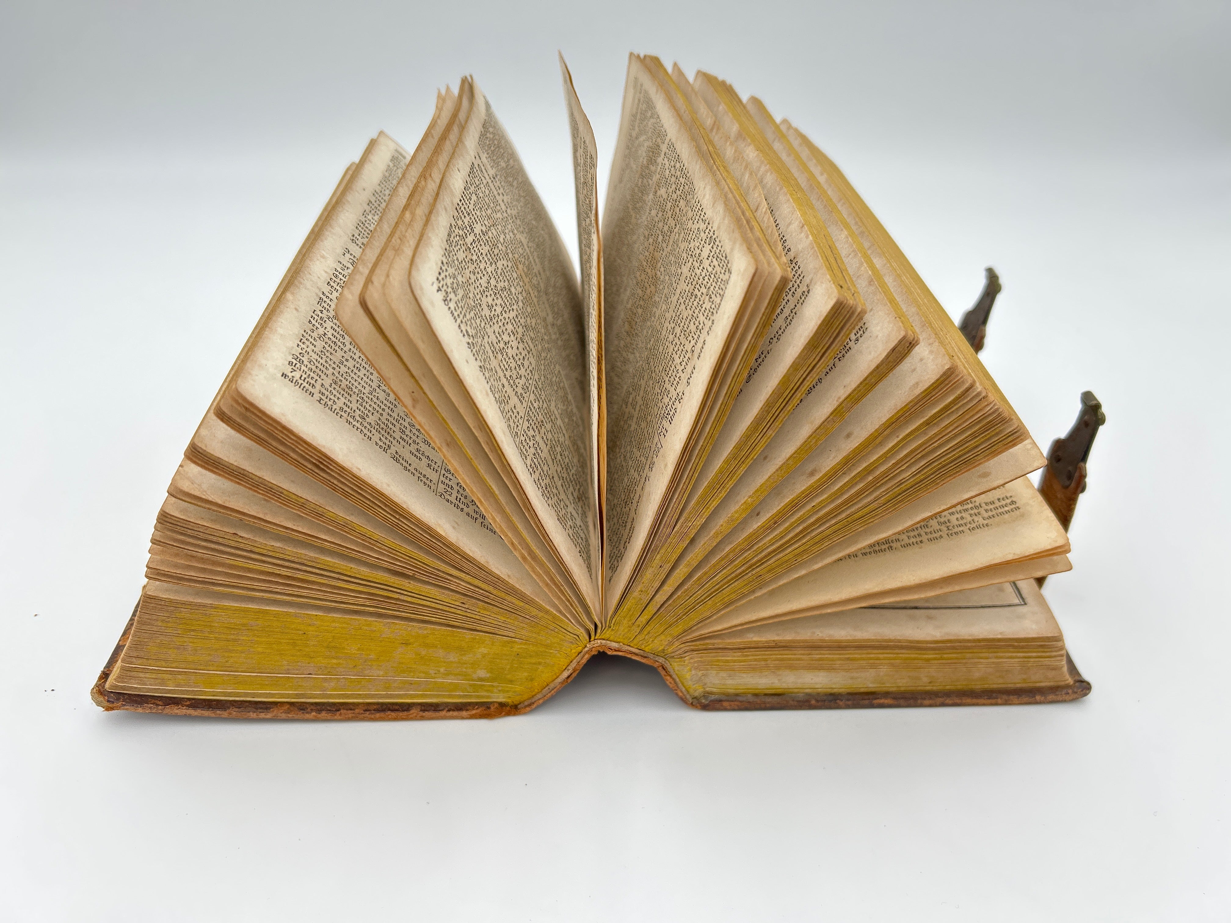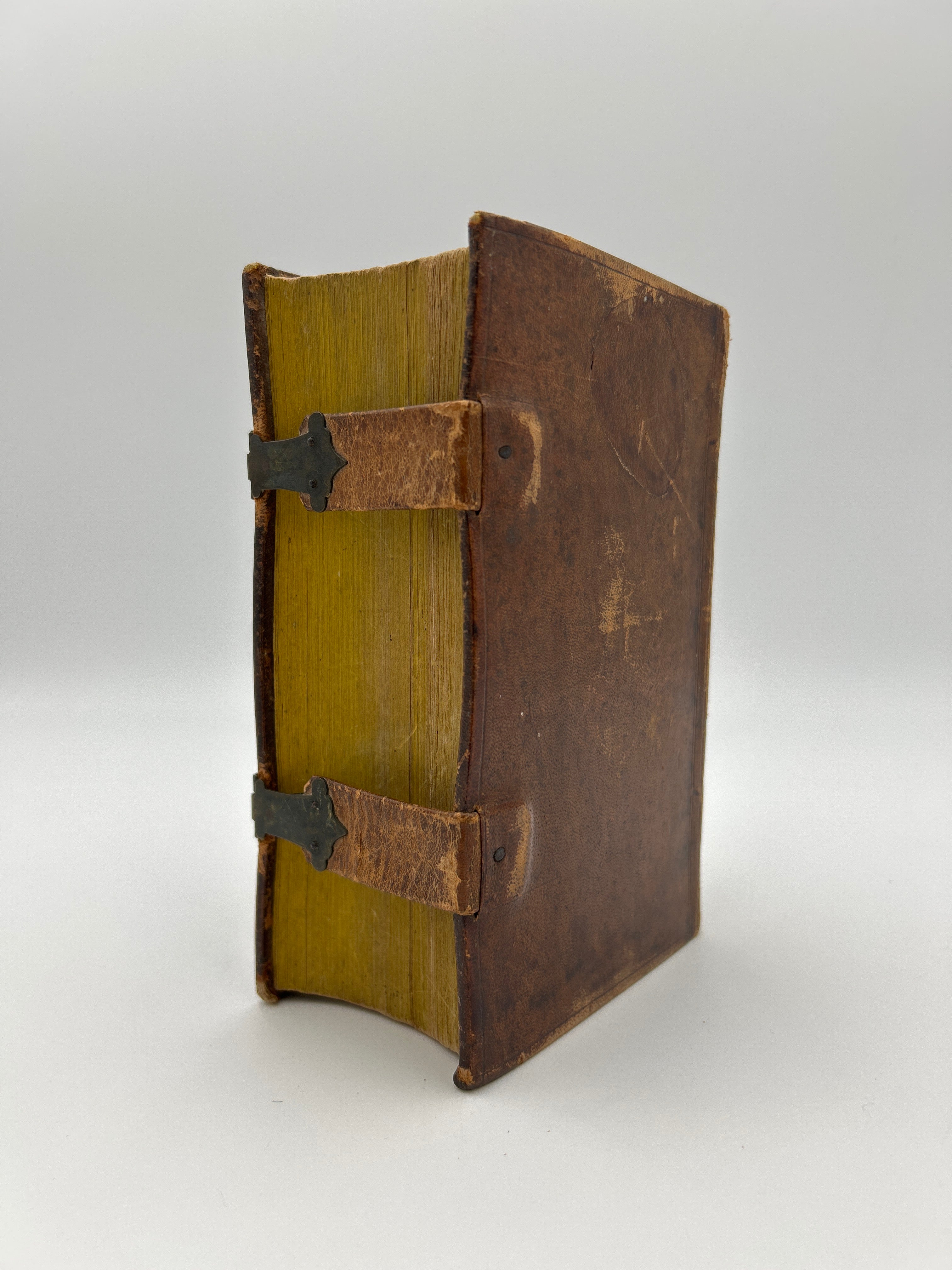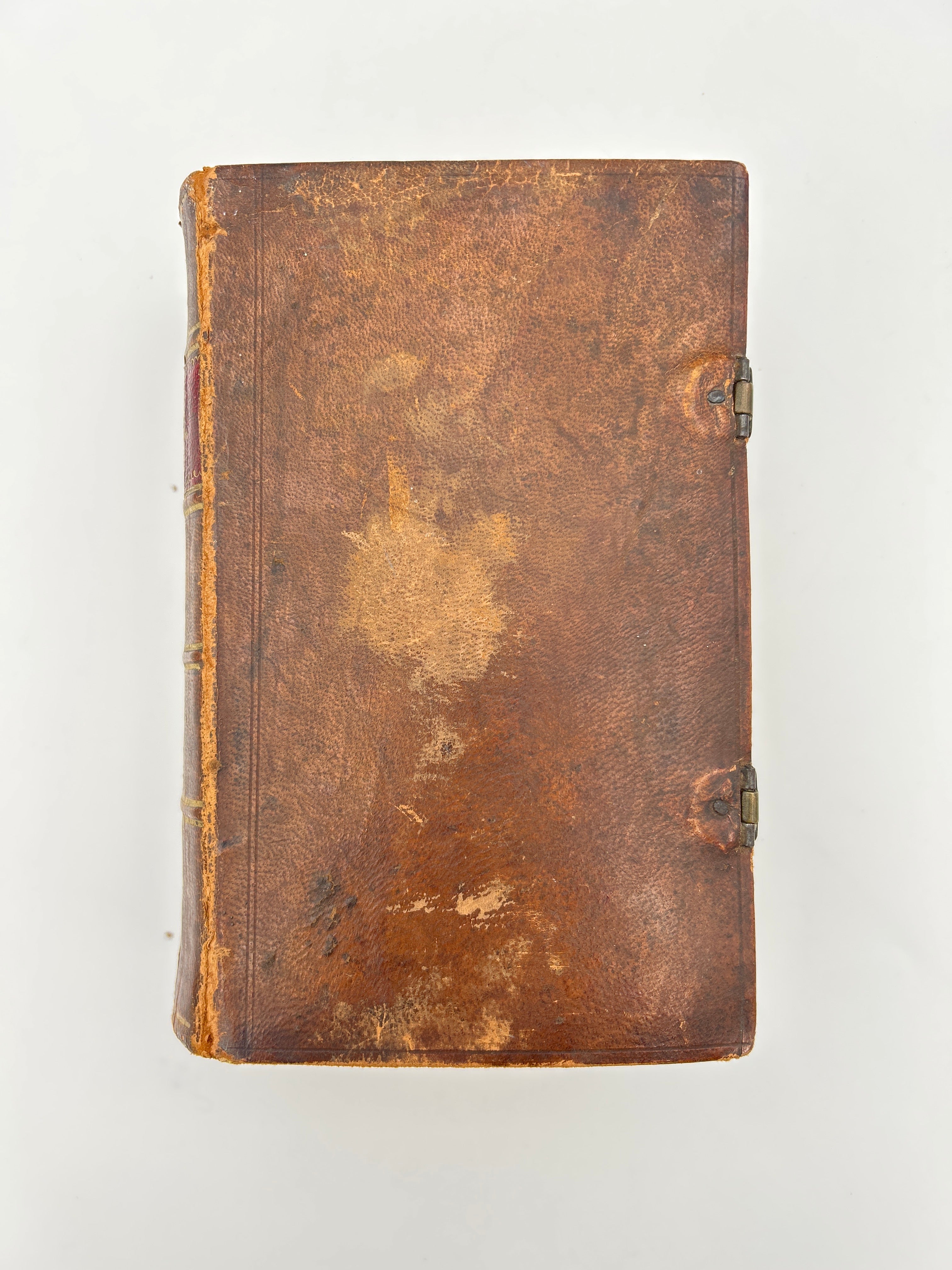 Brown leather boards with four raised bands and gilt lettering on the a leather label. Two leather and brass clasps on fore edge. Scuffing to the boards and spine with a larger section of discoloration in the center of the upper board. Wearing to the joint and creasing to the spine. Rubbing to the extremities and bumped corners. Some foxing throughout. Illustrations throughout. Fine condition overall.