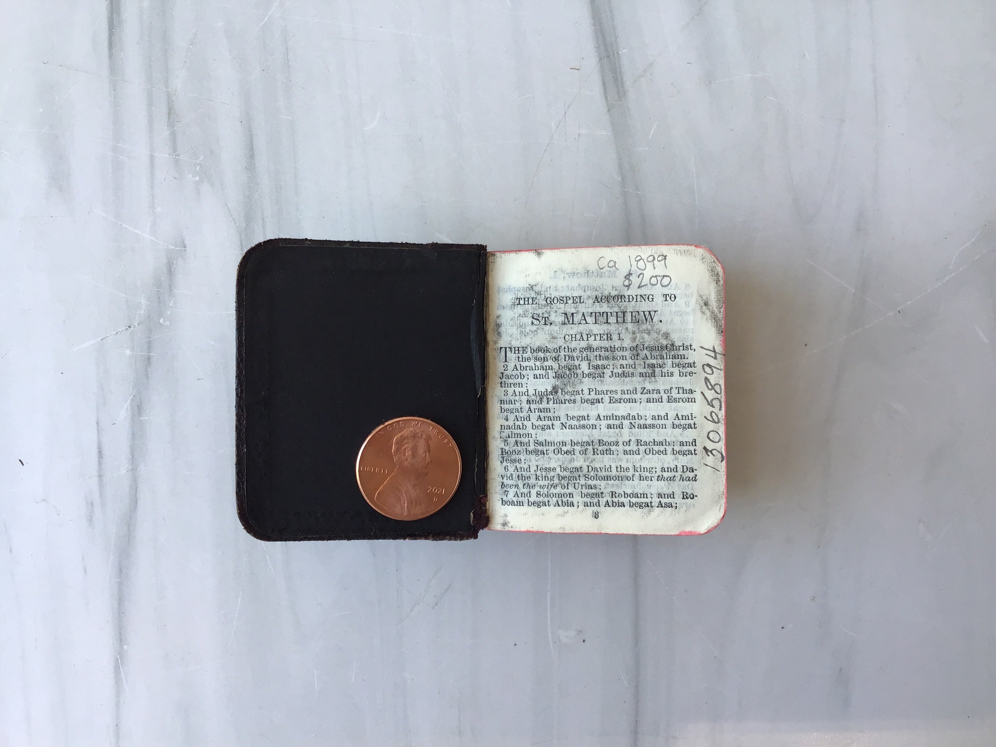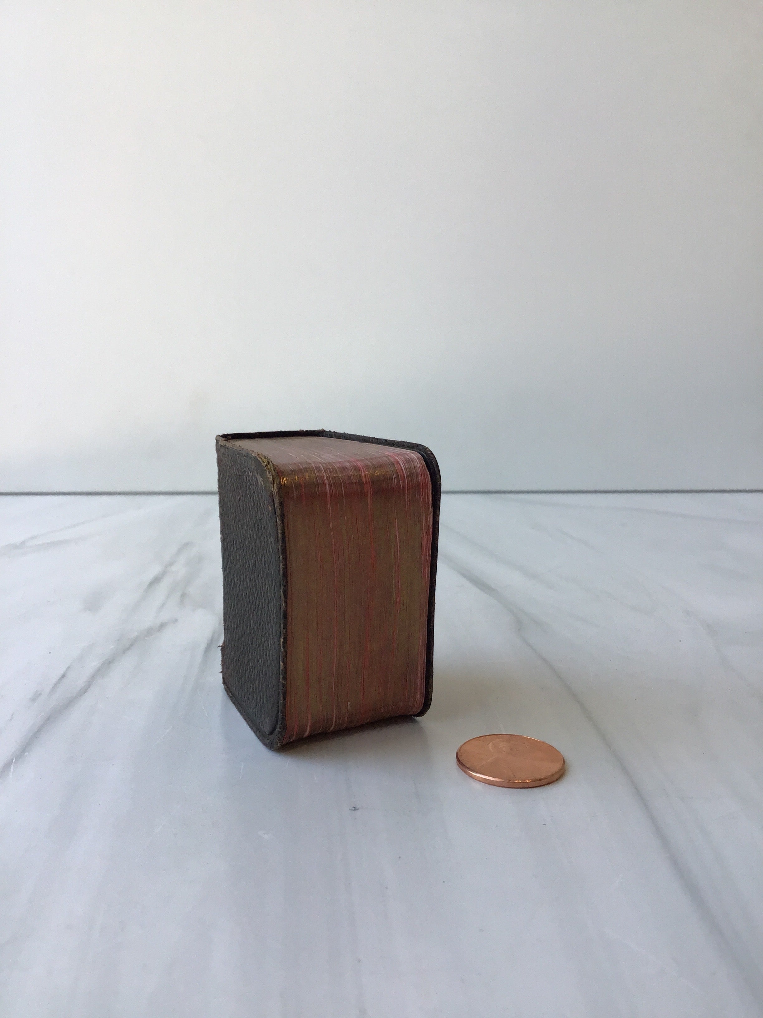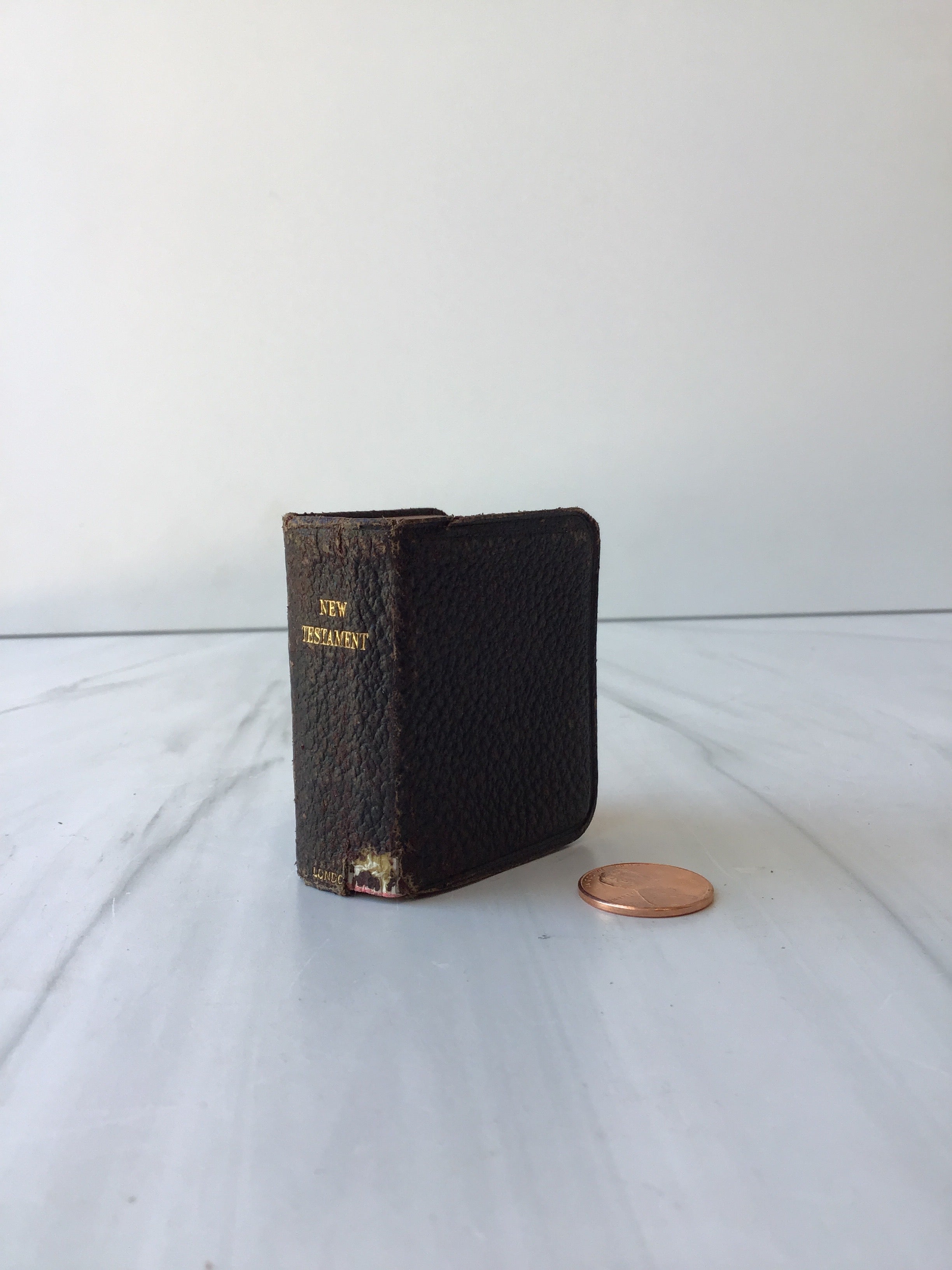 The 1899 Miniature New Testament is a small-scale version of the New Testament scriptures, produced in the year 1899. Crafted with meticulous detail and precision, it embodies the essence of religious devotion and historical craftsmanship of its era. Despite its diminutive size, its pages contain the profound teachings and narratives of Christianity, cherished by believers worldwide. This miniature edition likely served as a cherished keepsake or a portable source of spiritual guidance for individuals during the late 19th century and beyond, reflecting the enduring significance of faith in everyday life.