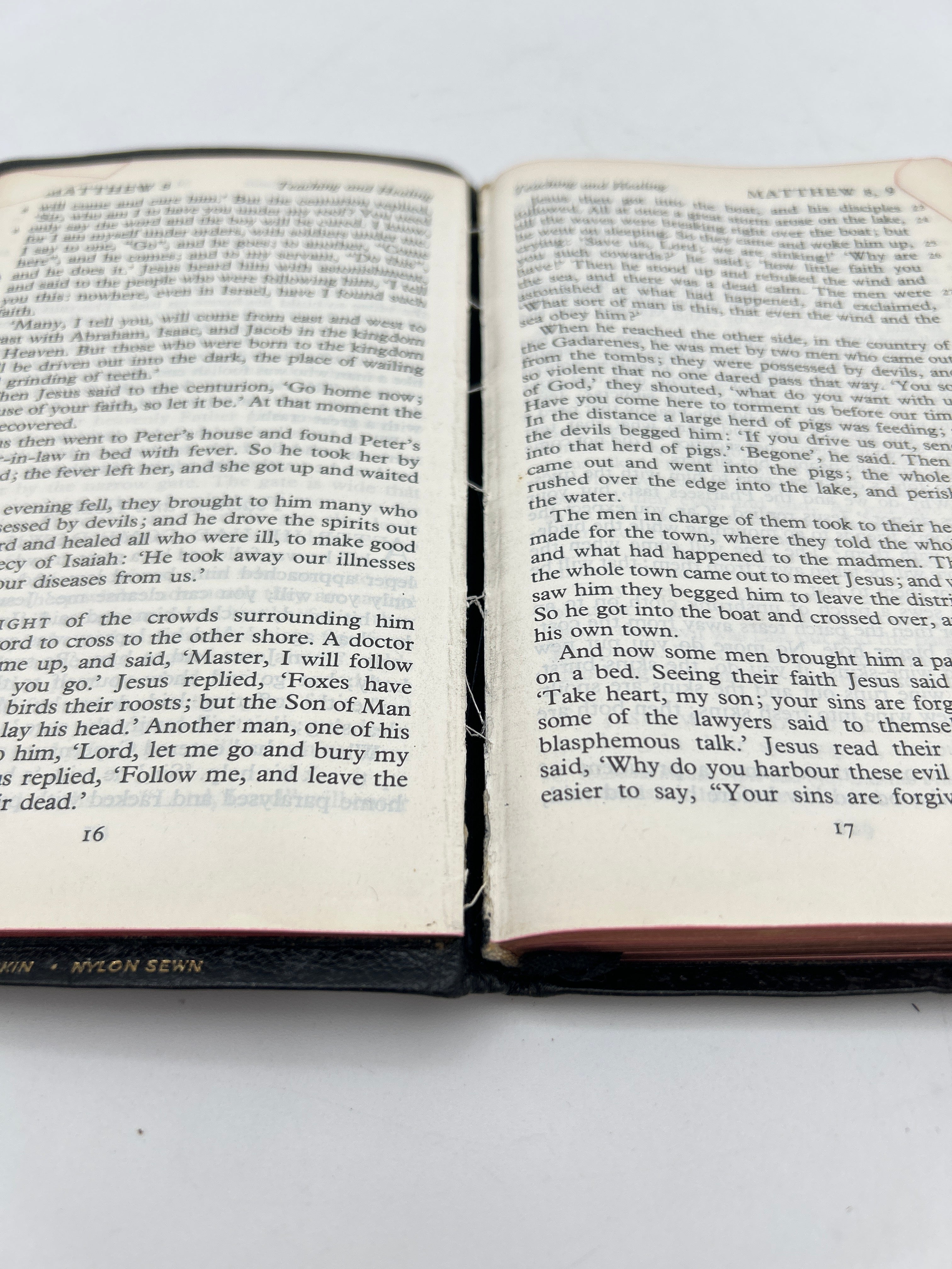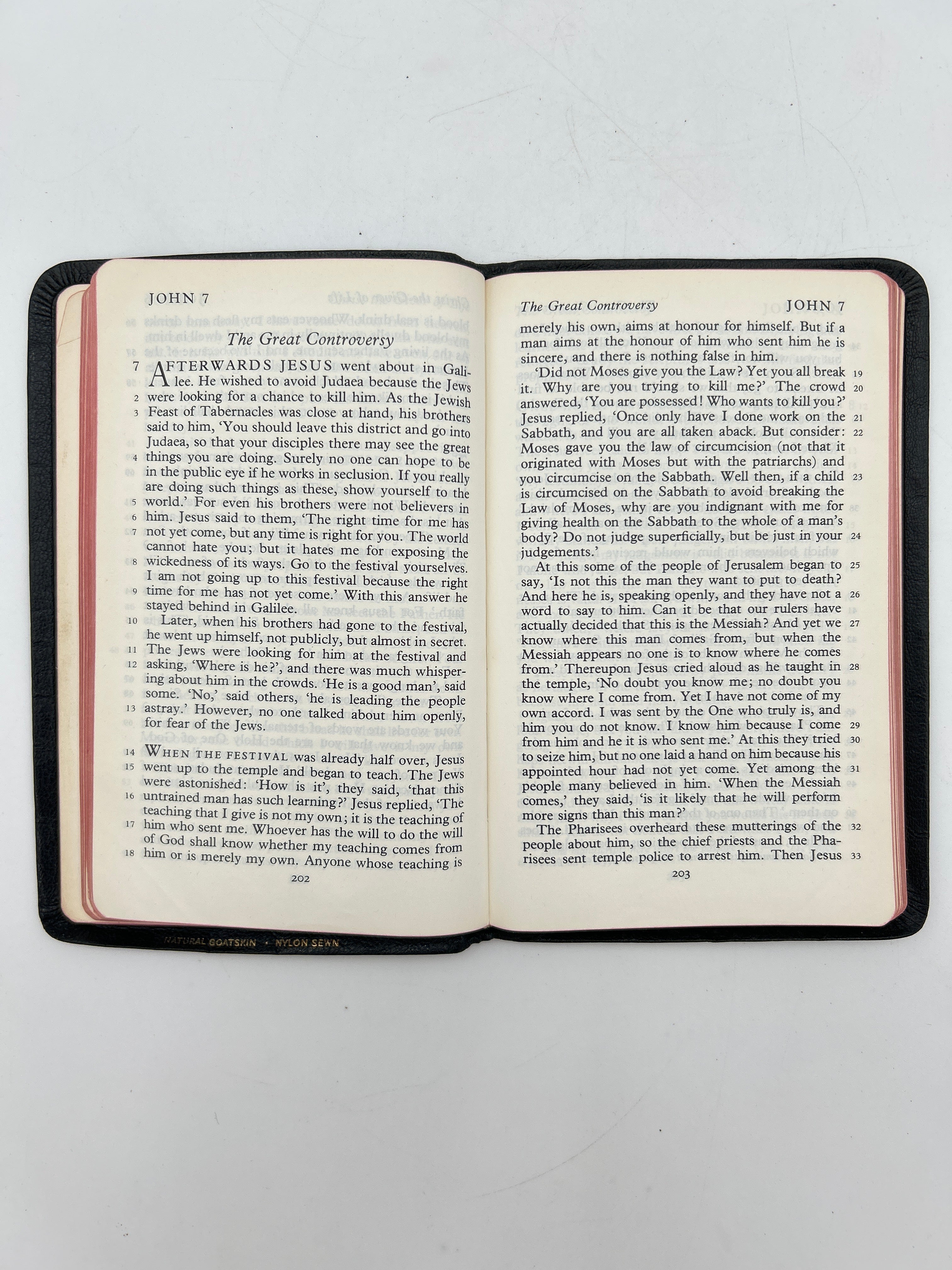 Soft black goatskin leather binding with gilt lettering to spine. Red/gilt edges. India paper. Few pages folded on edges. Fine condition overall.