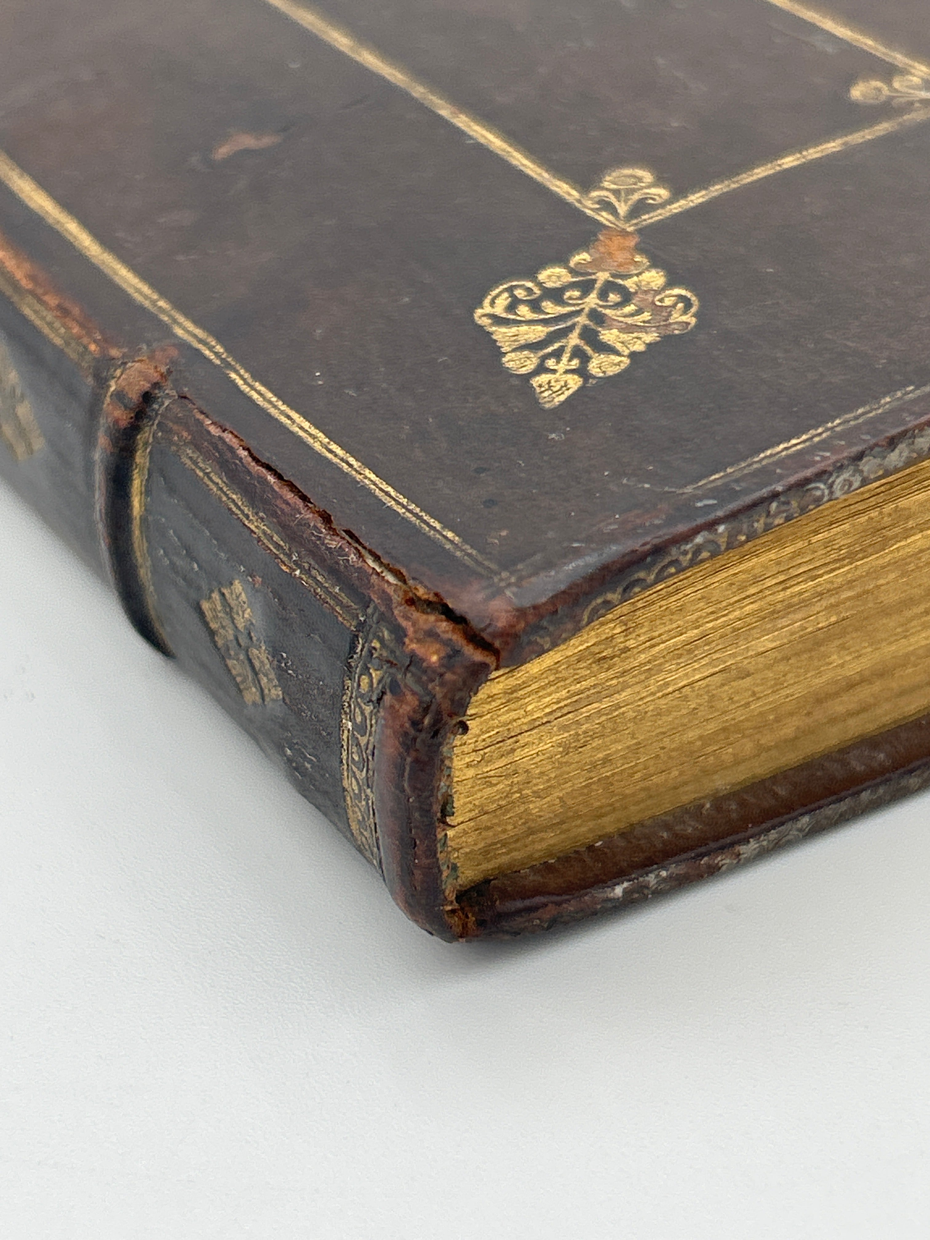 Contemporary paneled calf leather with leaf motif corner pieces. Four raised bands to spine with gilt decorations and lettering. Second compartment with red Morocco label. All edges gilt and marbled endpapers. Cornwall House stamp on initial blank leaf. Upper joint split at head and foot. Two small patches of scuffing to covers. Classical Latin translation. Very good condition exterior and excellent interior.