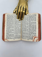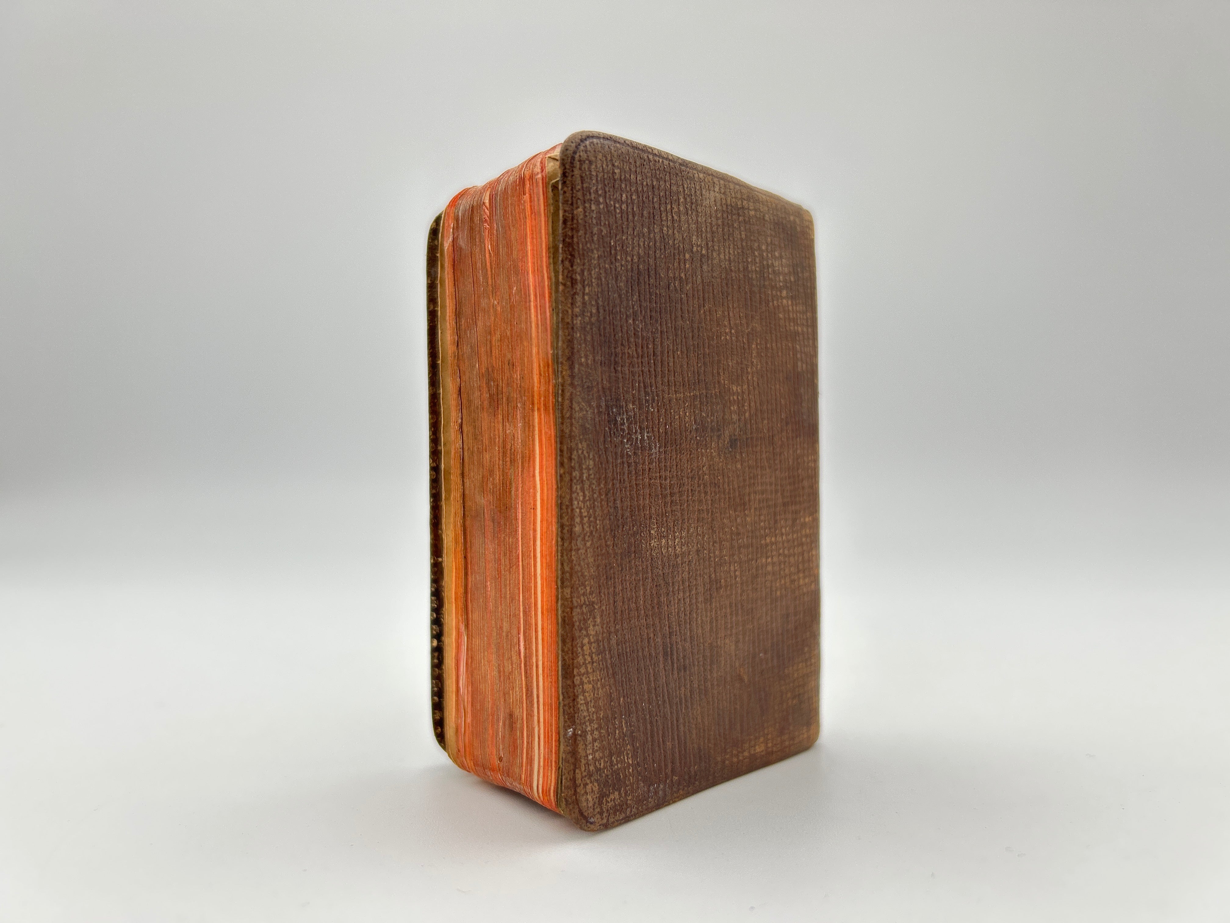 Brown leather binding with gilt lettering on the upper right hand corner of the upper board and spine. Gilt turn ins. Faded gilt edges. Some staining to the binding and rubbing to the extremities. Folding to the upper or lower corner of pages 193 through 304. Upper corner folded pages 549 through 596. Fully intact. Very good condition overall.