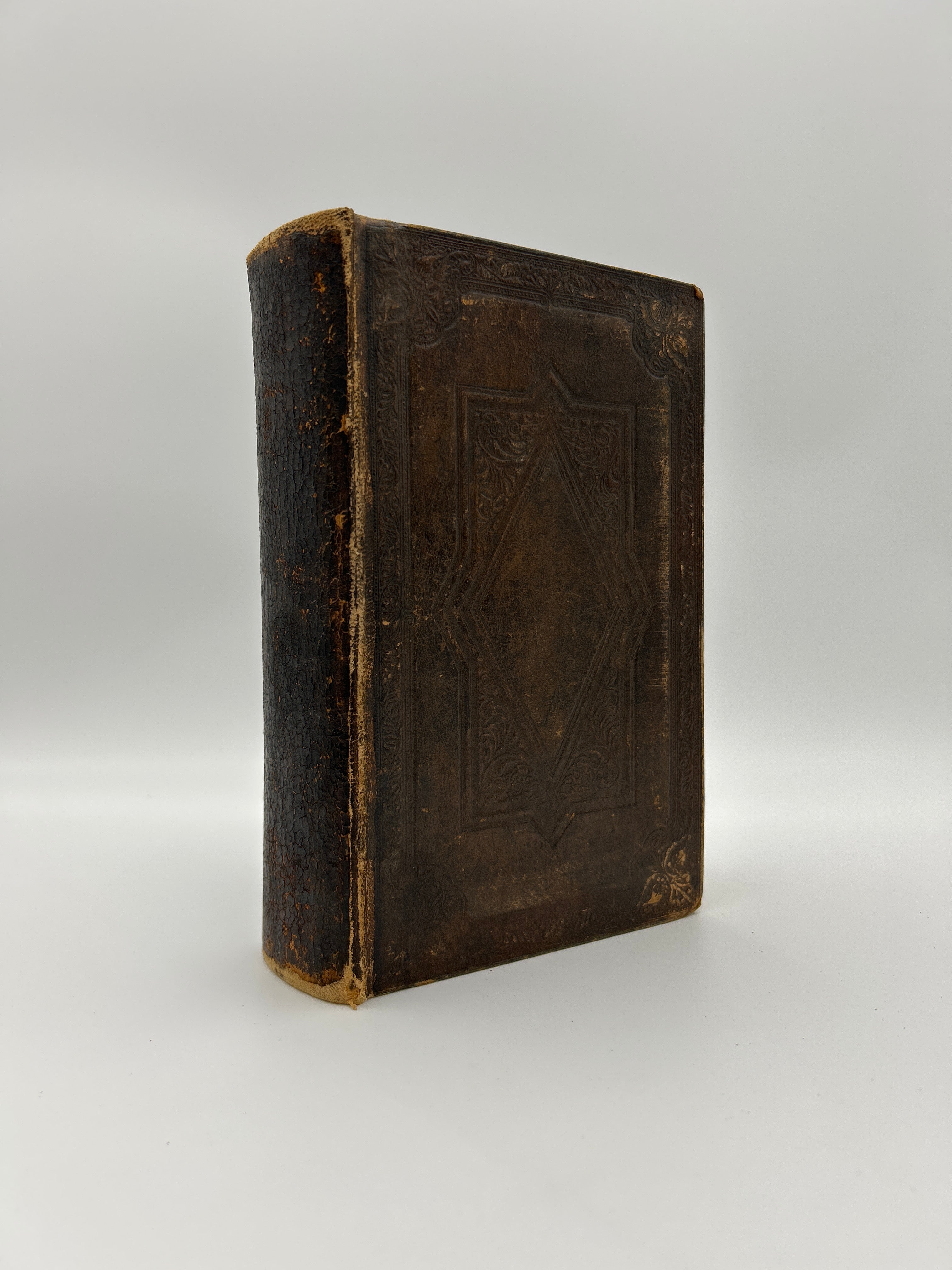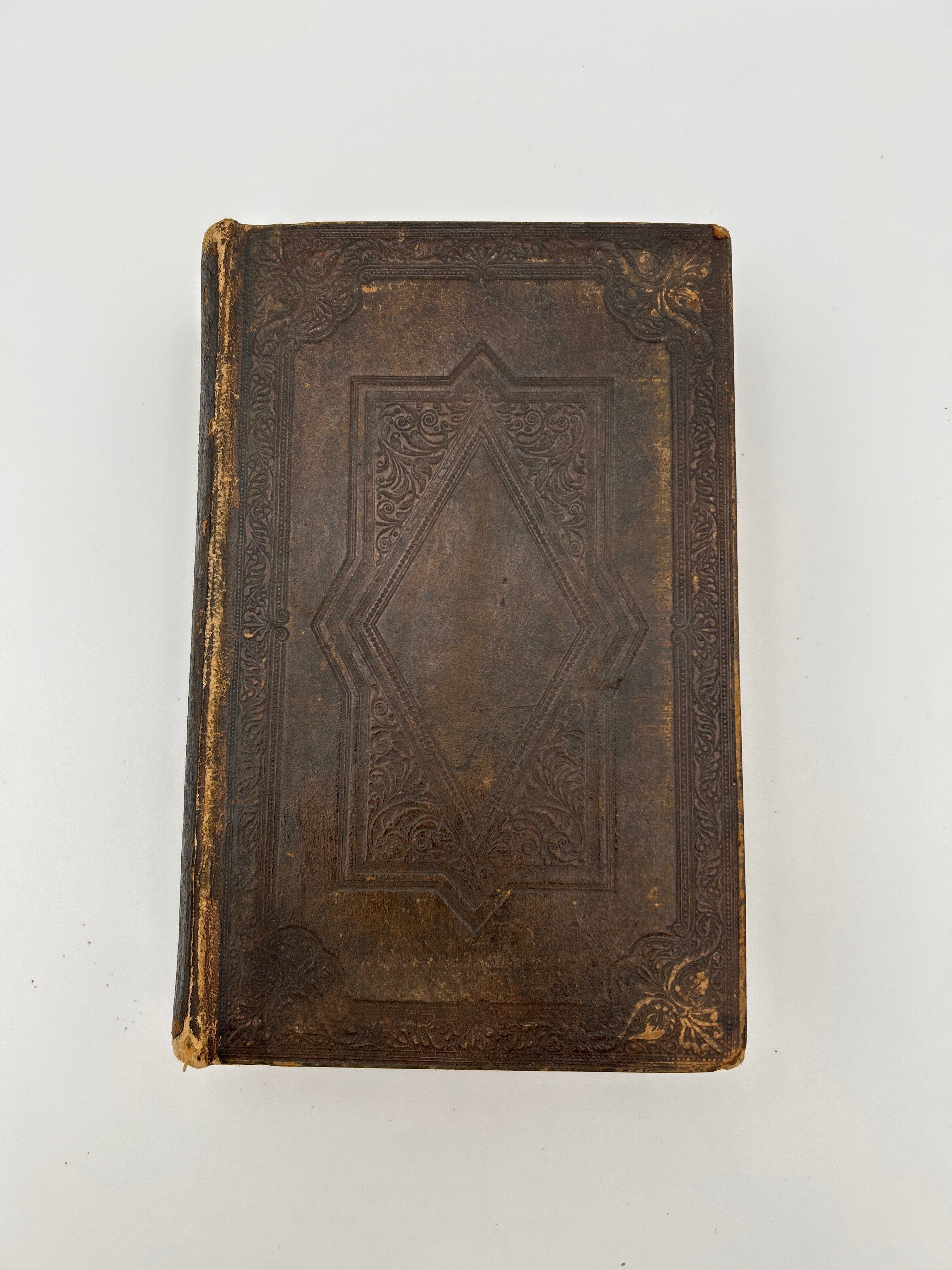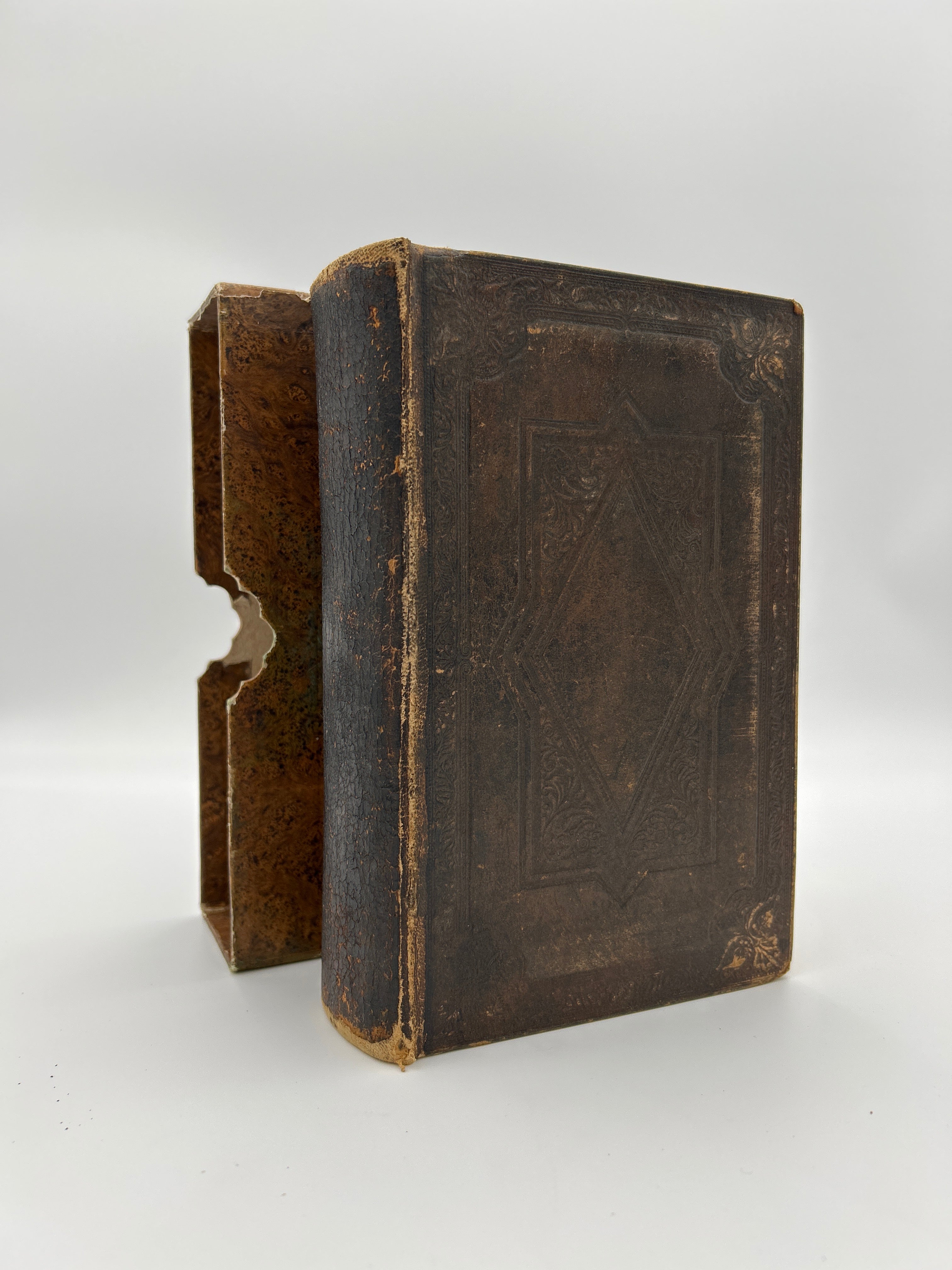 Brown leather bound , beautiful embossing on front and back, rubbing on spine. Sleeve intact.