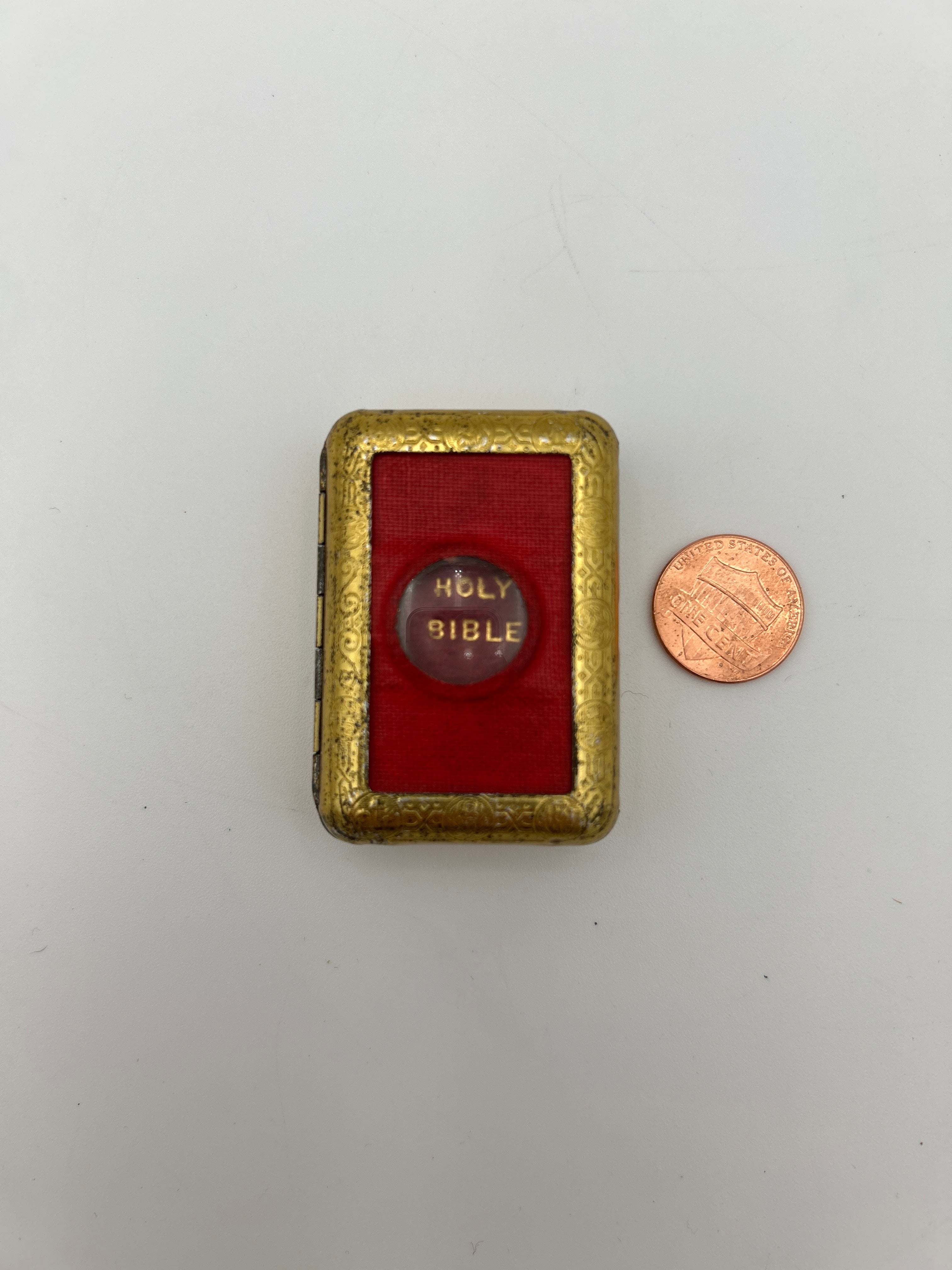 5j 1896 Thumb Bible in metal enclosed case with magnifying glass