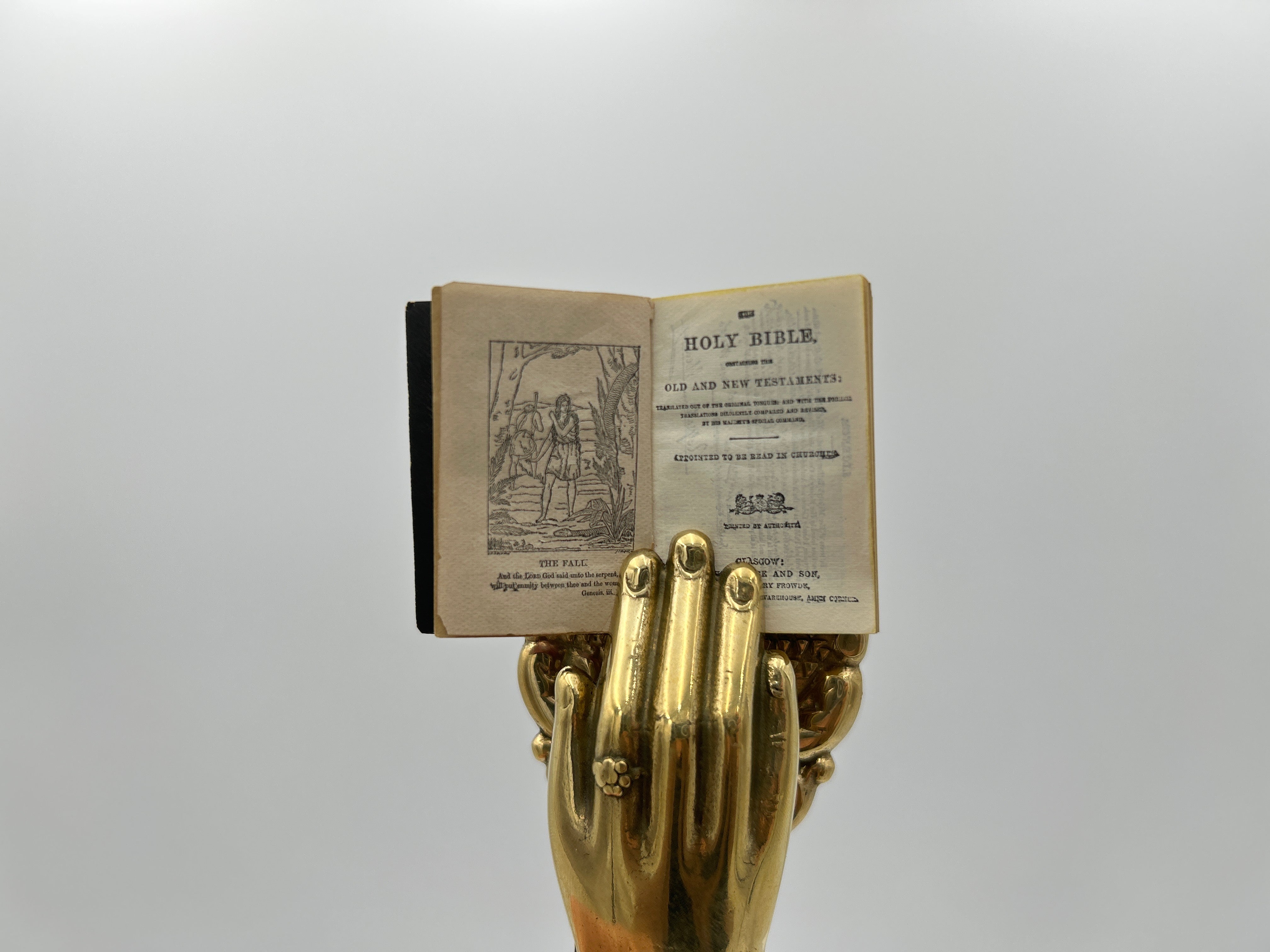Thumb Bibles are compact editions of the Bible designed to be small enough to fit comfortably in the palm of one's hand, often no larger than a thumb. These miniature Bibles typically feature tiny print and thin pages, yet they contain the complete text of the Bible. Thumb Bibles are convenient for individuals who want to carry the sacred scriptures with them wherever they go, offering a portable and easily accessible version of religious texts. Despite their size, these diminutive Bibles play a significant role in providing spiritual guidance and comfort to those who seek a compact and portable way to engage with their faith.