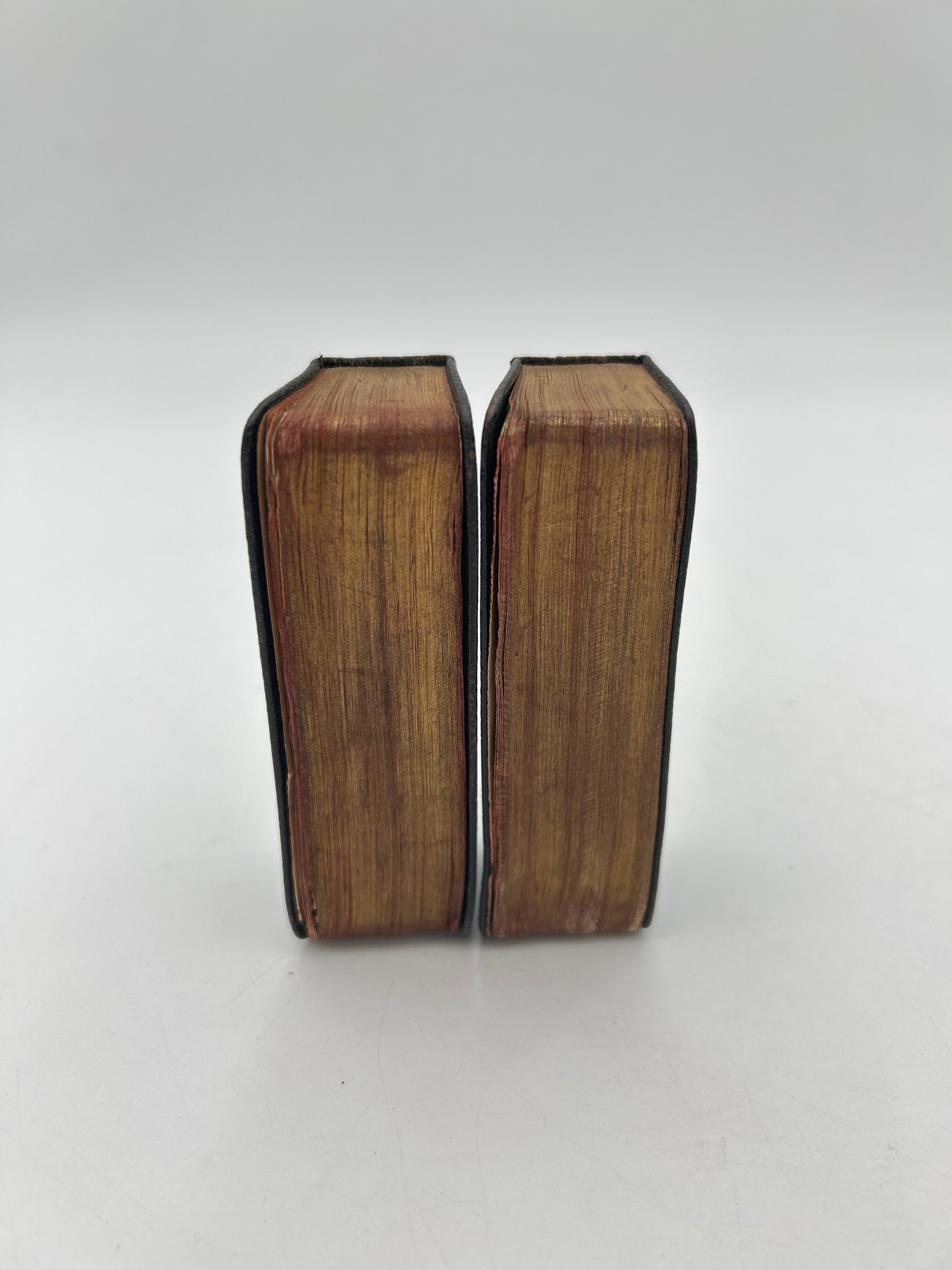 Pebbled soft leather binding with gilt lettering to upper boards and spine. One star on volume one indicating part one, and two on volume two indicating part two. All edges gilt.  Some fading to gilt and general fading to leather. Wear to upper spine of volume one. Fully intact. Fine condition overall.