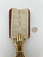 The finger Bible is a miniature version of the Bible, often created as a novelty or devotional item. Words measuring only a few centimeters in size, these tiny books sometimes contain the full text of the Bible or select passages, printed on extremely thin, delicate pages. The earliest examples date back to the 19th century, made possible by advances in printing technology. While not typically intended for regular reading due to their size, finger Bibles have been used as travel companions, symbolic gifts, and collector’s items, reflecting both craftsmanship and the desire to carry scripture in a compact form.