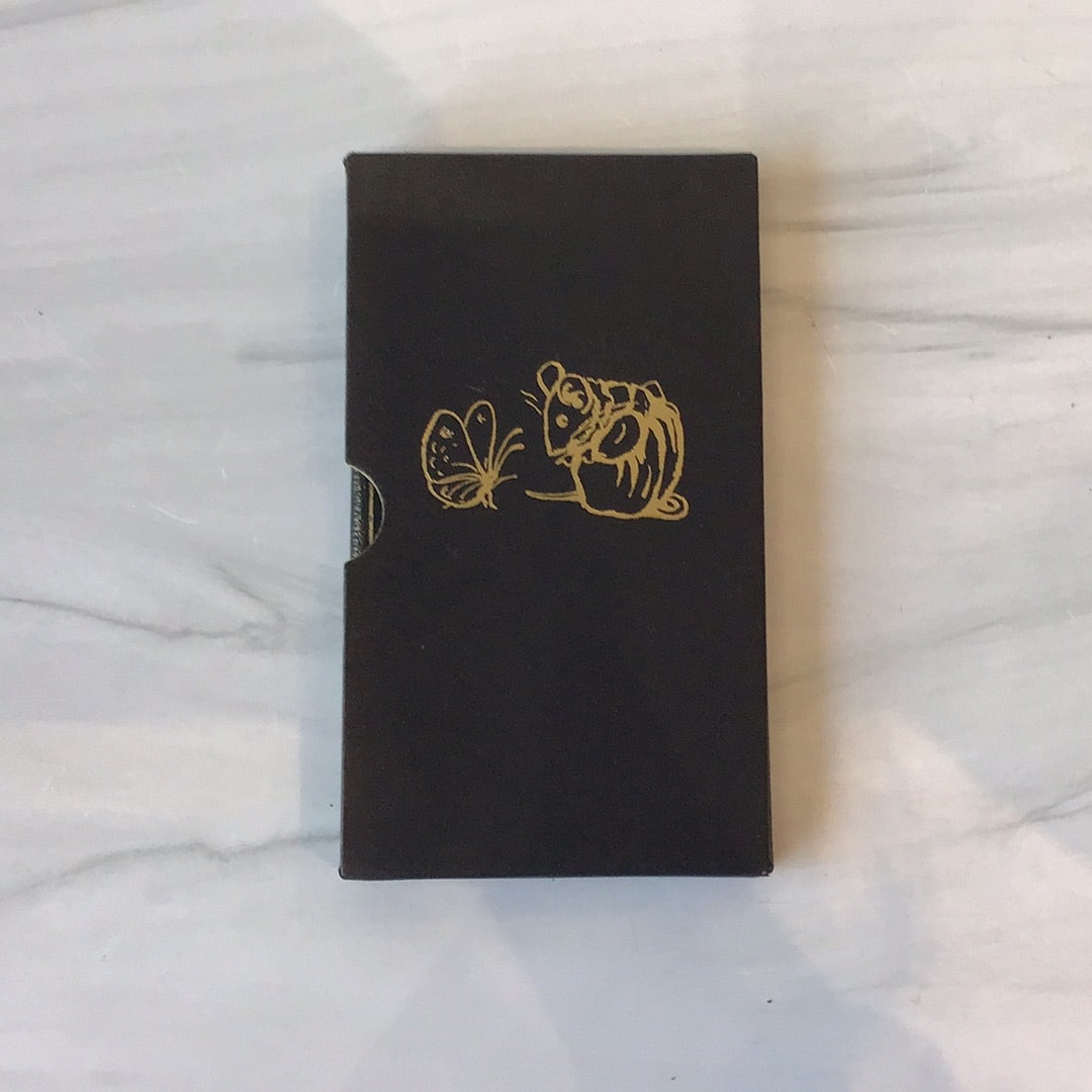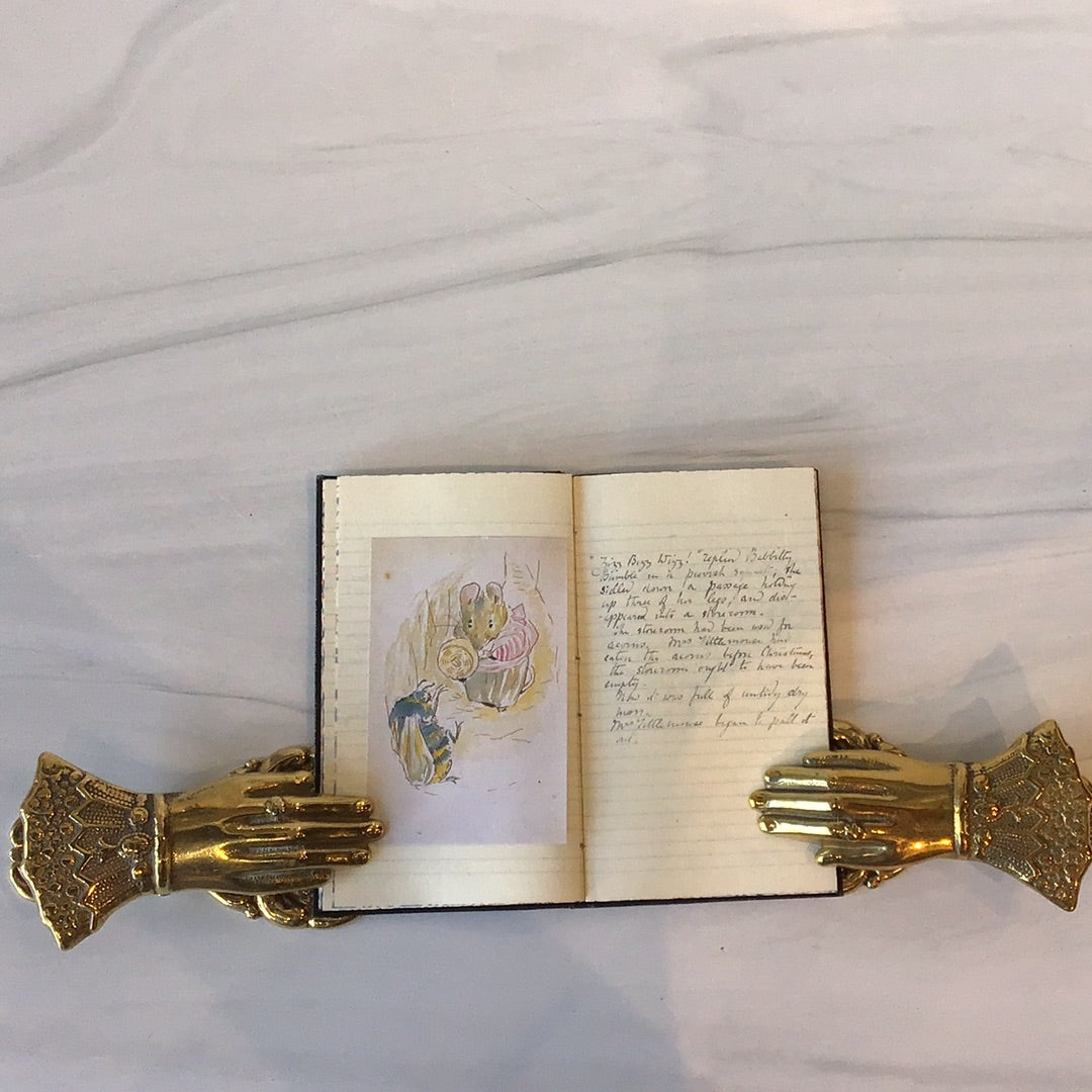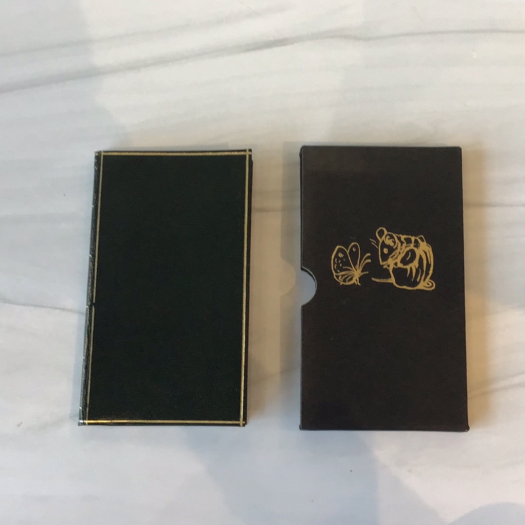 Reproduction of the first manuscript draft of the tale, presented to Nellie Warne as a 1910 New Year's gift, dark green binding with gold tooling, excellent condition in a black cover box with mouse and butterfly on the front.