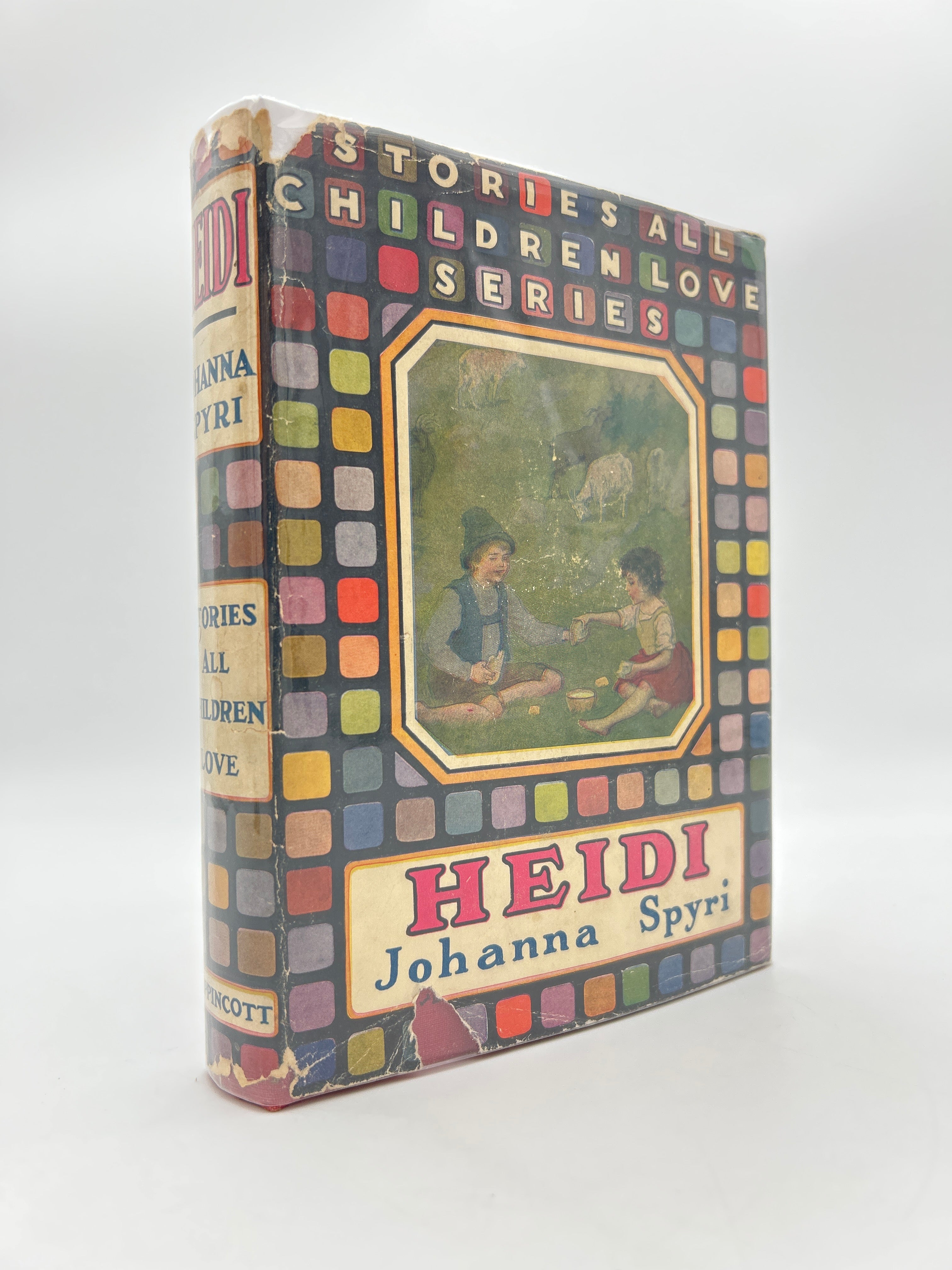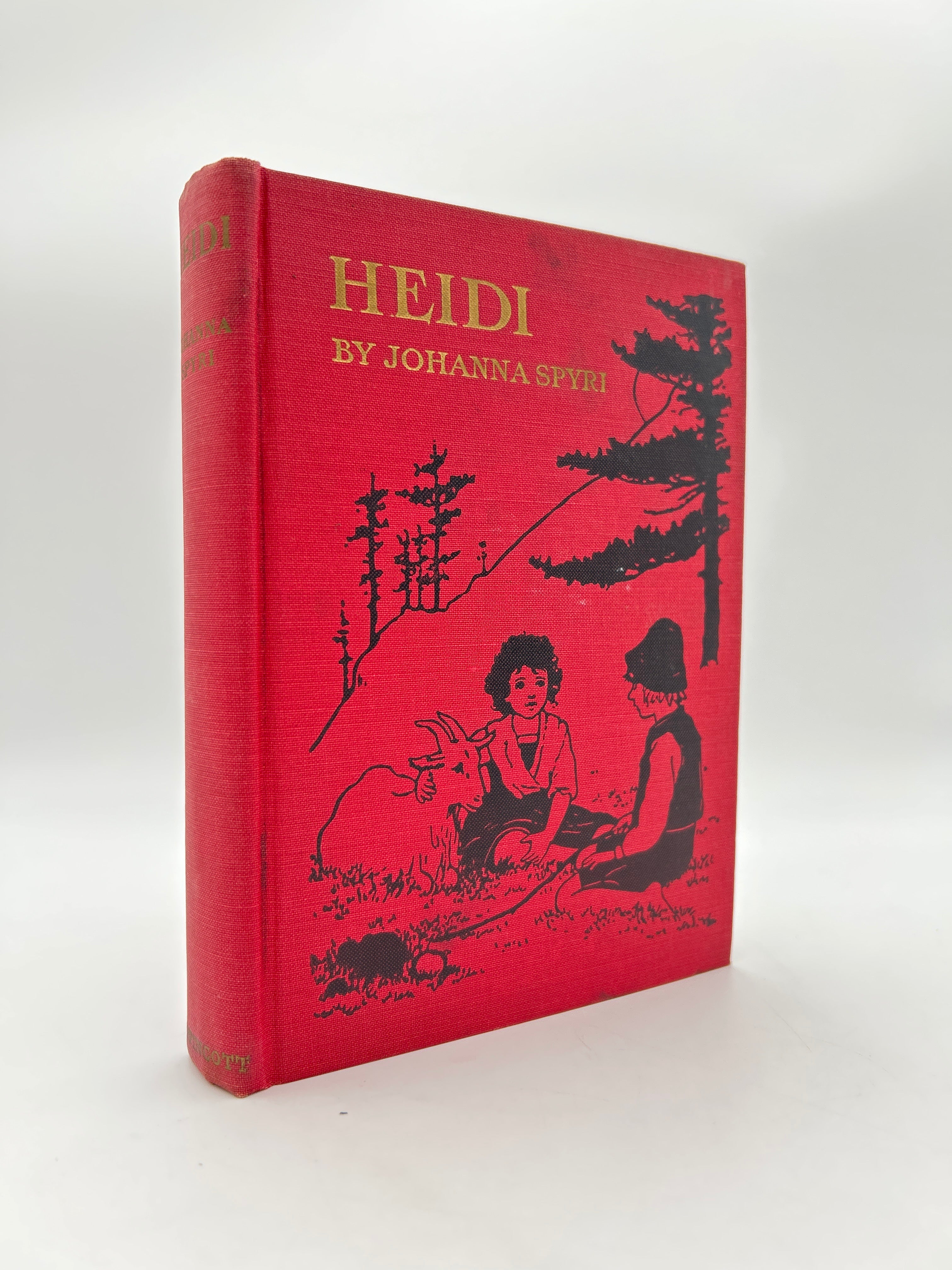 Red hardback with colorful dust jacket featuring Heidi in her Swiss village, book itself in fine condition.