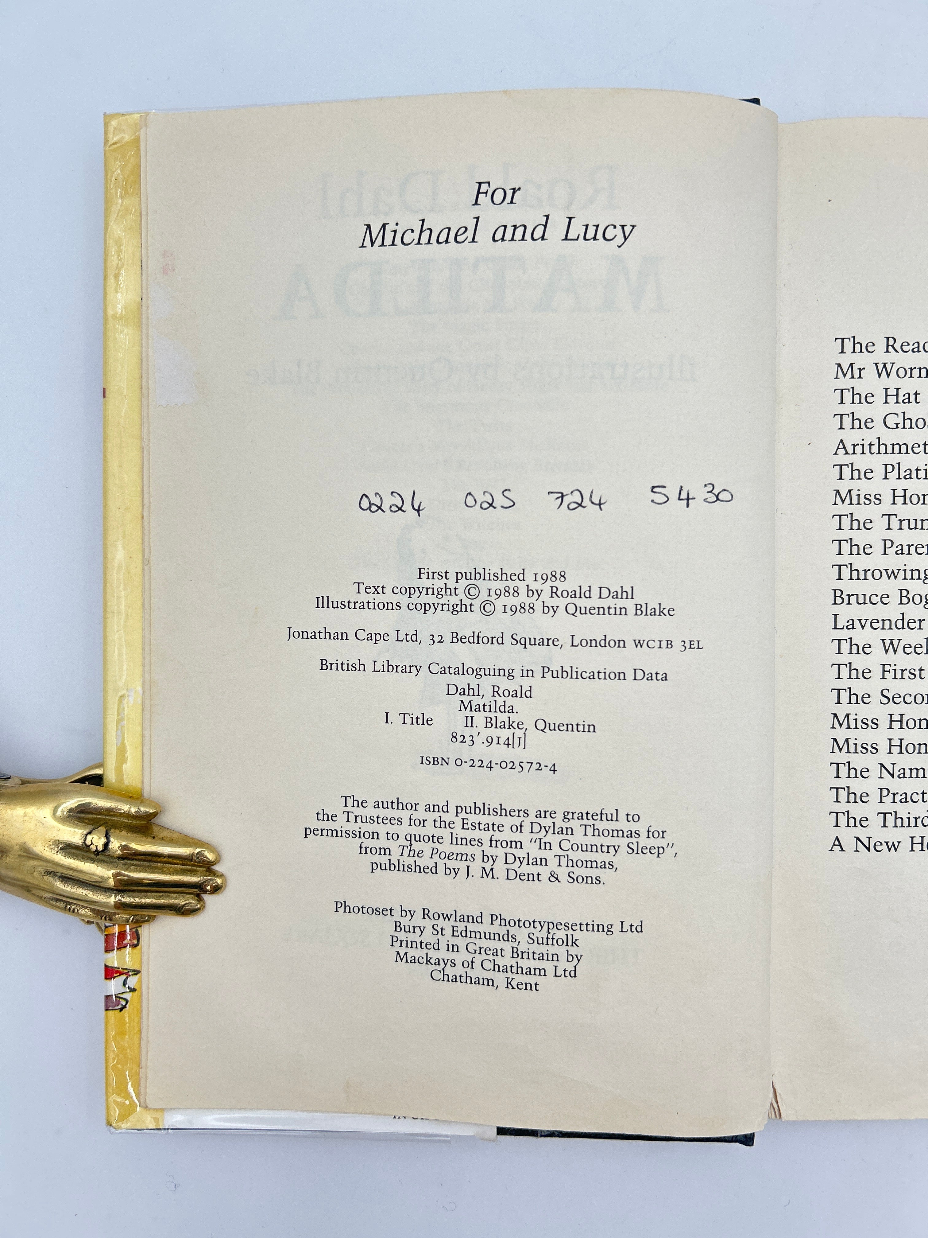 5C Roald Dahl. Illustrations by Quentin Blake. London: Jonathan Cape, 1988. First Edition.