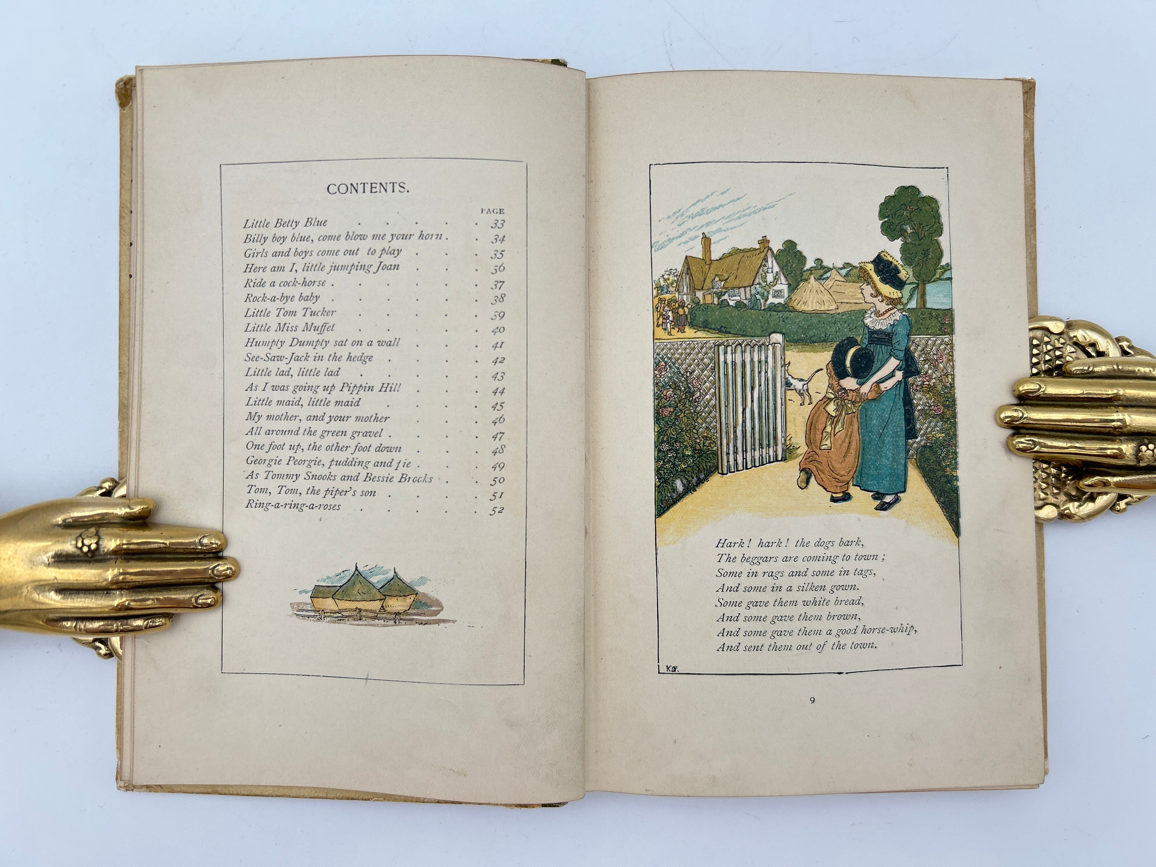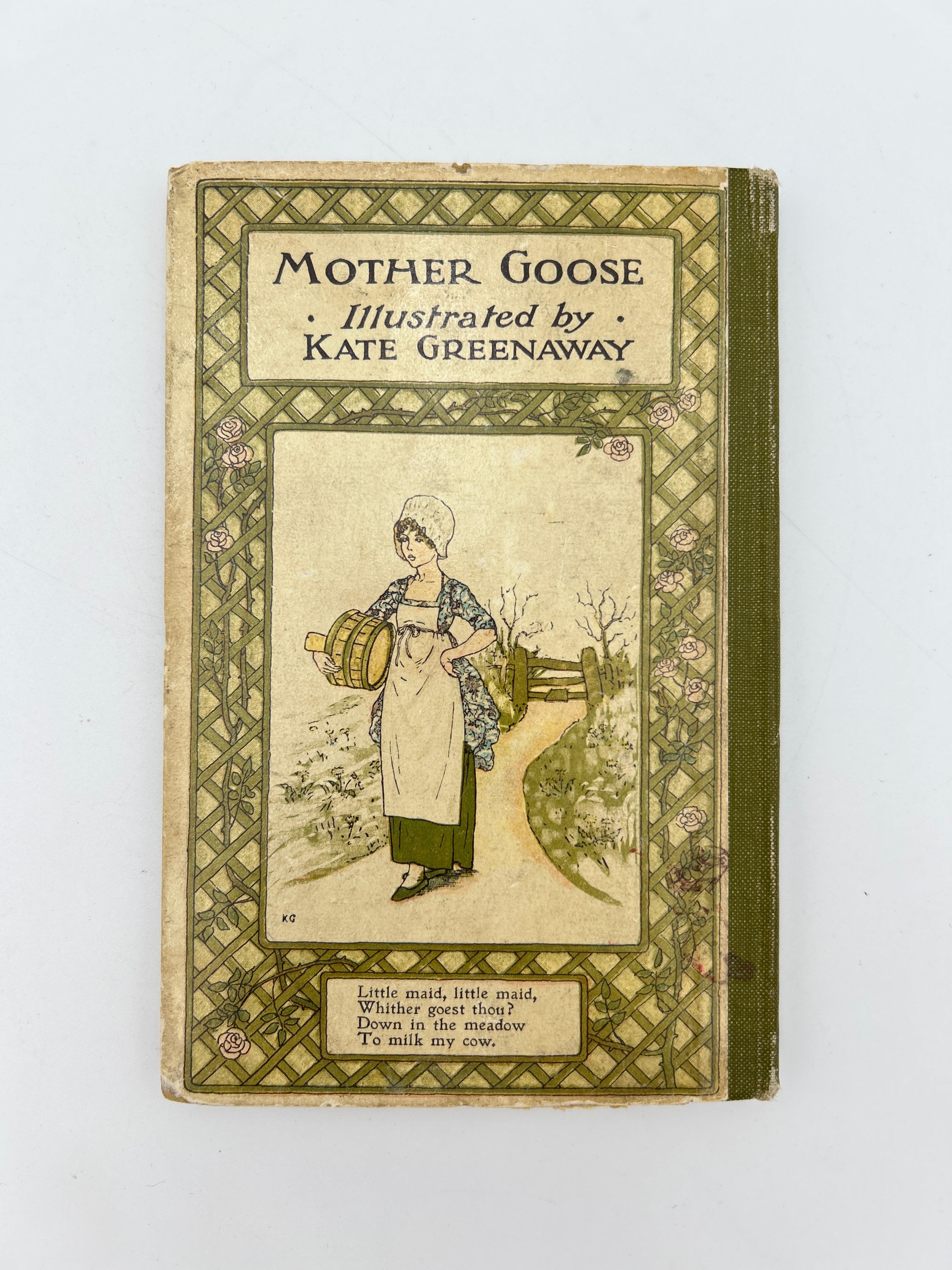 The version of Mother Goose illustrated by Kate Greenaway, first published in 1913, is particularly iconic. Greenaway, known for her distinctive style, brought a delicate and charming aesthetic to these nursery rhymes. Her illustrations are characterized by soft, pastel colors, graceful figures, and an overall sense of innocence and nostalgia. Greenaway's work for Mother Goose stands out due to her ability to capture the playful, innocent nature of the rhymes while adding an extra layer of elegance and refinement. Her illustrations often feature children in period clothing, set against idyllic, countryside backdrops. The combination of Greenaway's artwork and the timeless nursery rhymes has made this edition of Mother Goose a beloved classic, cherished by collectors and readers alike for its artistic beauty and the enduring appeal of the rhymes themselves.