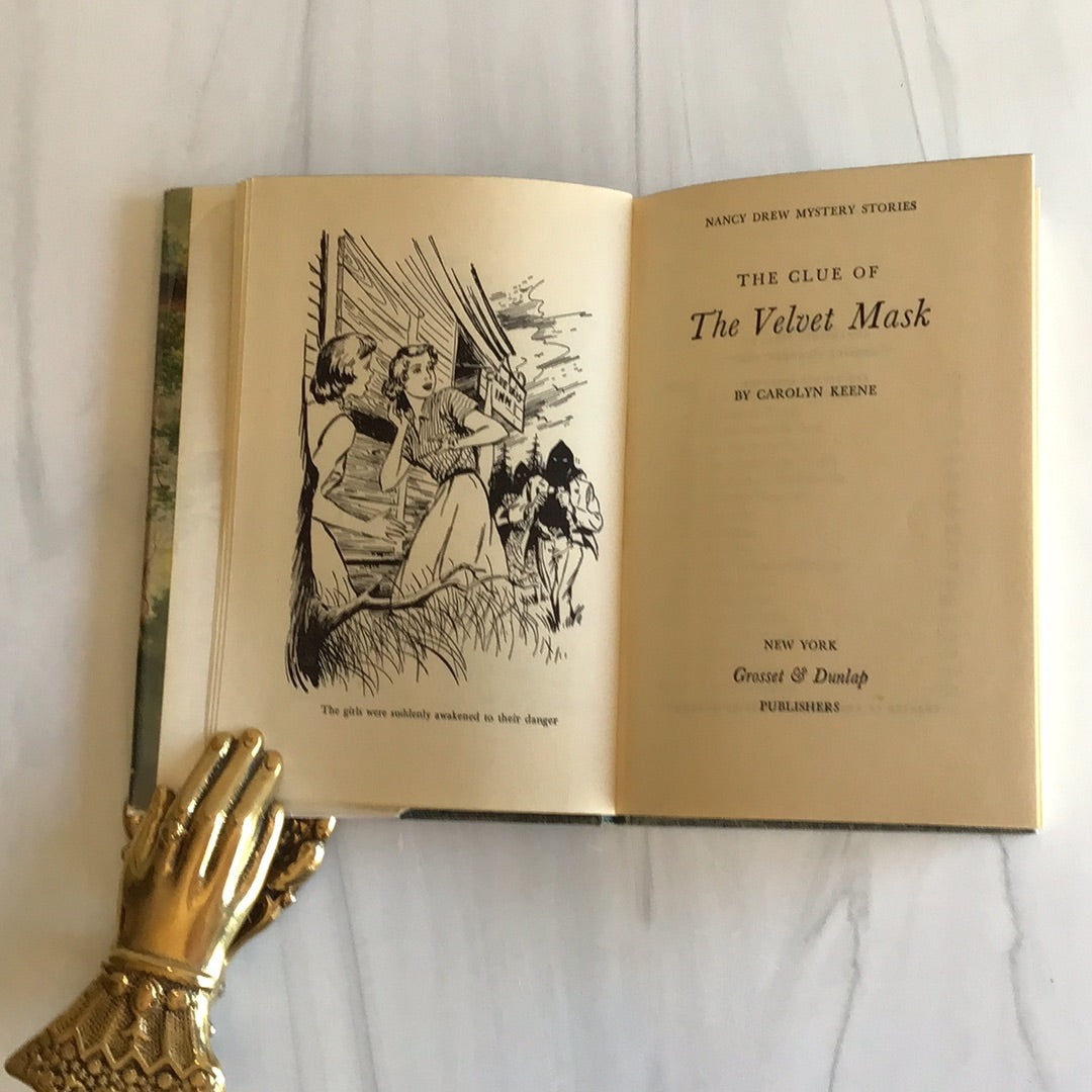 In "The Clue of the Velvet Mask," the Nancy Drew Mystery Series continues its thrilling journey as Nancy, the ever-curious and astute detective, finds herself entangled in another enigmatic case. When a luxurious velvet mask mysteriously appears in her possession, Nancy is propelled into a whirlwind of intrigue and danger. With her unwavering determination and sharp intellect, Nancy delves into a labyrinth of clues, deceit, and hidden motives, uncovering a web of secrets that threatens to unravel those around her. As she navigates through the twists and turns of the investigation, Nancy's keen intuition and resourcefulness shine, ultimately leading her to uncover the truth behind the velvet mask and solve yet another captivating mystery.
