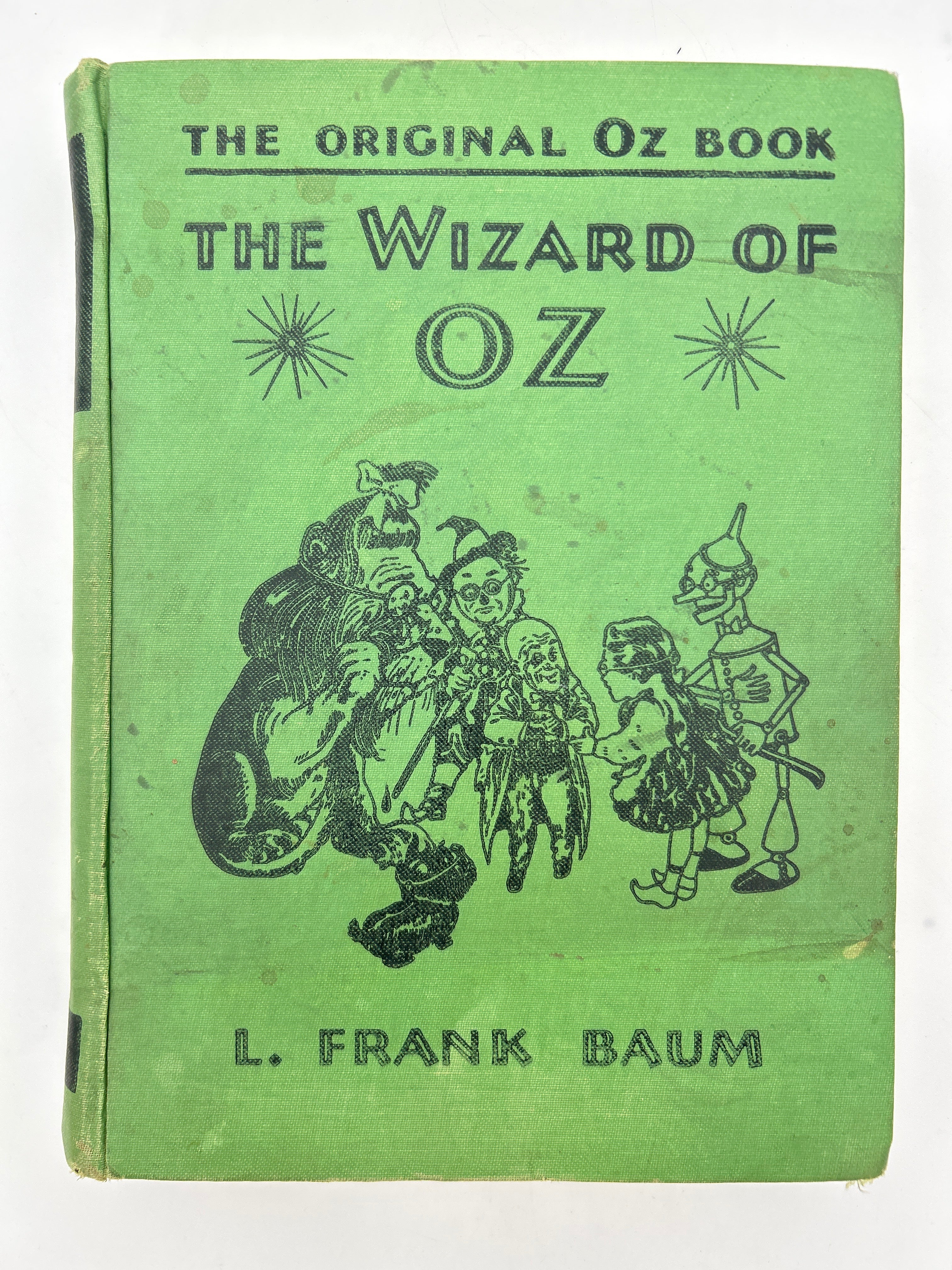 Olive green hardback with orange and black lettering and scarecrow image on front, back and spine, sligjt fraying on four corners, some rubbing on upper and lower binding, otherwise good condition.