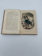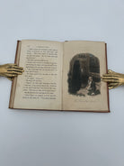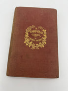 Canvas binding in iconic cinnamon color. Embossed detailing on the front and back boards. Gilt detailing and lettering on the spine and front board. Gilt edges and four hand colored illustrations throughout. Weak binding with boards coming away from the interior pages. Sun fading to the spine and minor spots of discoloration on the boards. Good condition overall.