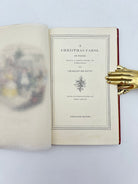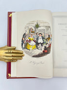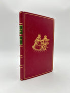 Premium red leather binding, green leather label with gold lettering, tooling embellishments on spine, gold embossed illustration on front,colored illustrations throughout, same as the first edition.