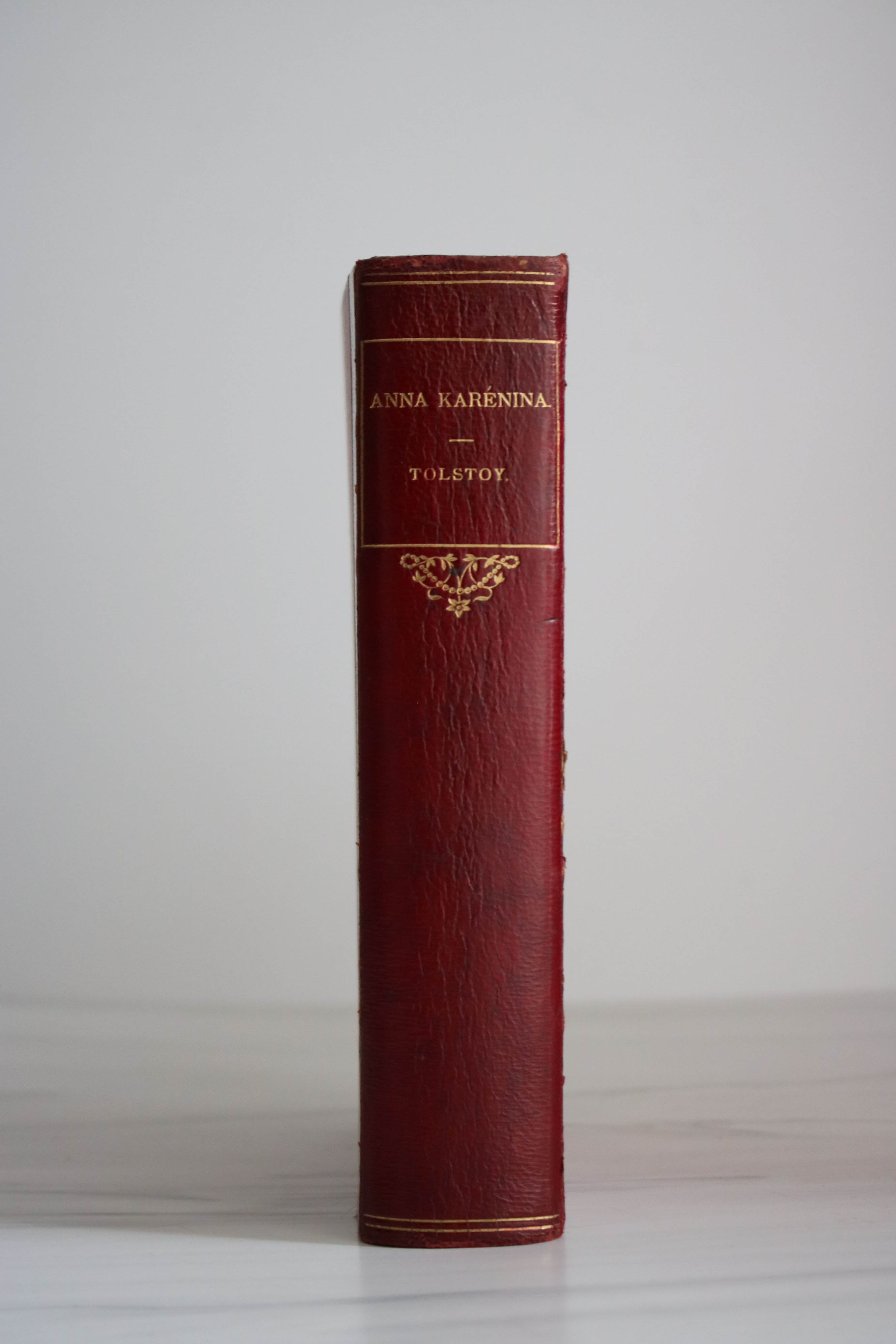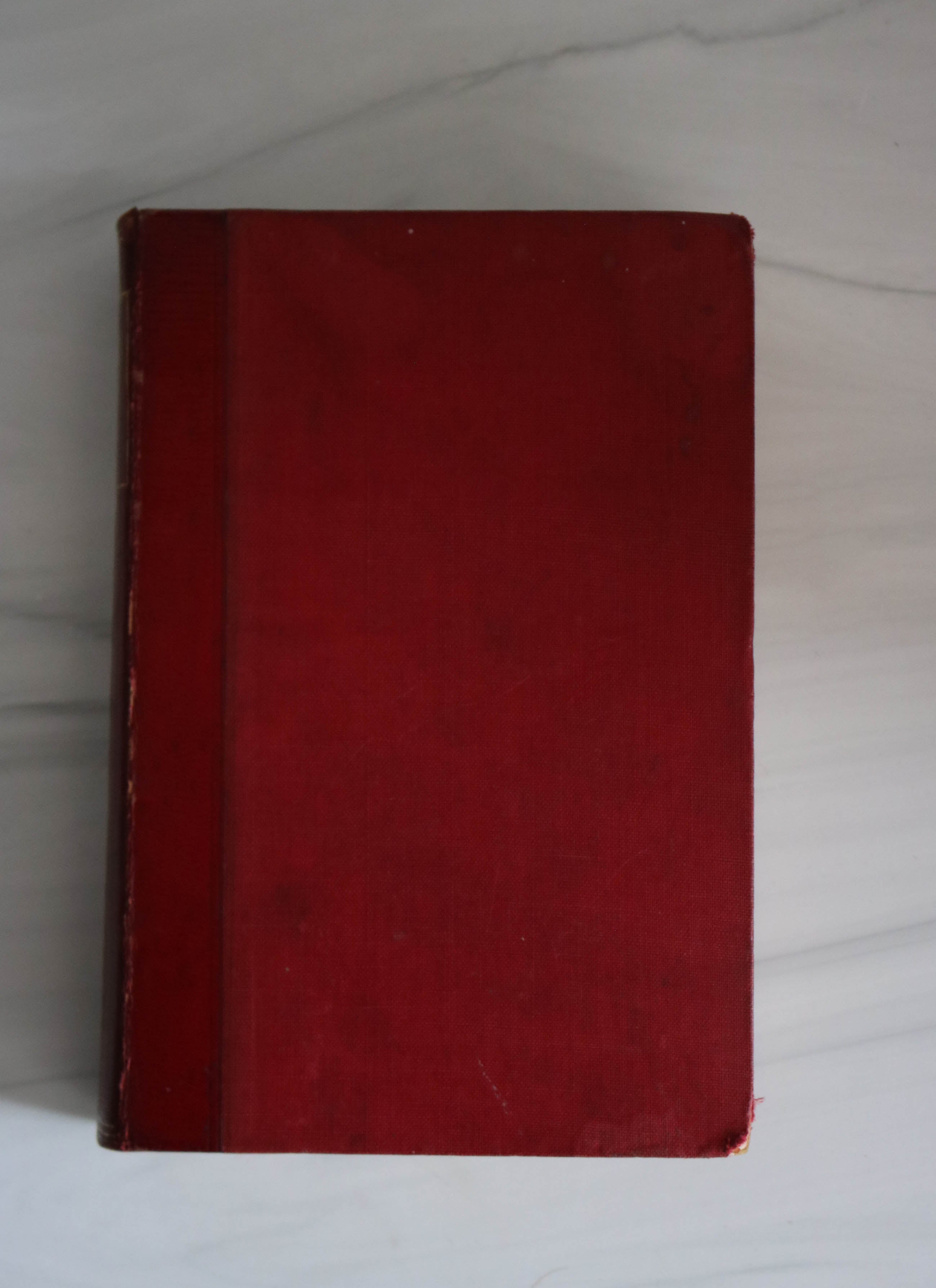 Red leather binding with red cloth front and back cover, Gold lettering on spine, rubbed corners on front and back cover, illustrations