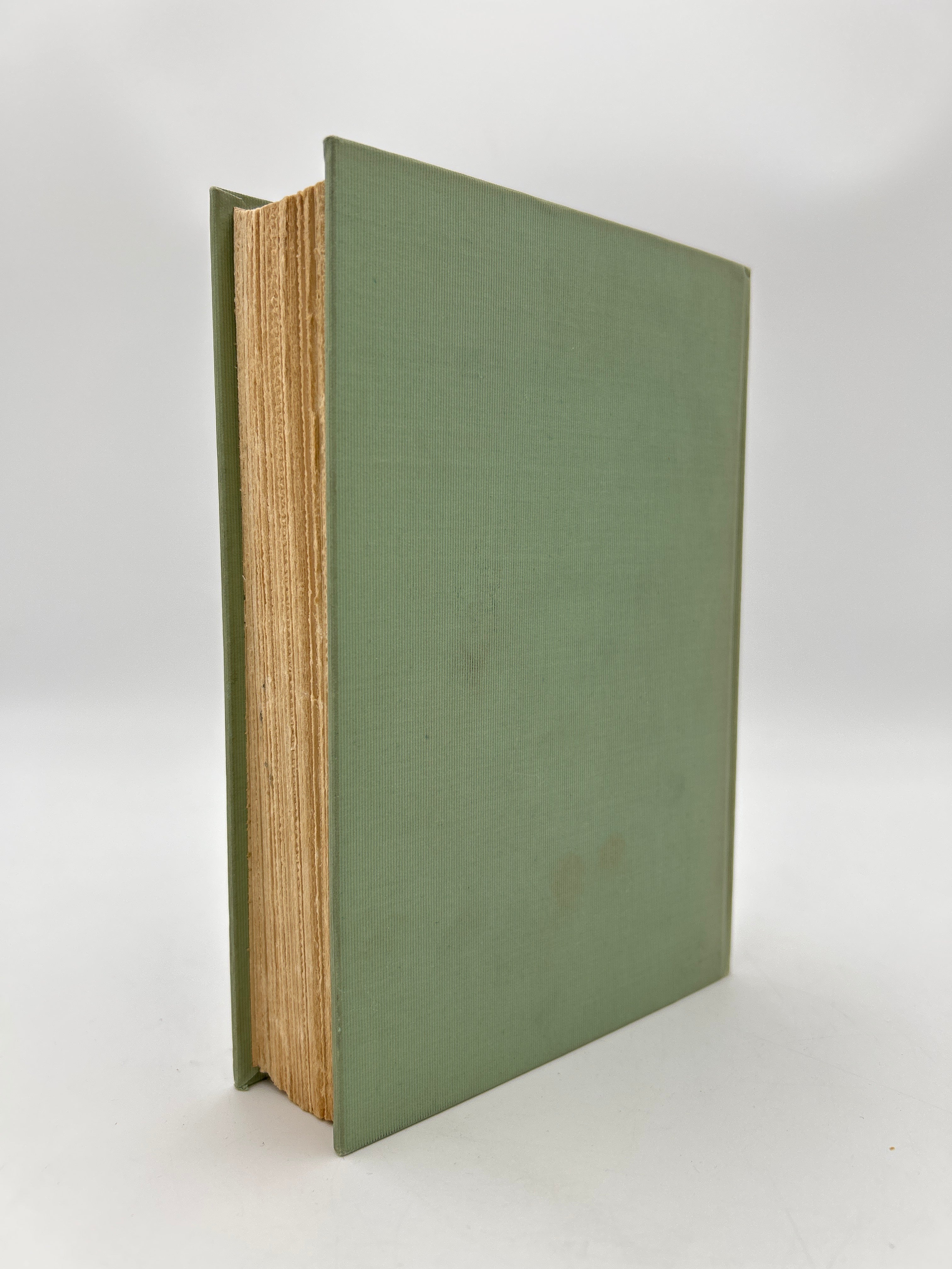 Sage green vellum hardcover with gold embossed lettering on the spine and front cover. Illustrated portrait with brown frame on the cover. Deckle fore edges. Excellent condition.