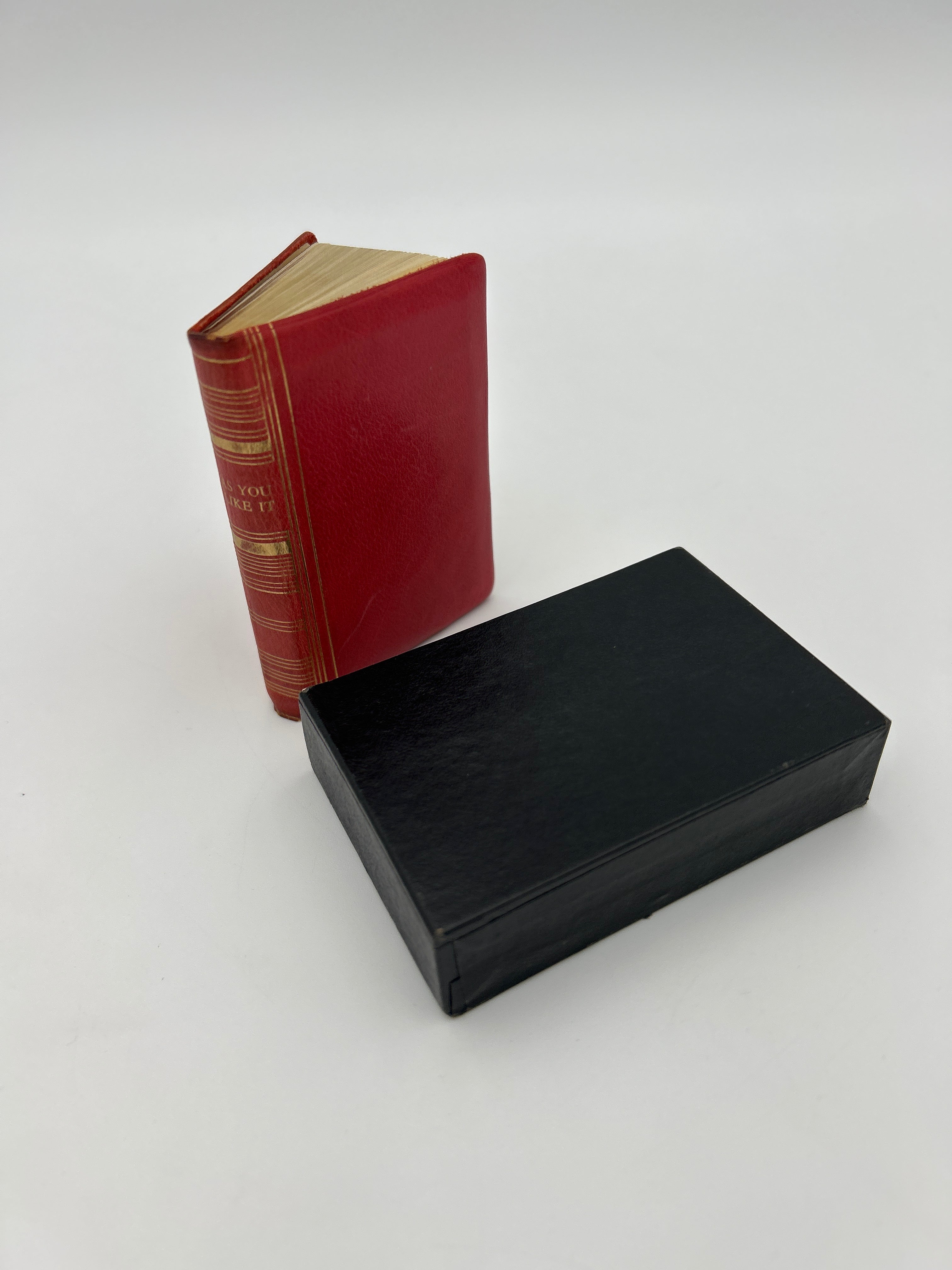 Red leather miniature book gold bands and lettering on the spine. Pocket size with gift box. Hand bound in English leather by Geoffrey Parker. Pristine condition.